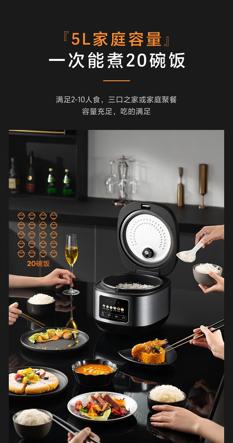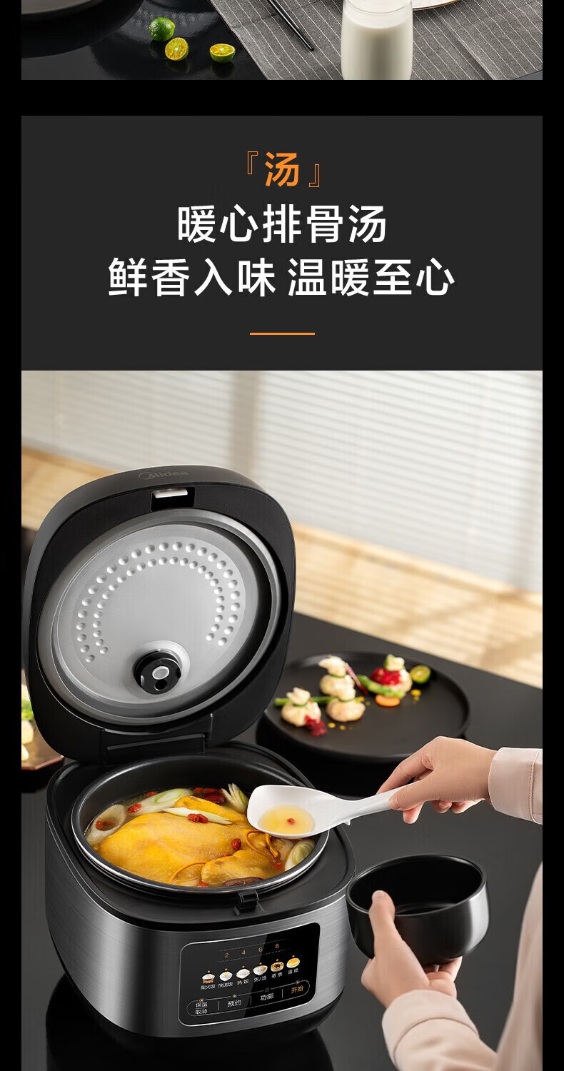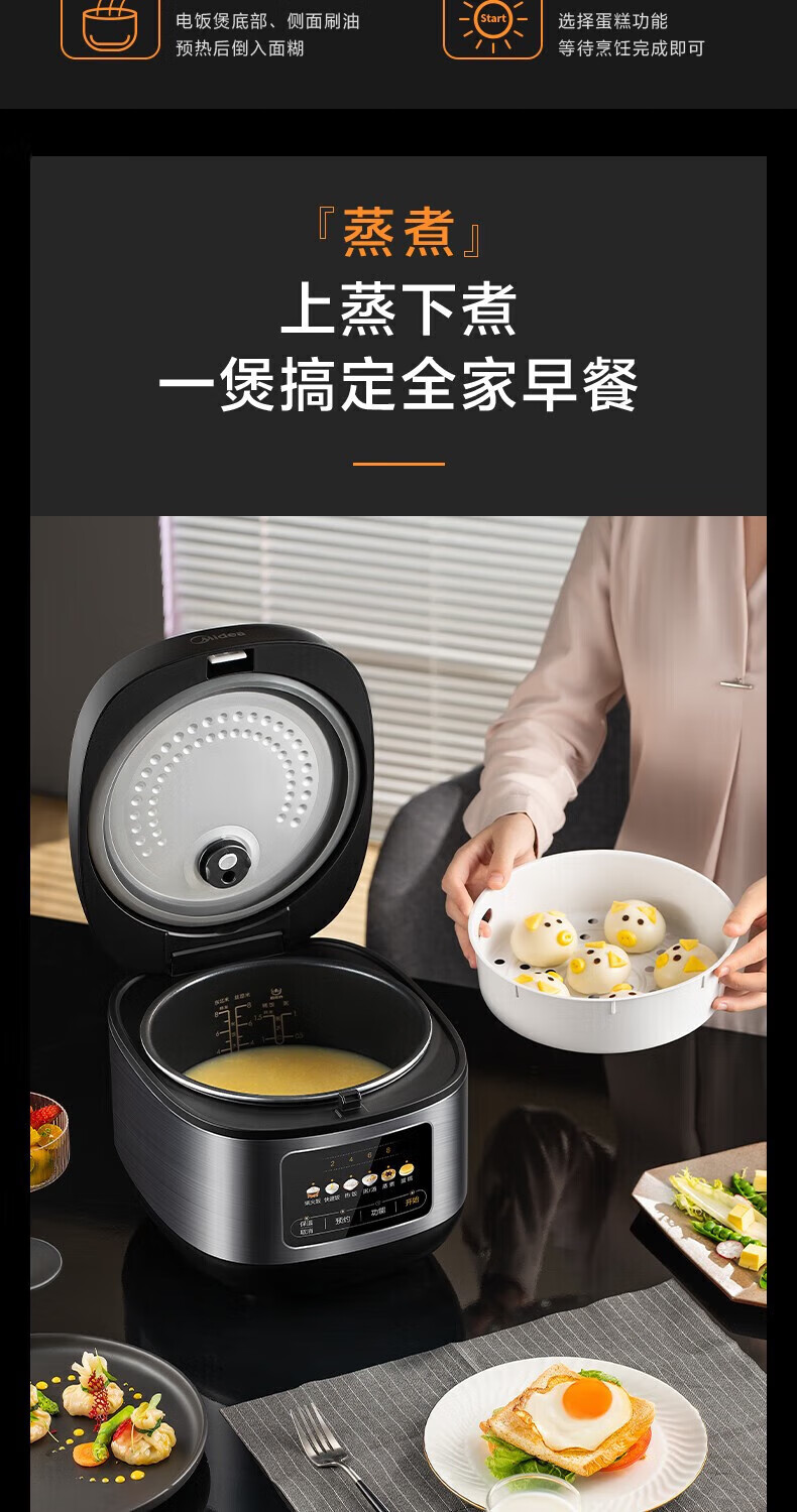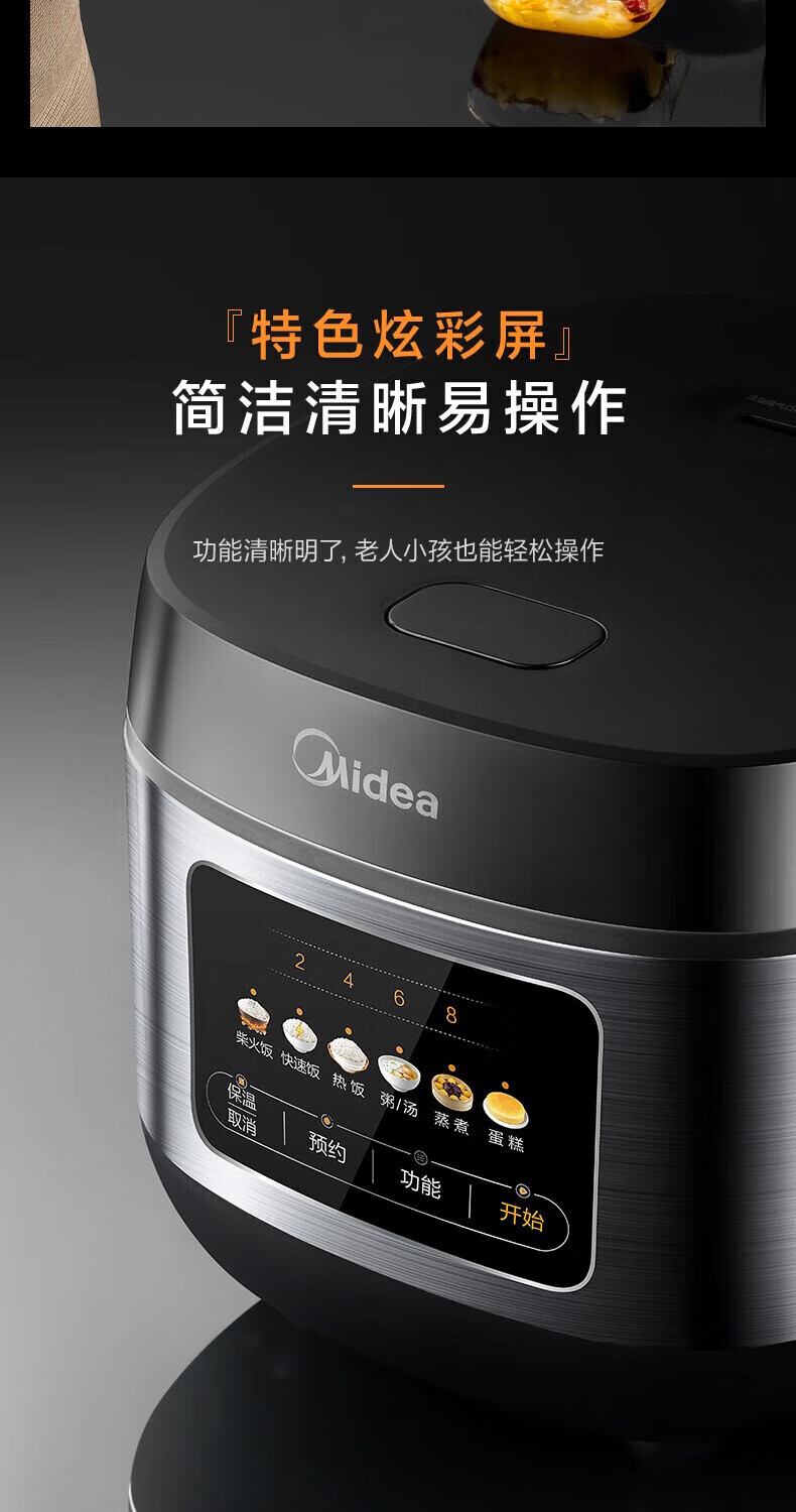 美的(Midea)电饭煲家用电饭锅5L大容量4-5-8-10人多功能智能预约柴火饭煲汤煮粥蛋糕不粘内胆微压煮饭锅 【微压焖香阀】 5L MB-RE529