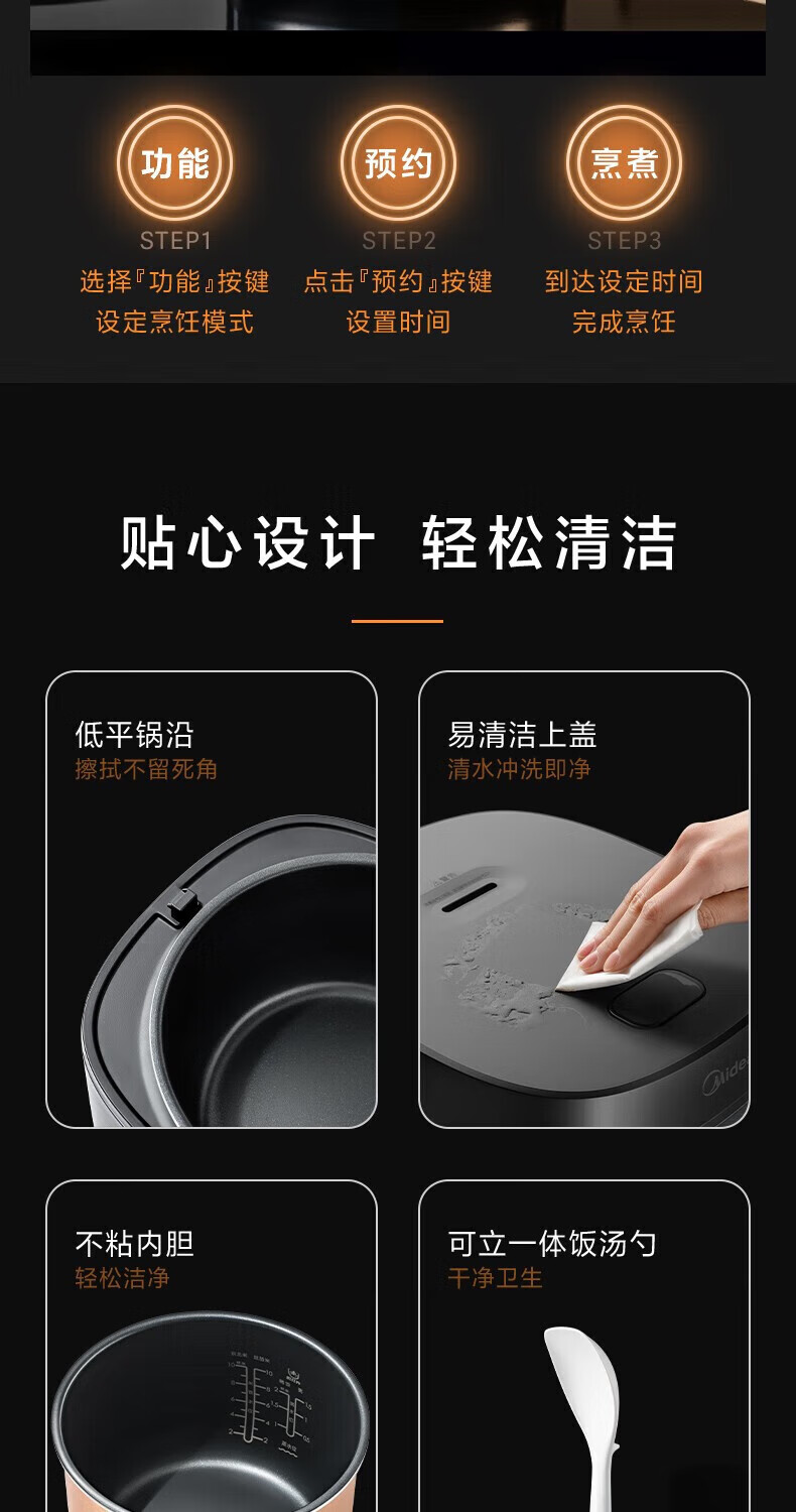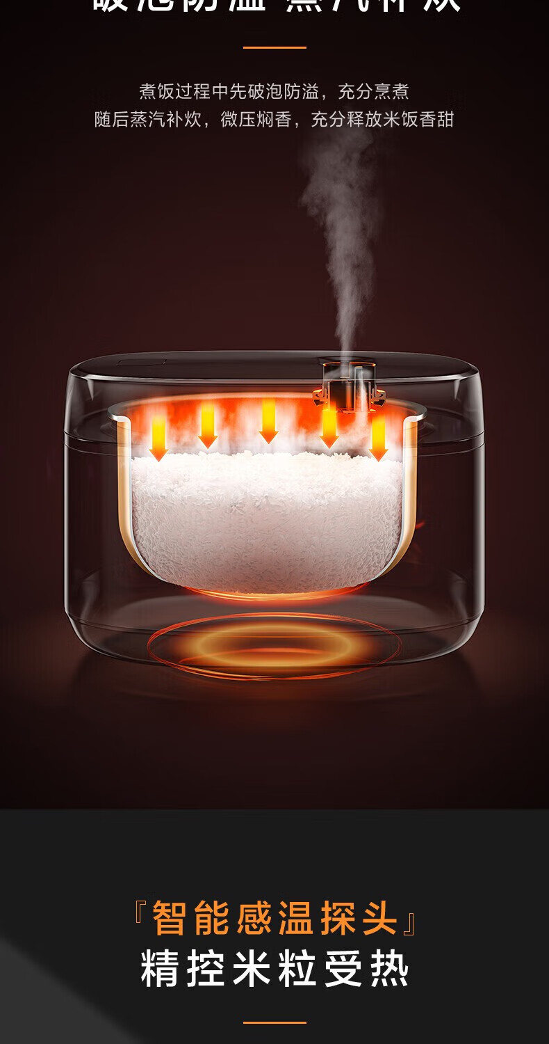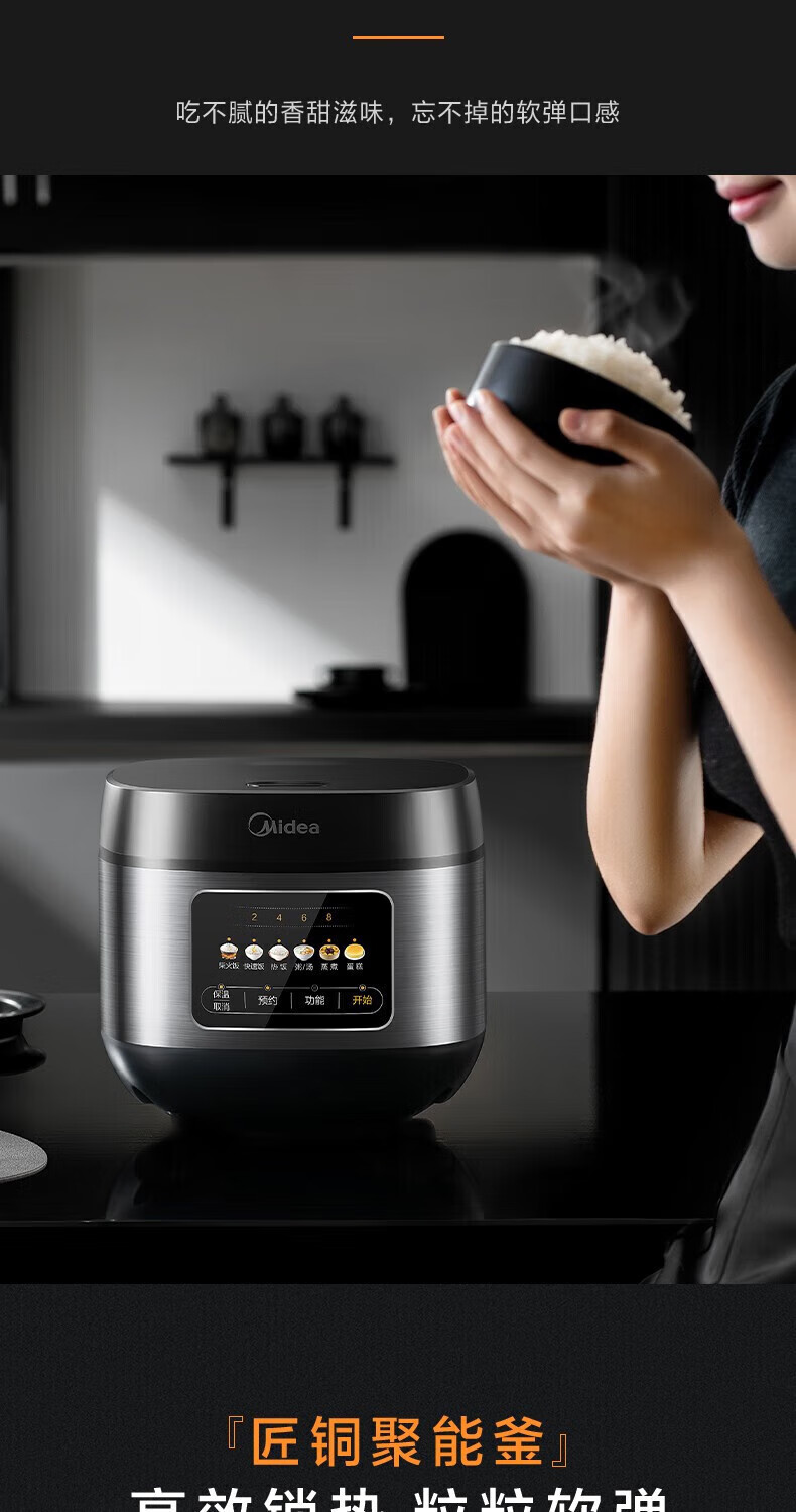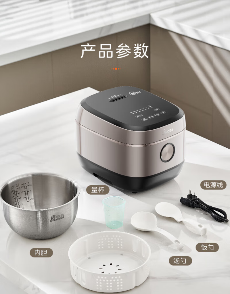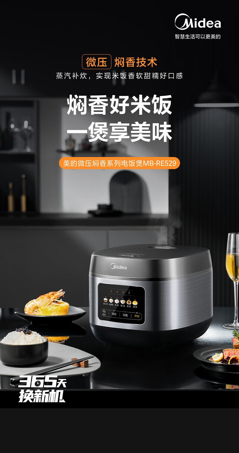 美的(Midea)电饭煲家用电饭锅5L大容量4-5-8-10人多功能智能预约柴火饭煲汤煮粥蛋糕不粘内胆微压煮饭锅 【微压焖香阀】 5L MB-RE529