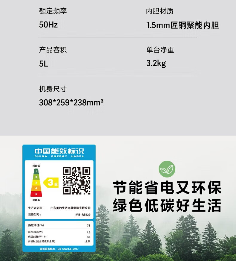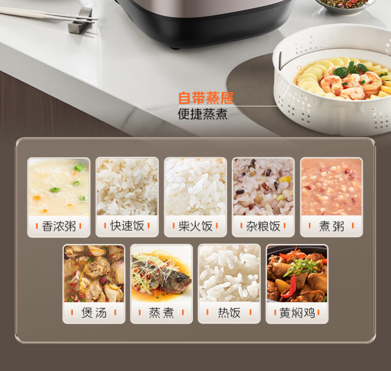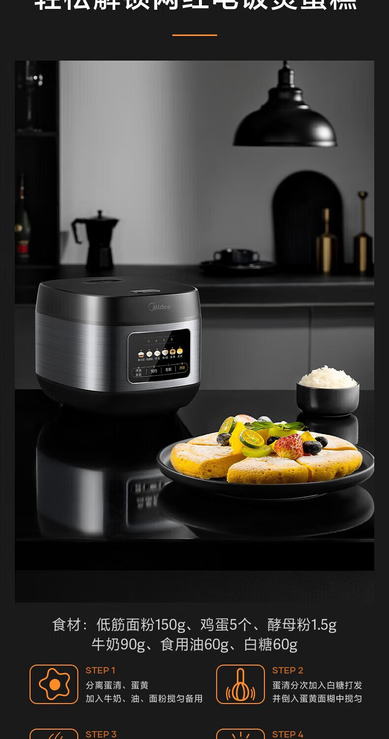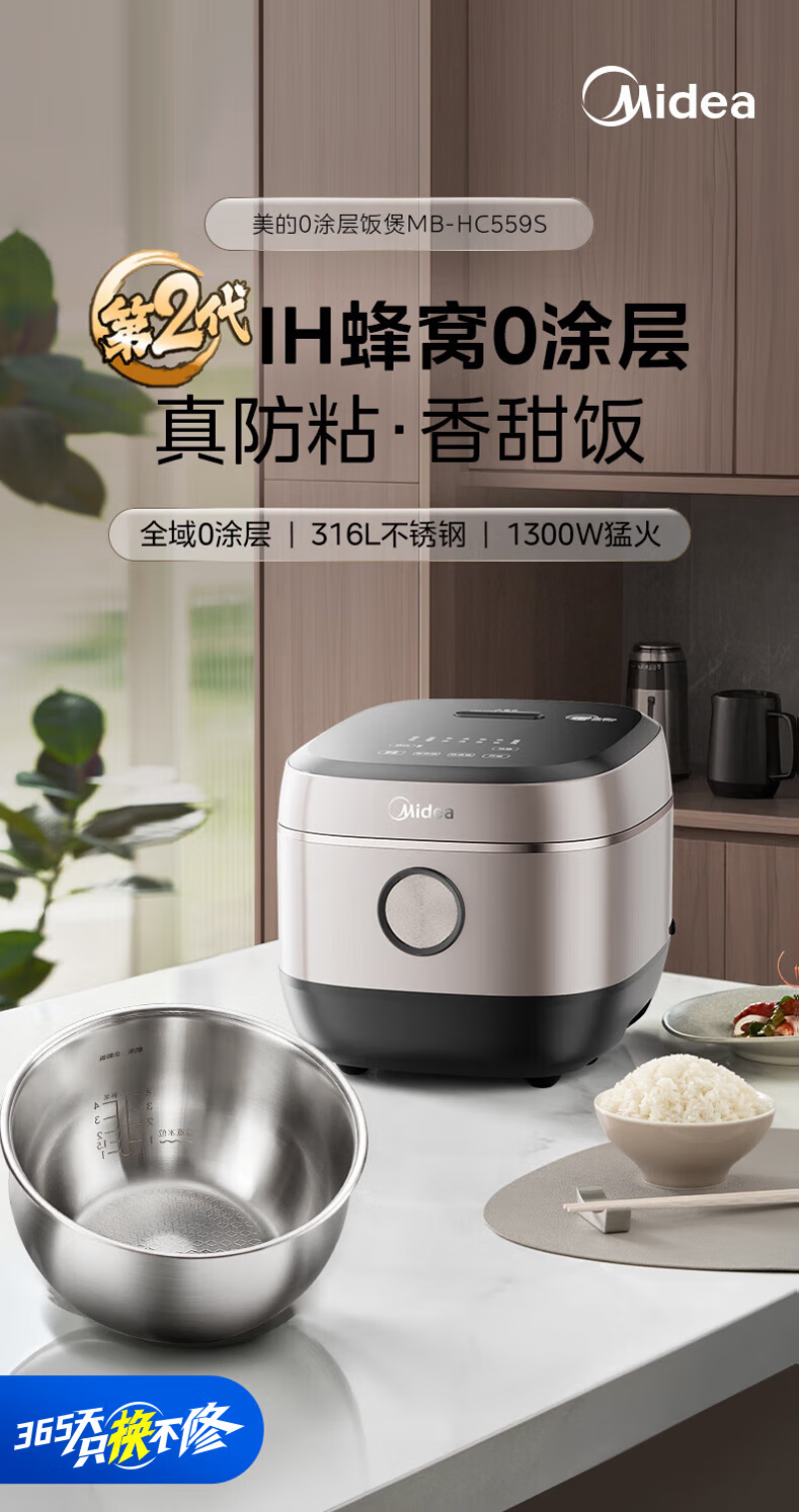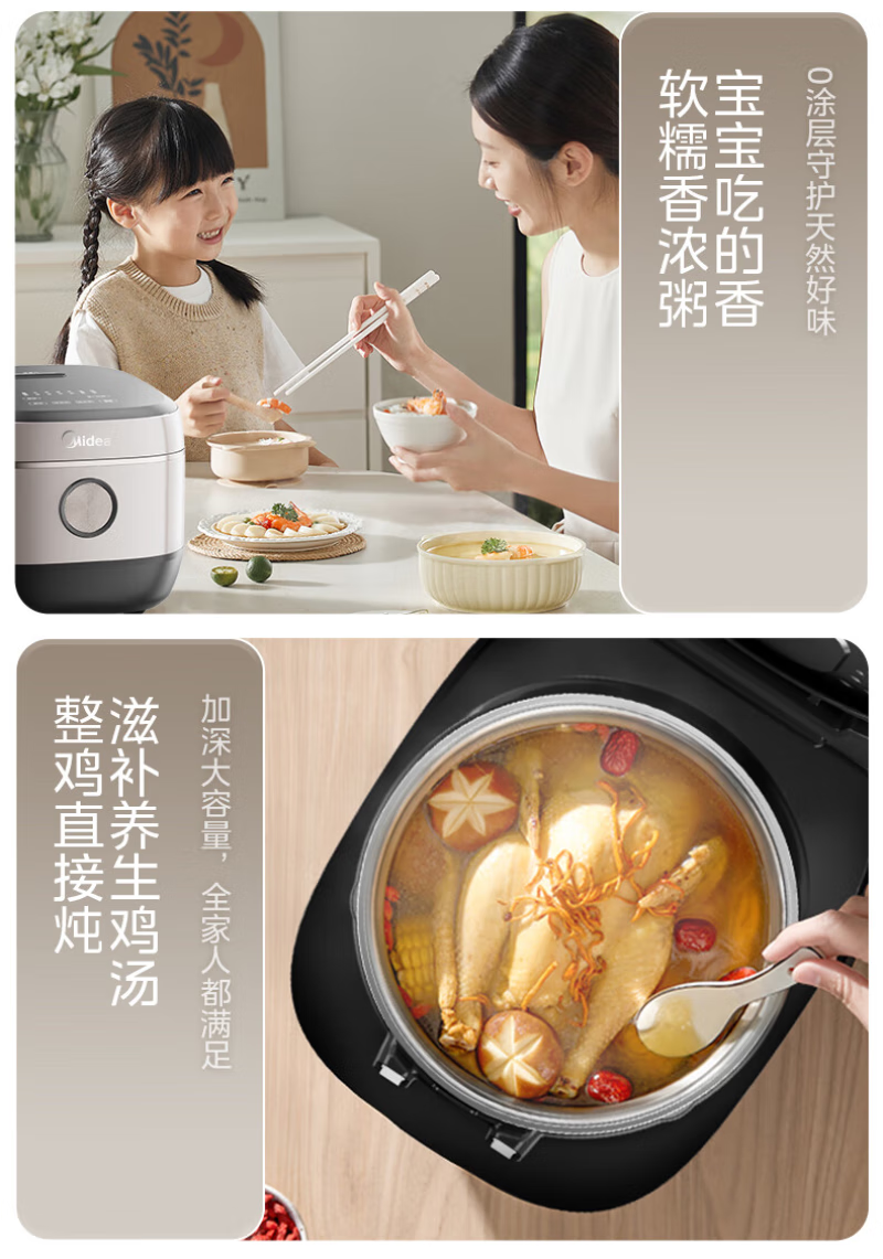 美的(Midea)电饭煲家用电饭锅5L大容量4-5-8-10人多功能智能预约柴火饭煲汤煮粥蛋糕不粘内胆微压煮饭锅 【微压焖香阀】 5L MB-RE529