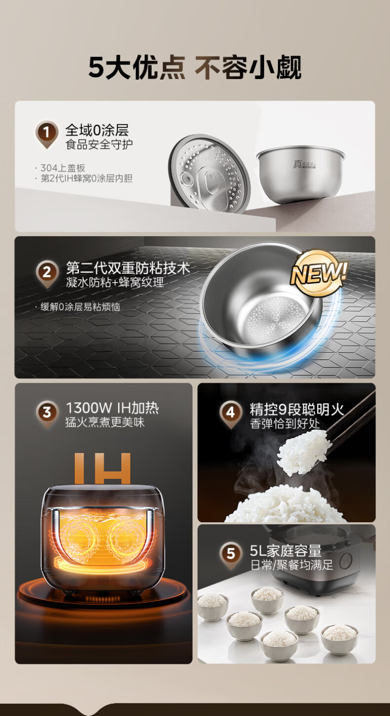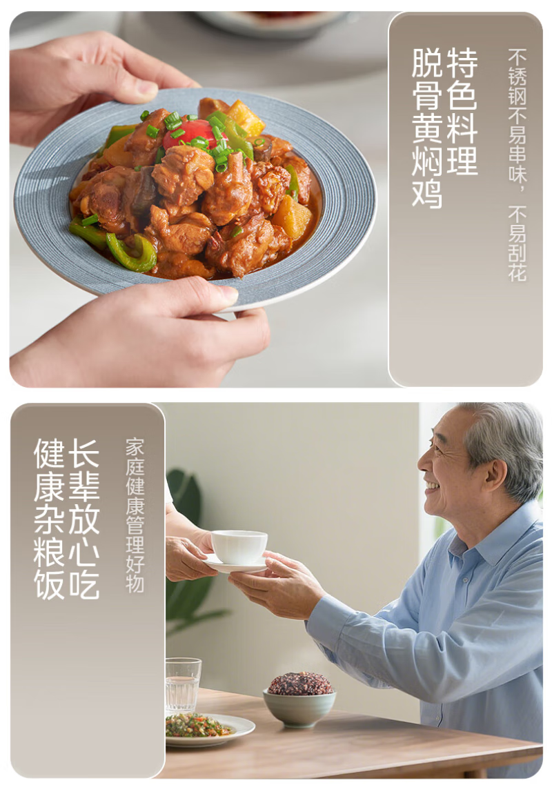 千寿日本无涂层多功能低糖电饭煲米汤分离沥米饭捞米蒸饭锅电饭锅家用1-4个人QS-A03E 闪灰色 3L -316L医用球釜母胆+304沥糖胆