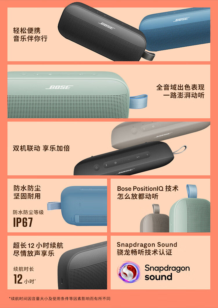 Bose【政府补贴】SoundLink Flex 蓝牙扬声器 II-暮色蓝 户外随身便捷式无线音箱/扬声器 国庆出游礼物
