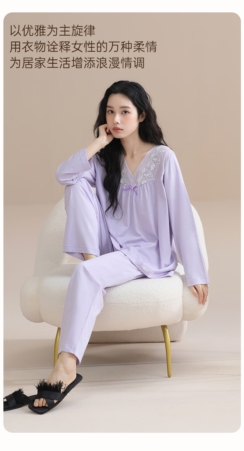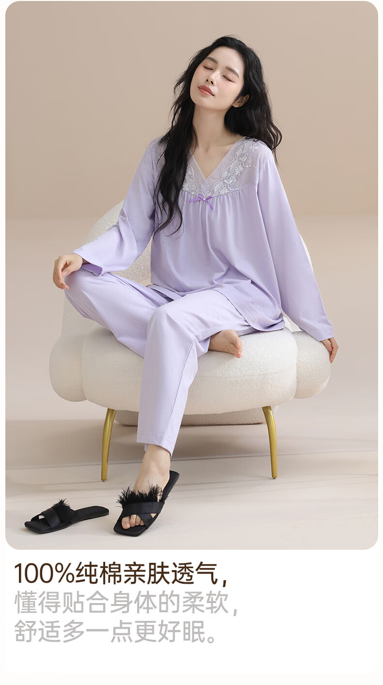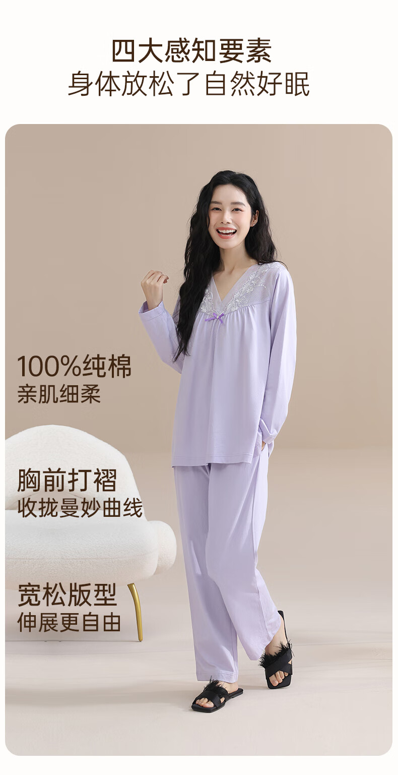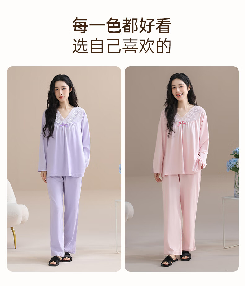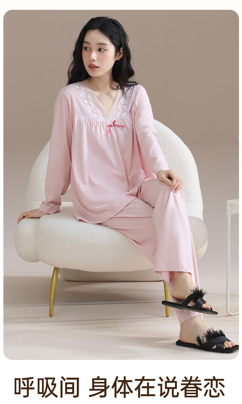 玛伦萨纯棉睡衣女春秋季2025新款可外穿柔软舒适长袖长裤女士家居服 藕粉 M