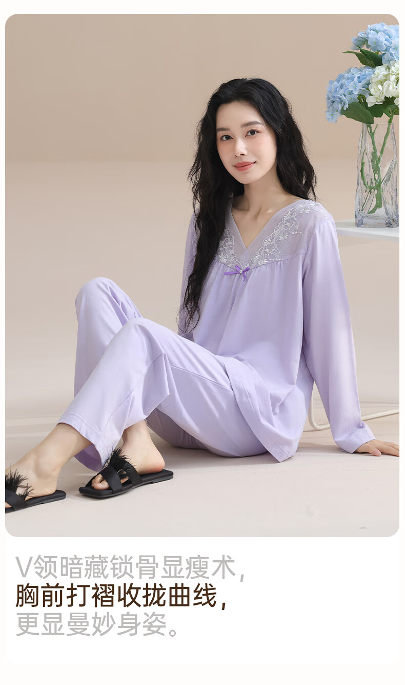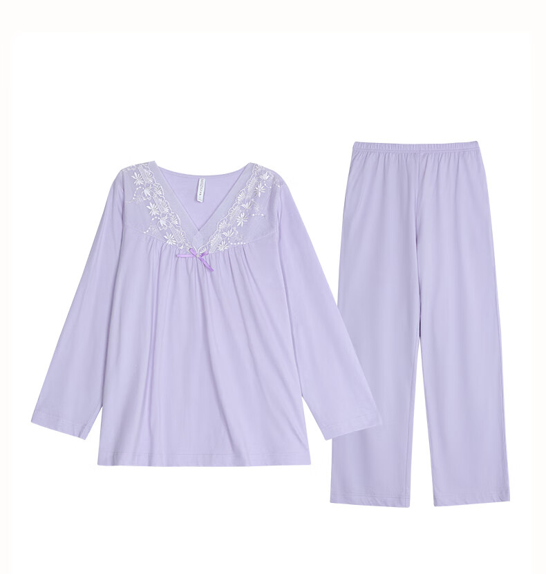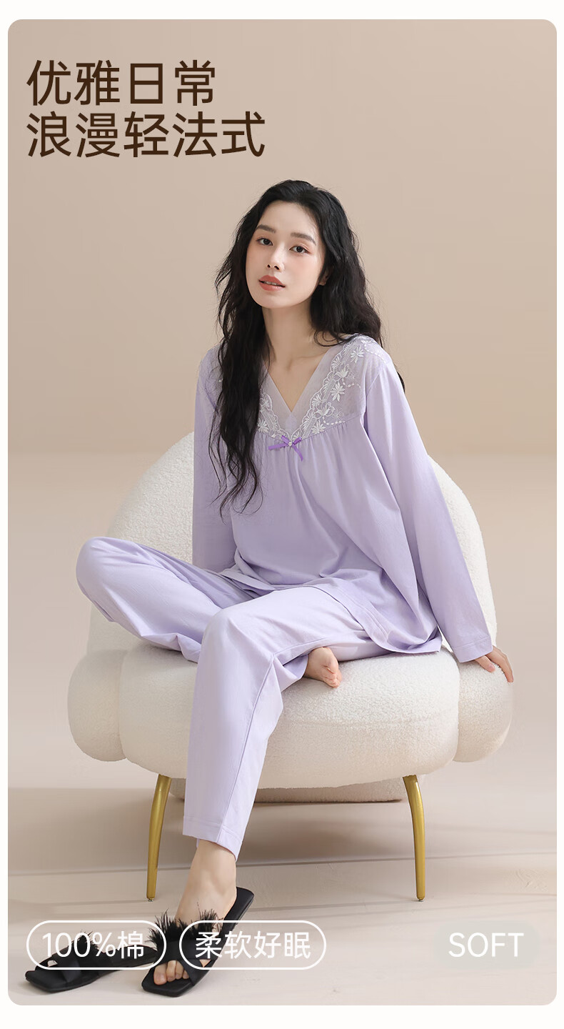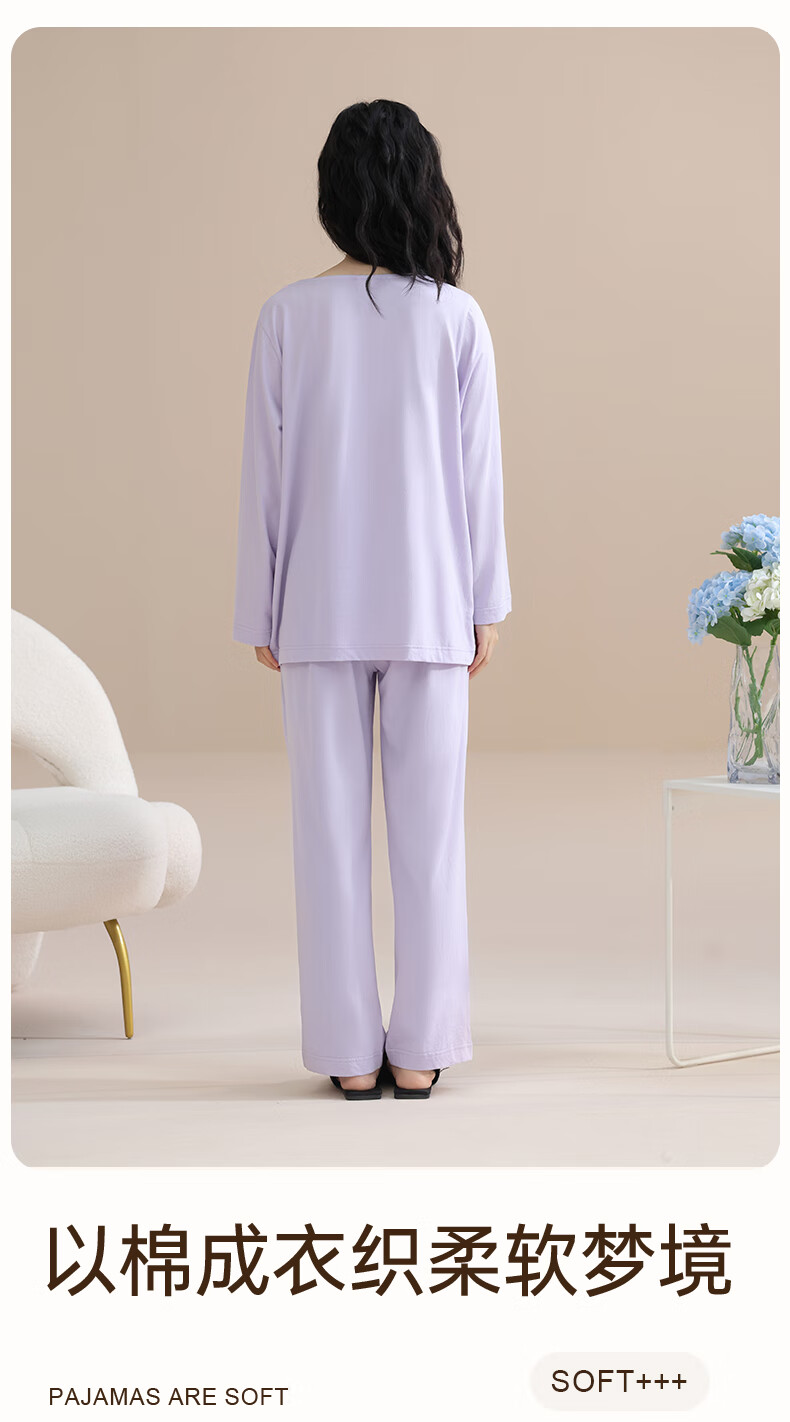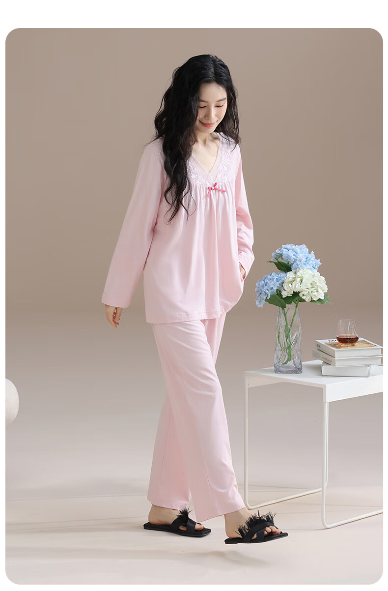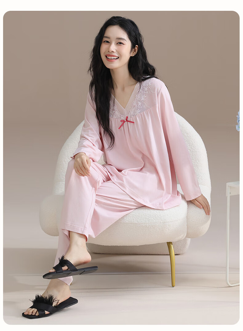 玛伦萨纯棉睡衣女春秋季2025新款可外穿柔软舒适长袖长裤女士家居服 藕粉 M