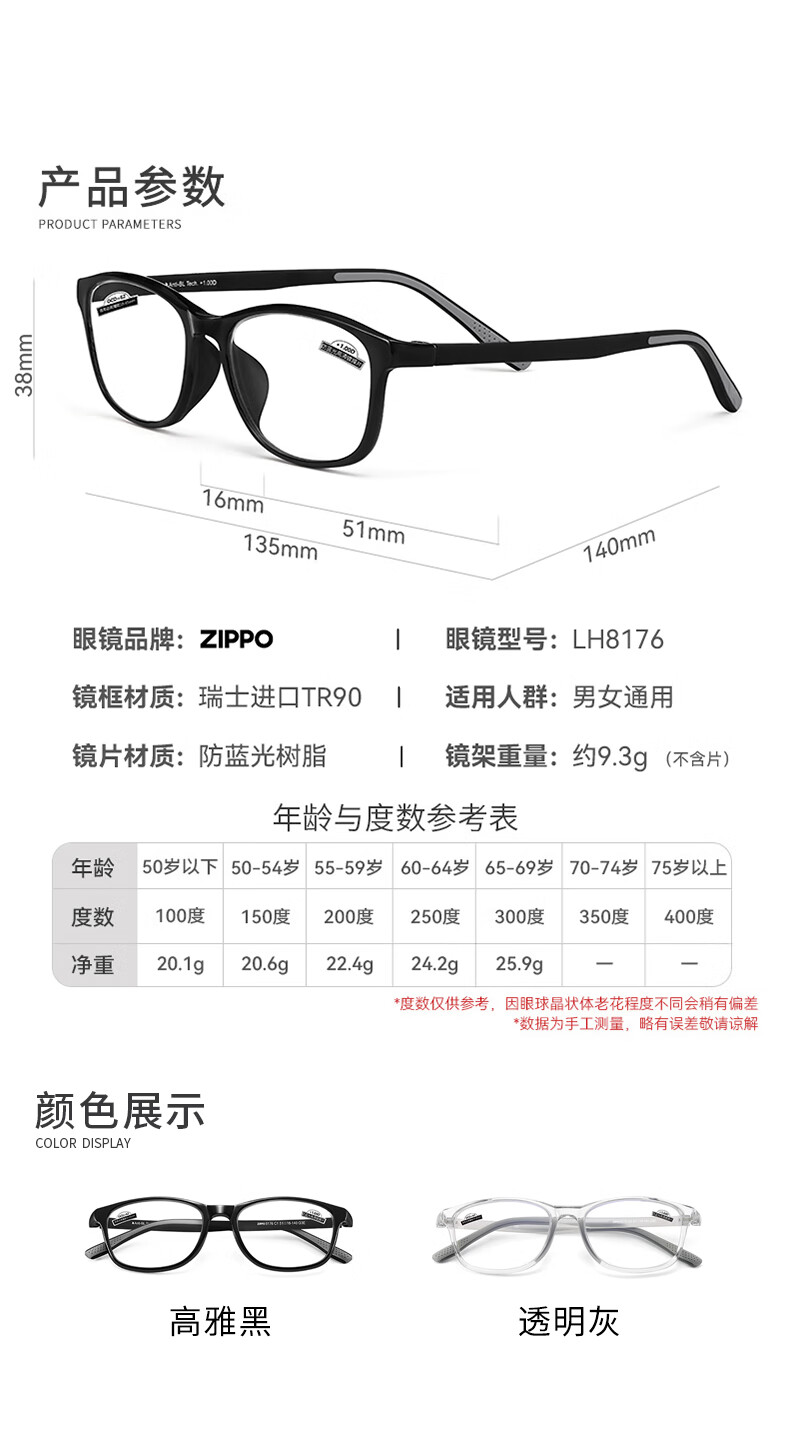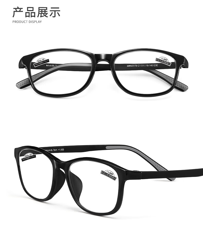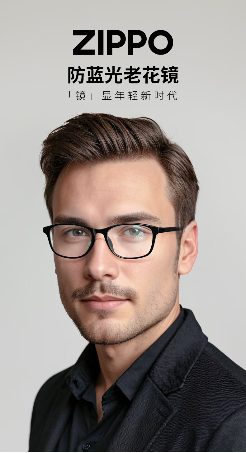 ZIPPO美国防蓝光老花镜进口镜片柔韧不易折男女款耐用舒适8176C1 200度