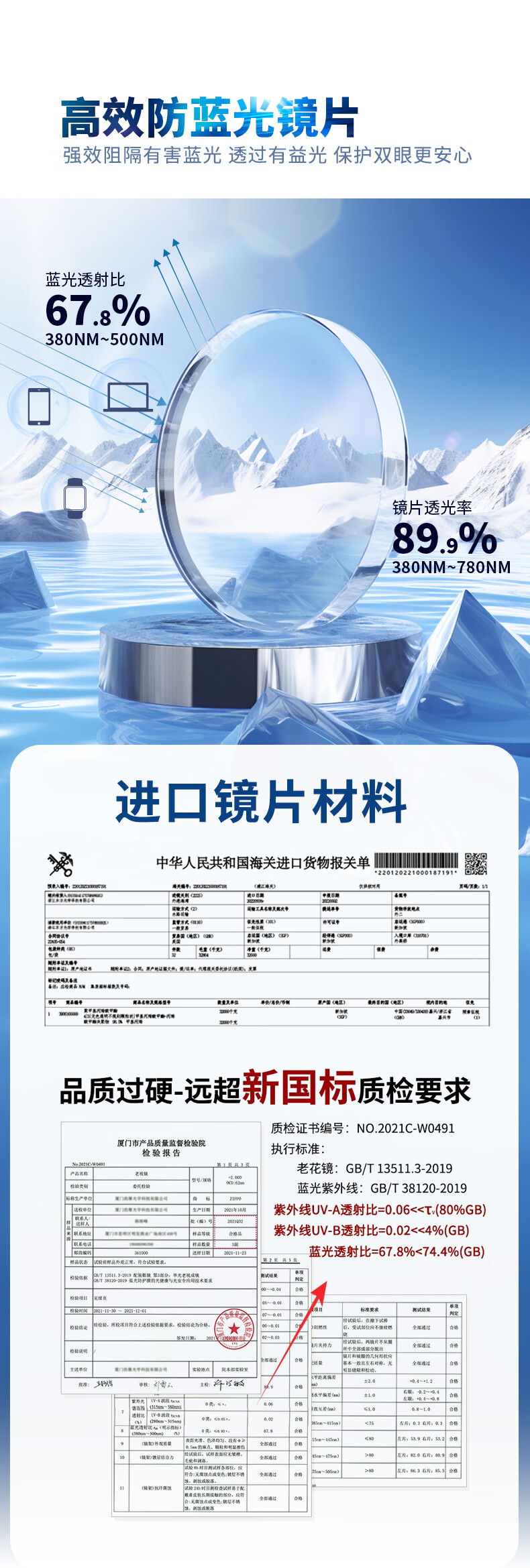 蔡司(ZEISS)1.74泽锐防蓝光PLUS钻立方铂金膜超薄镜片配镜【1片装】