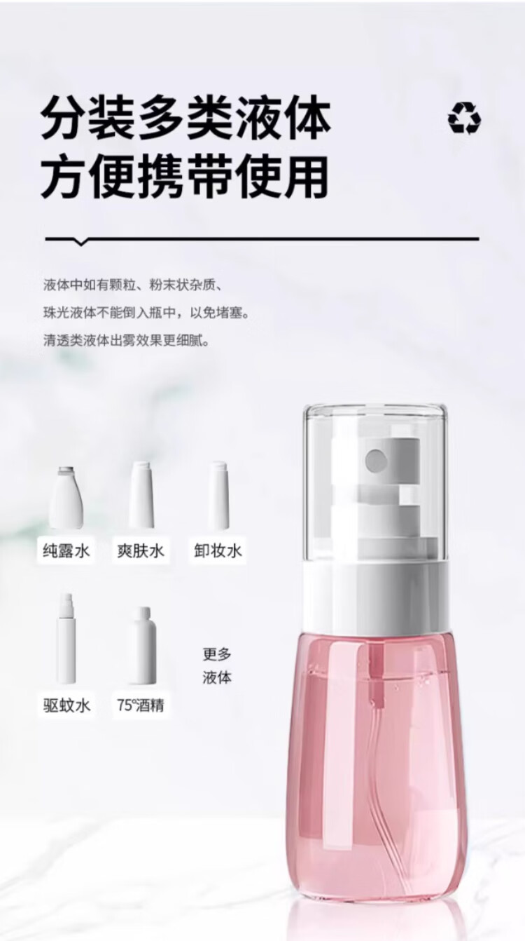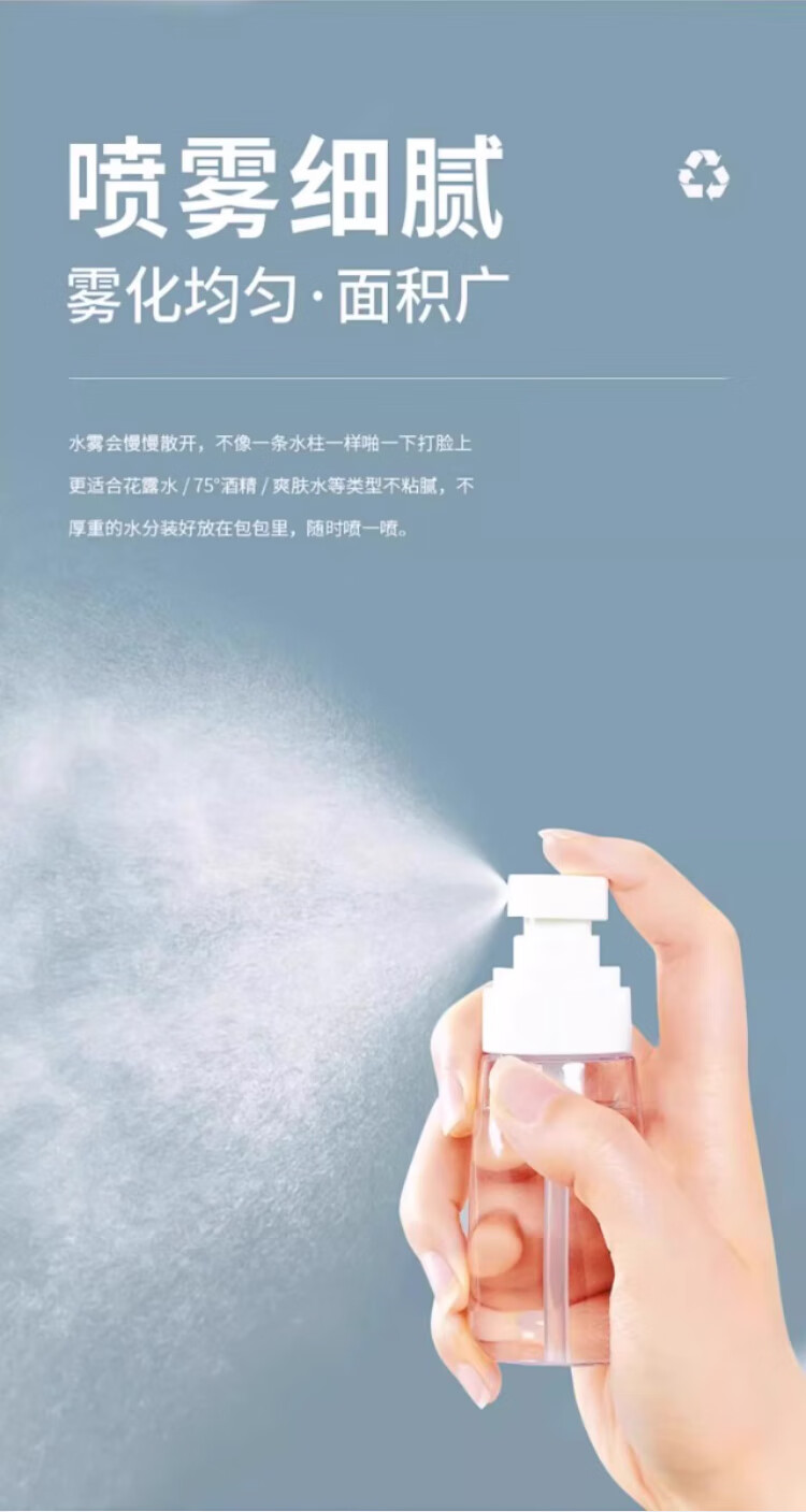 首力旅行分装瓶便携纳米喷雾瓶超细雾爽肤水护肤补水高档空瓶子 2个