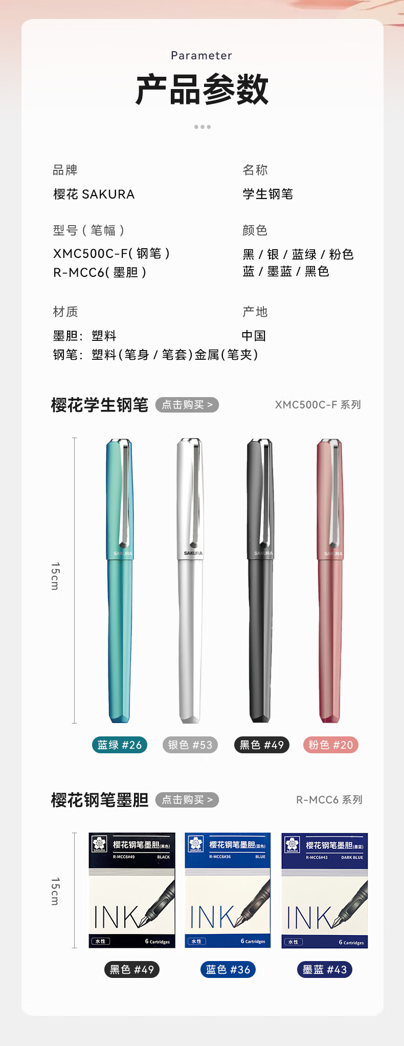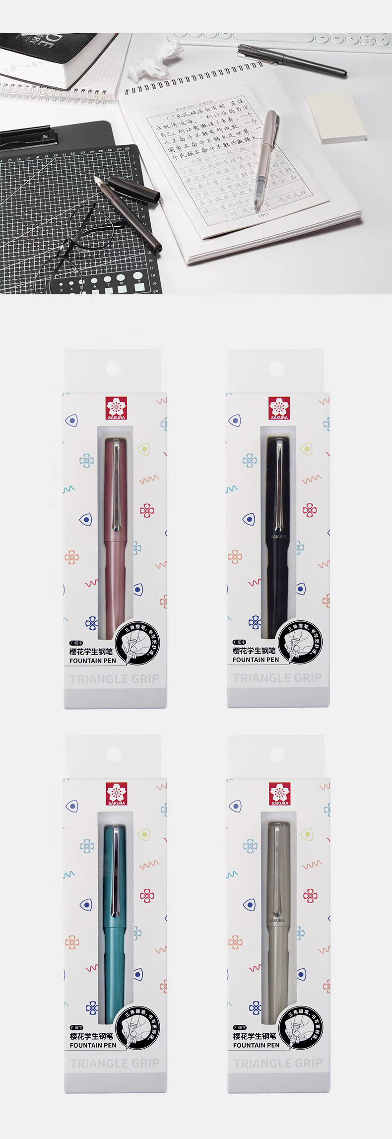 樱花(SAKURA)学生钢笔三角握杆正姿可换墨囊女暑假期书法练字办公签字初学者适用粉色礼物