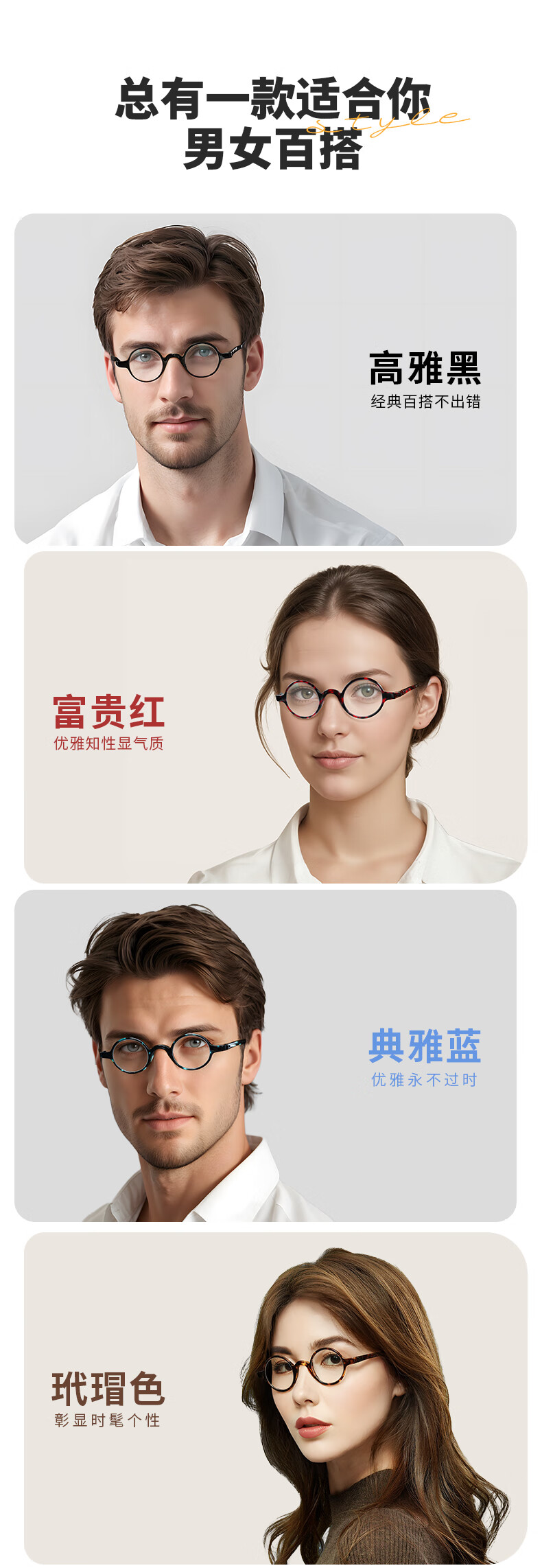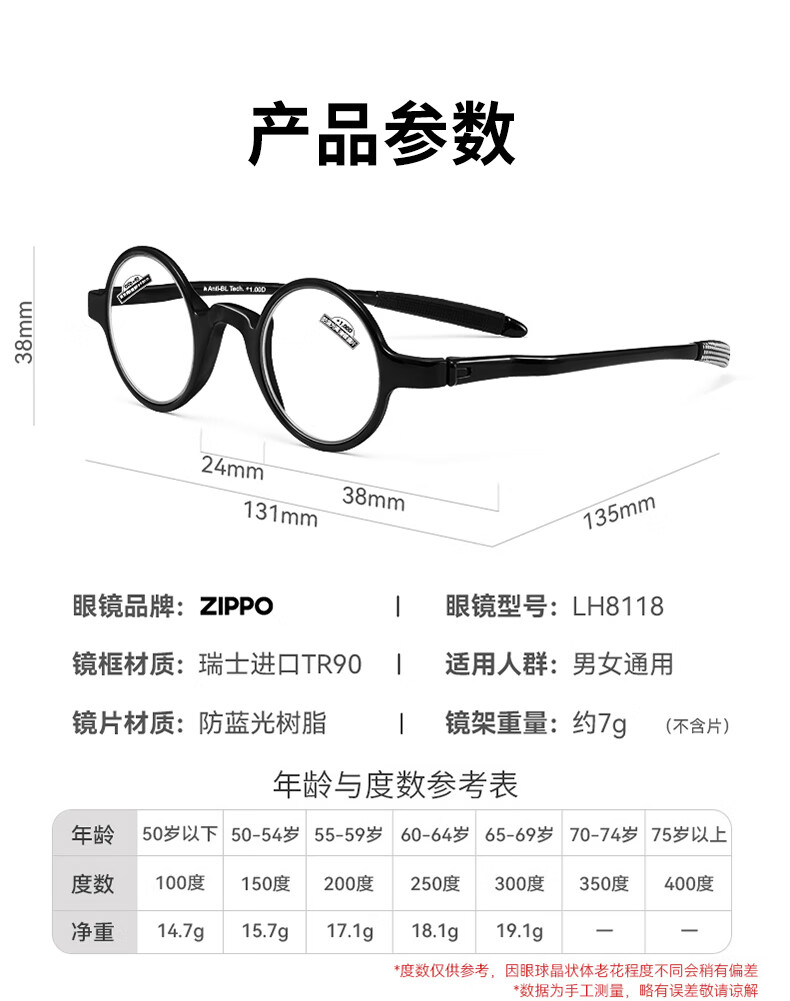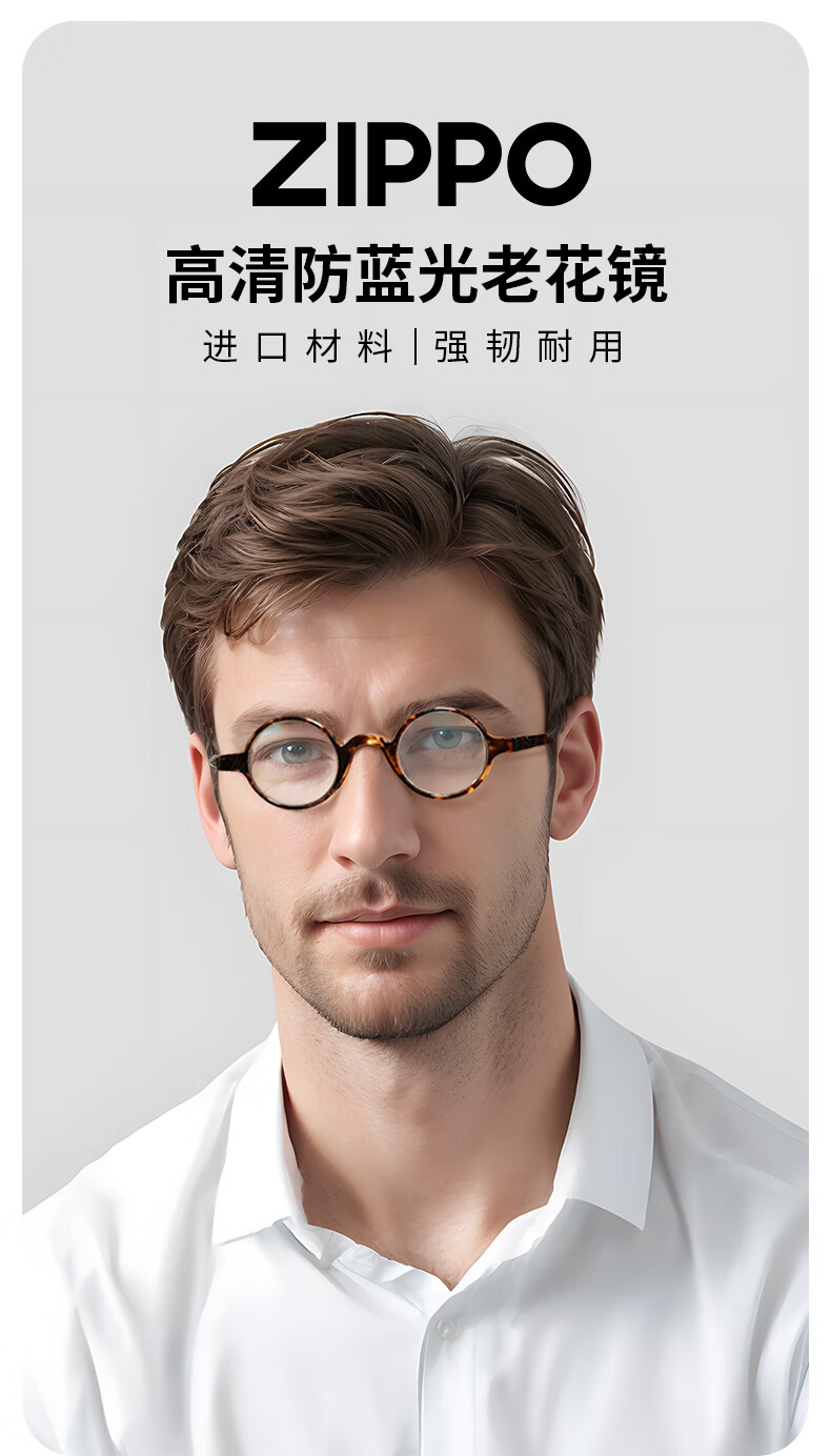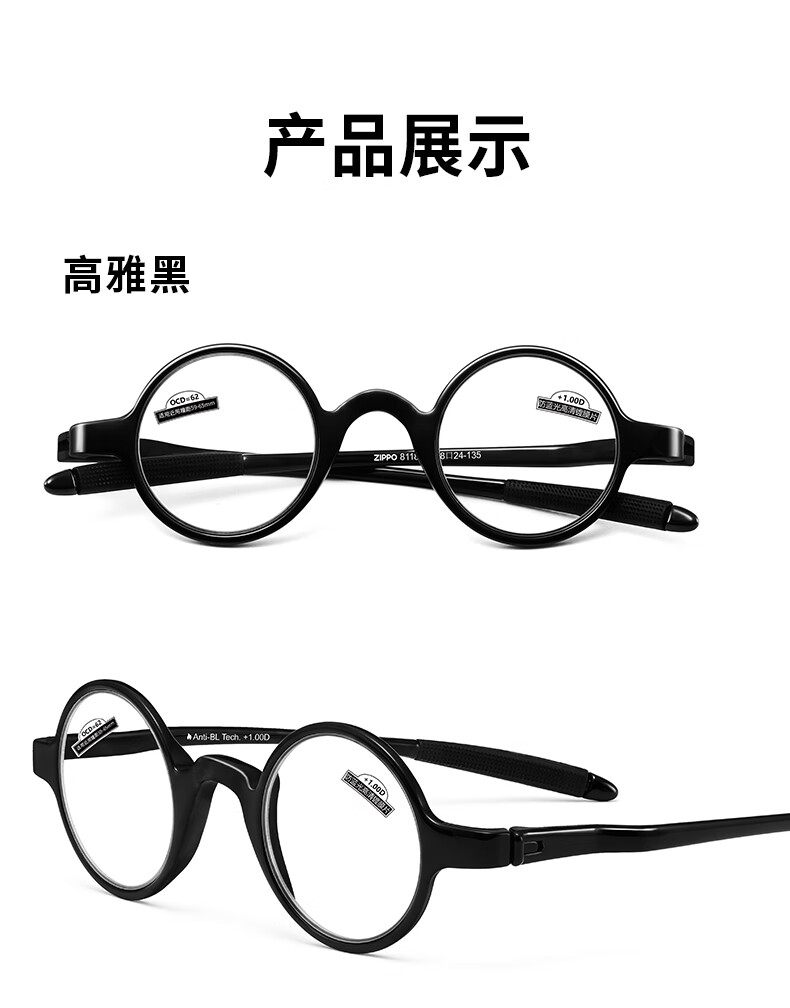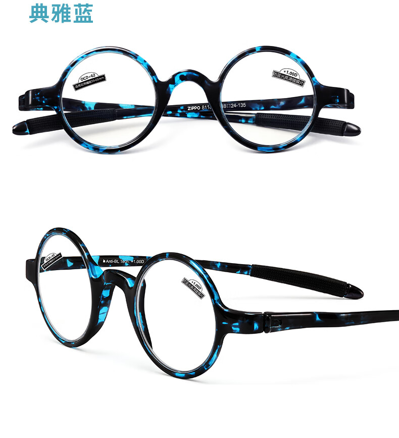 ZIPPO美国防蓝光老花镜复古圆框进口材料高清超轻舒适耐用8118玳150度