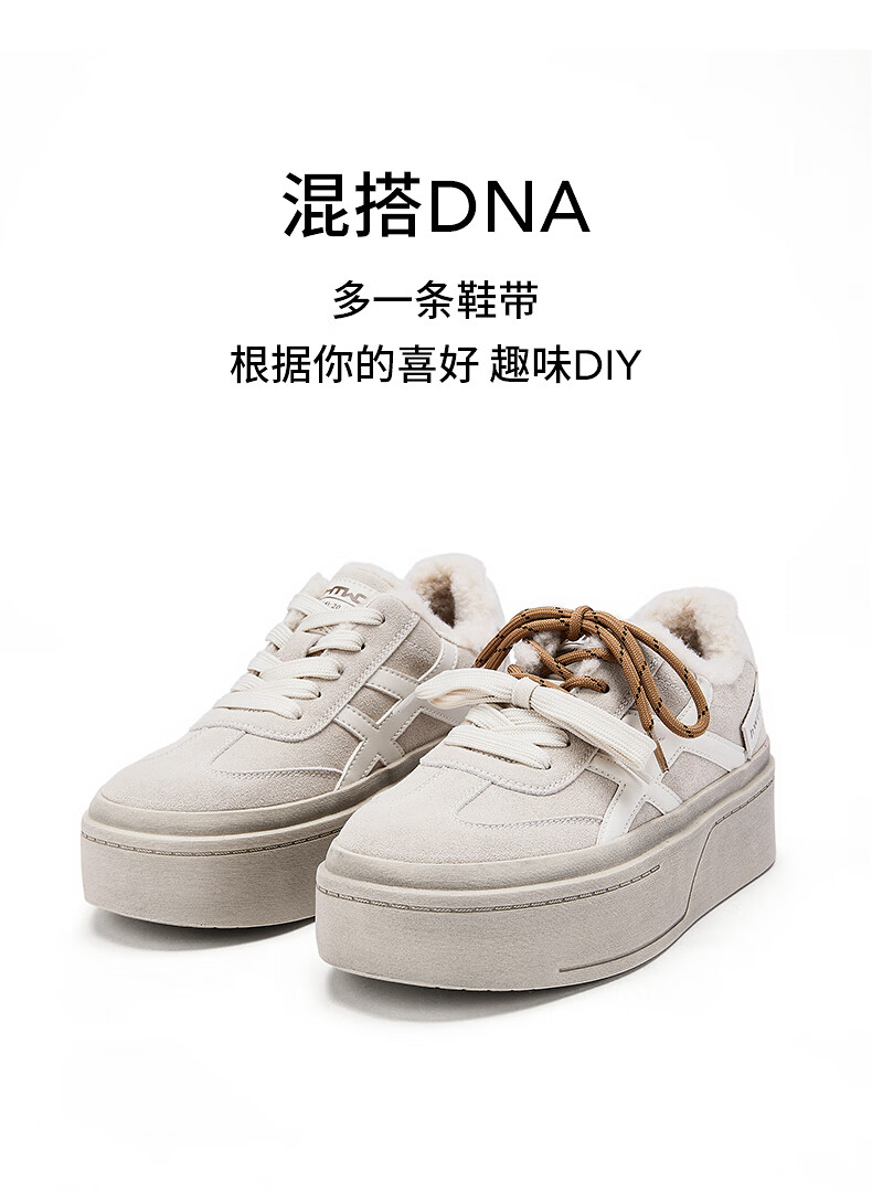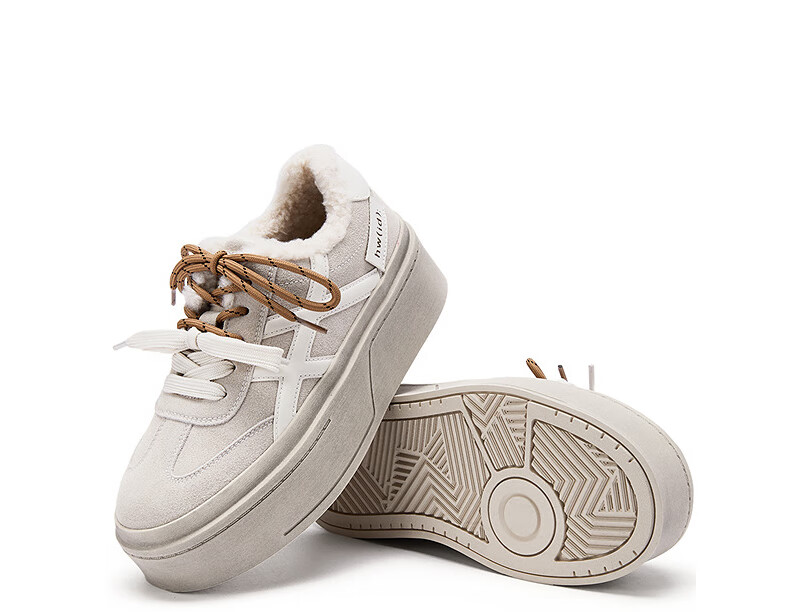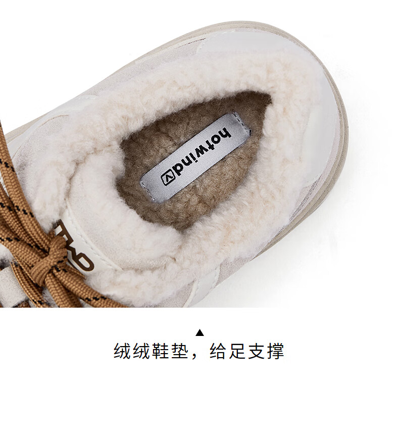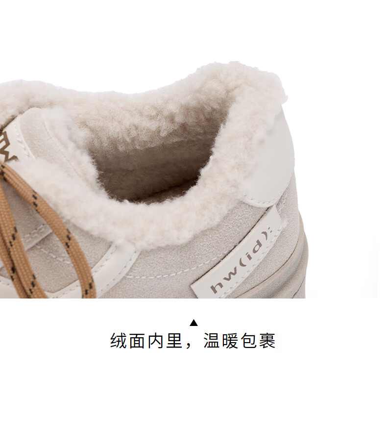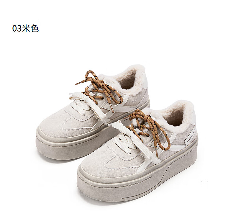 热风厚底德训鞋女2025年冬季新款加绒保暖休闲鞋百搭运动女板鞋子 03米色 34