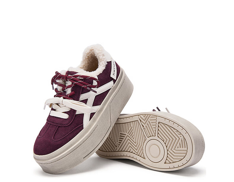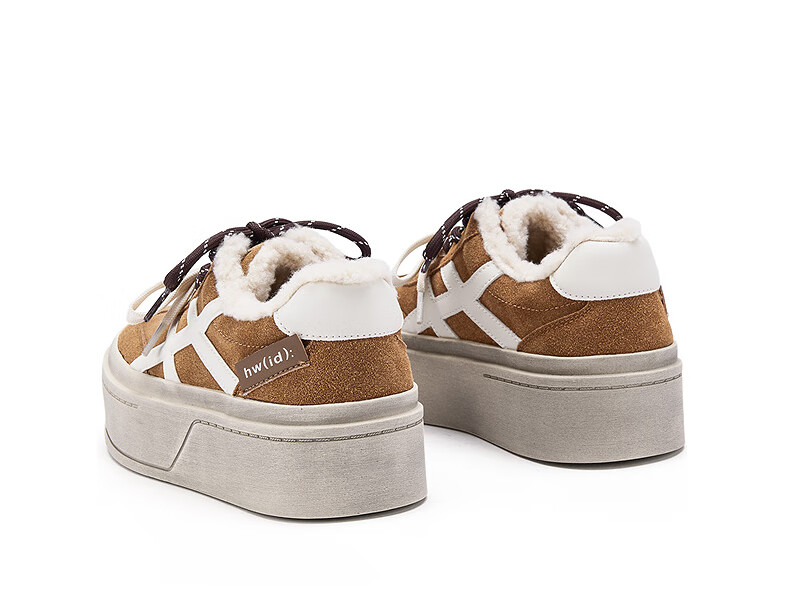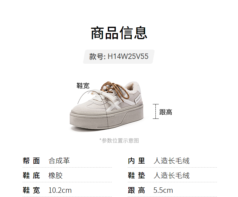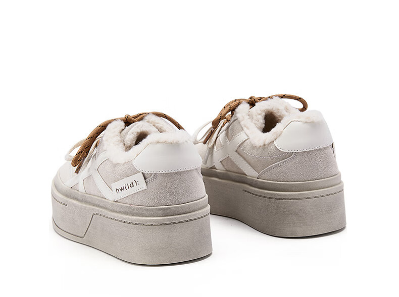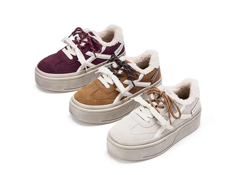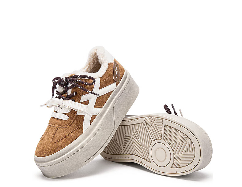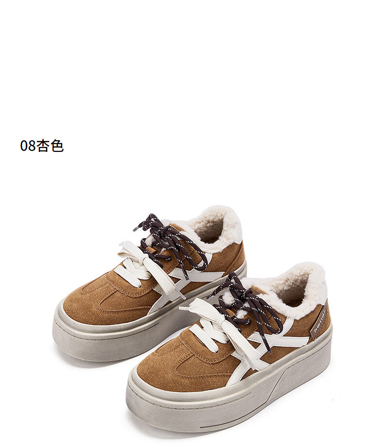 热风厚底德训鞋女2025年冬季新款加绒保暖休闲鞋百搭运动女板鞋子 03米色 34
