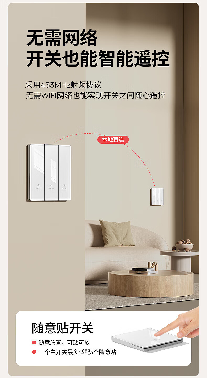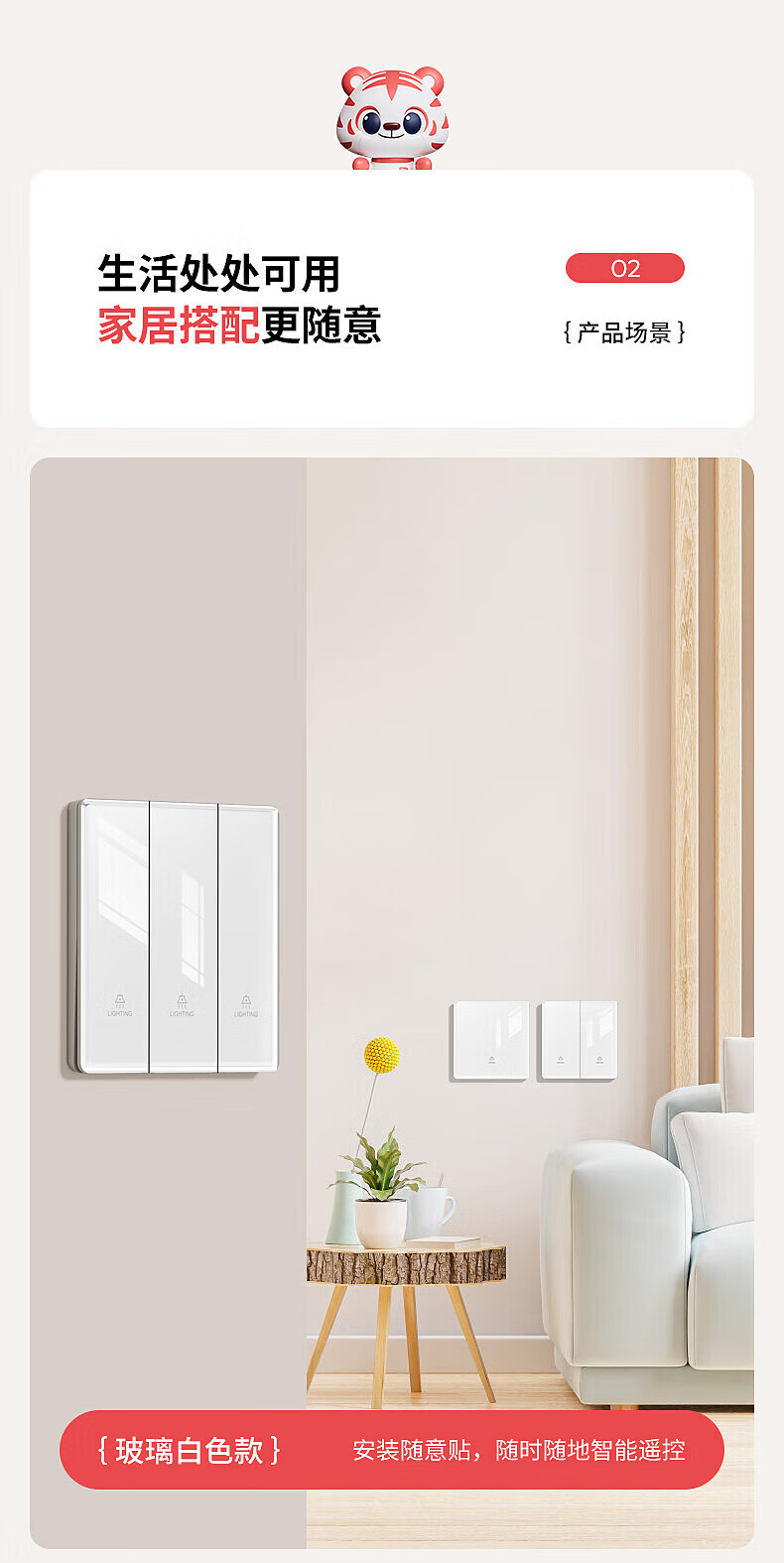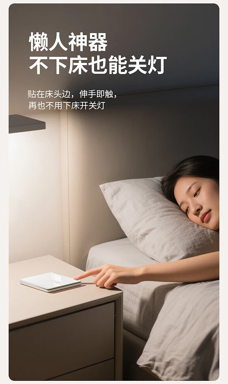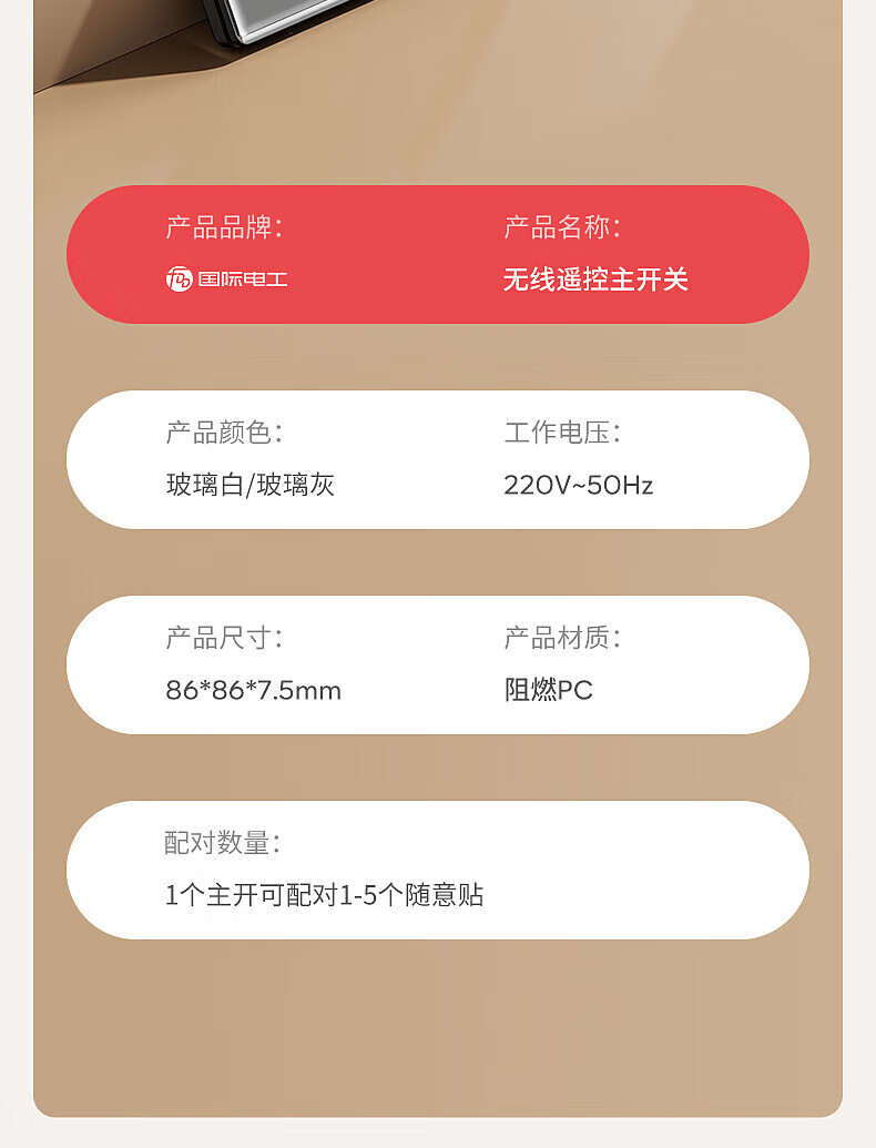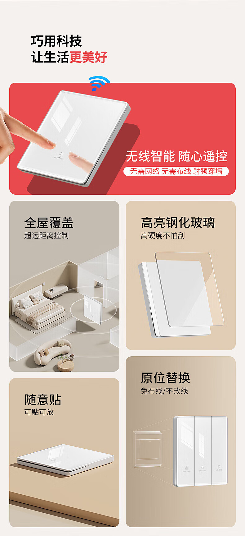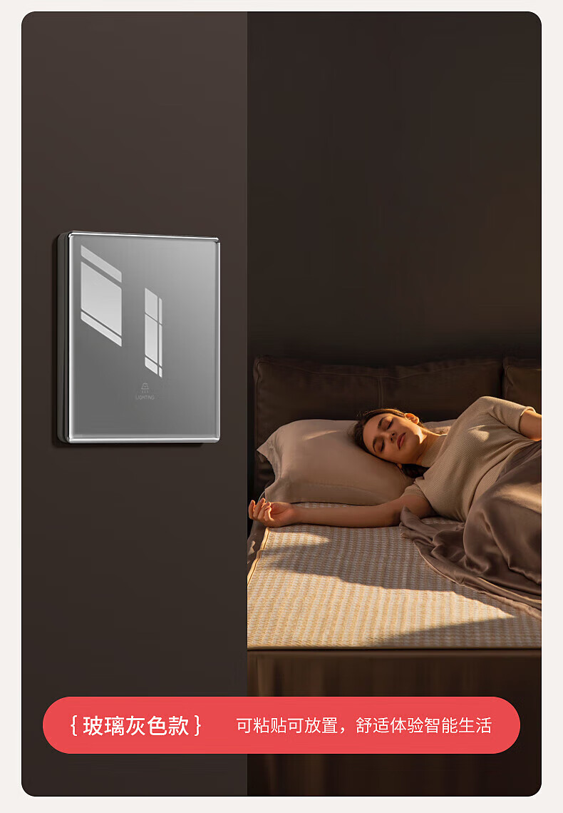 国际电工卧室床头智能面板220v无线遥控开关随意贴免布线钢化玻璃全屋控制 一开主机+一开随意贴【白色】