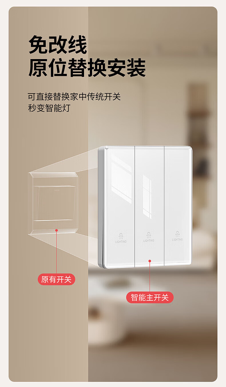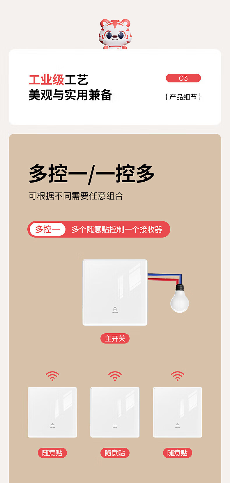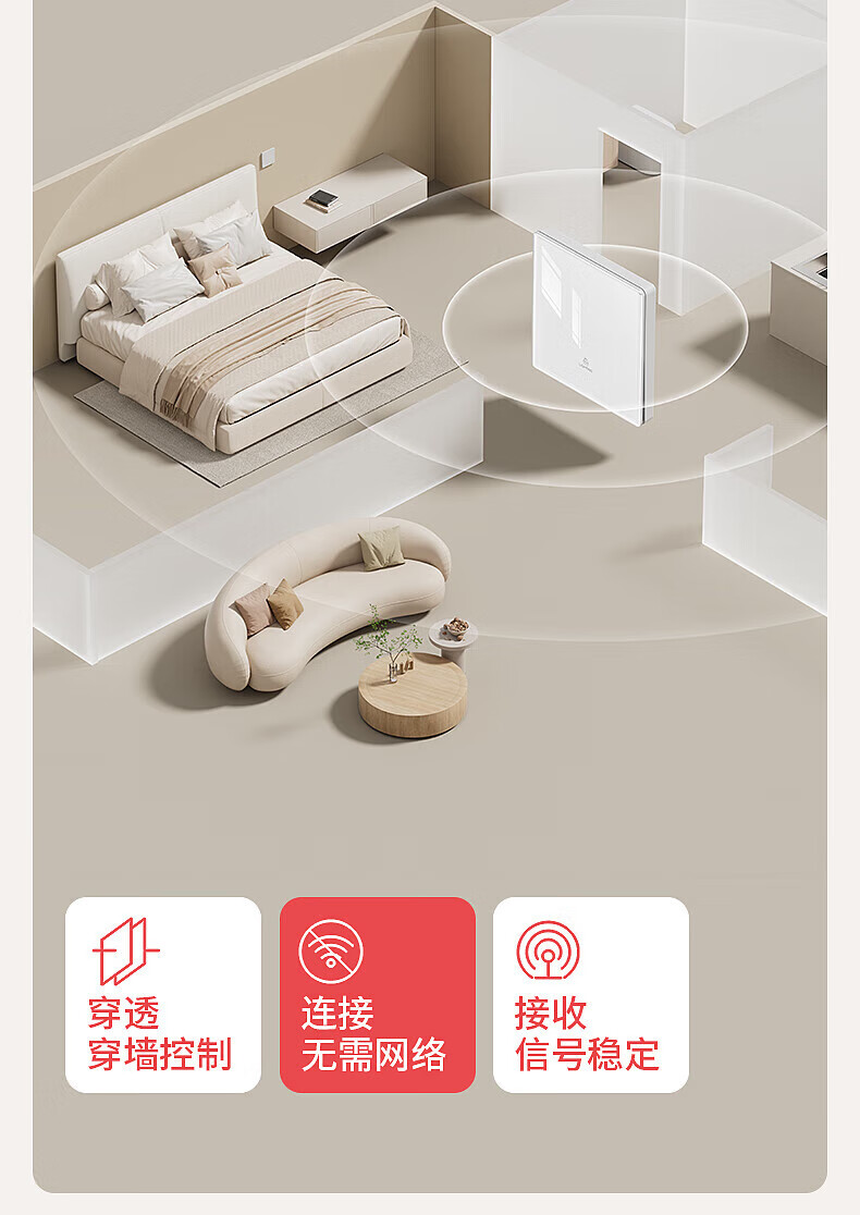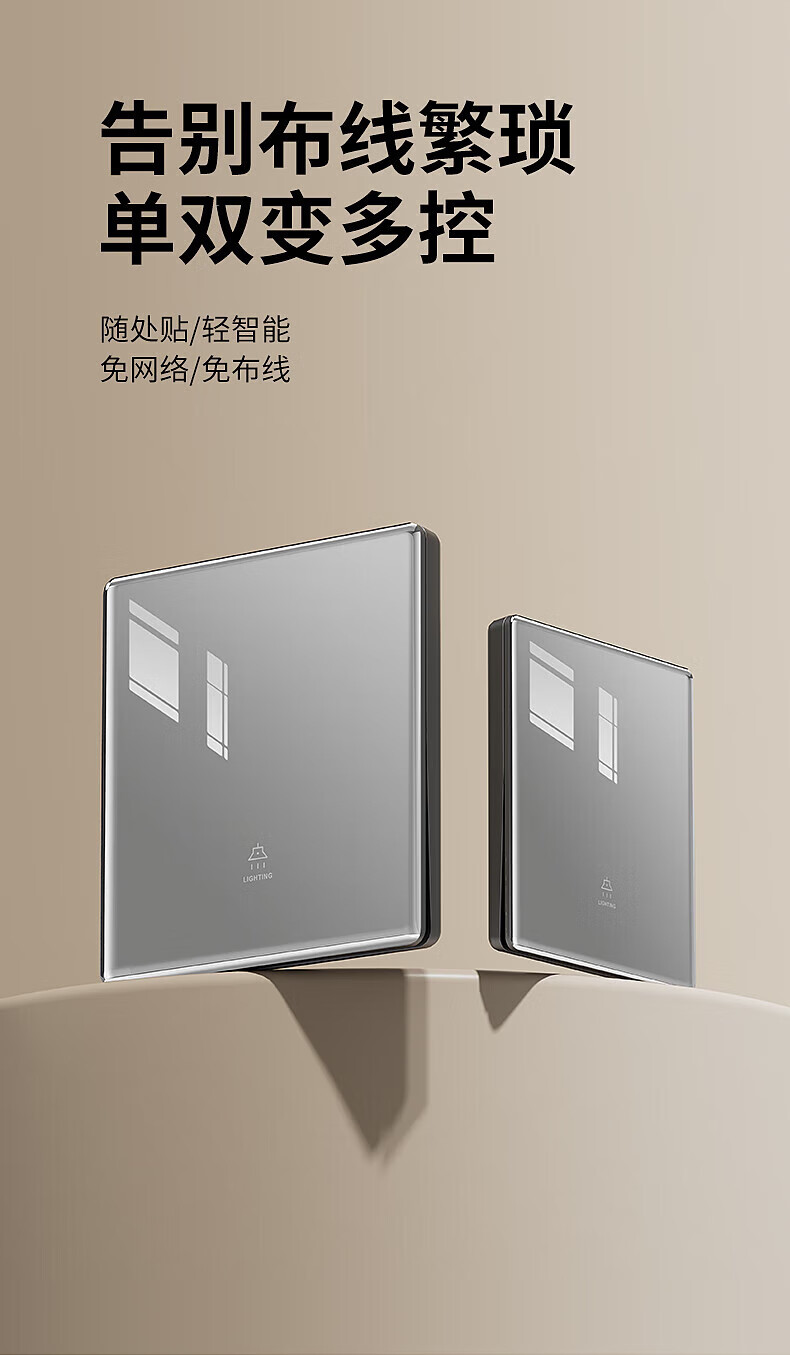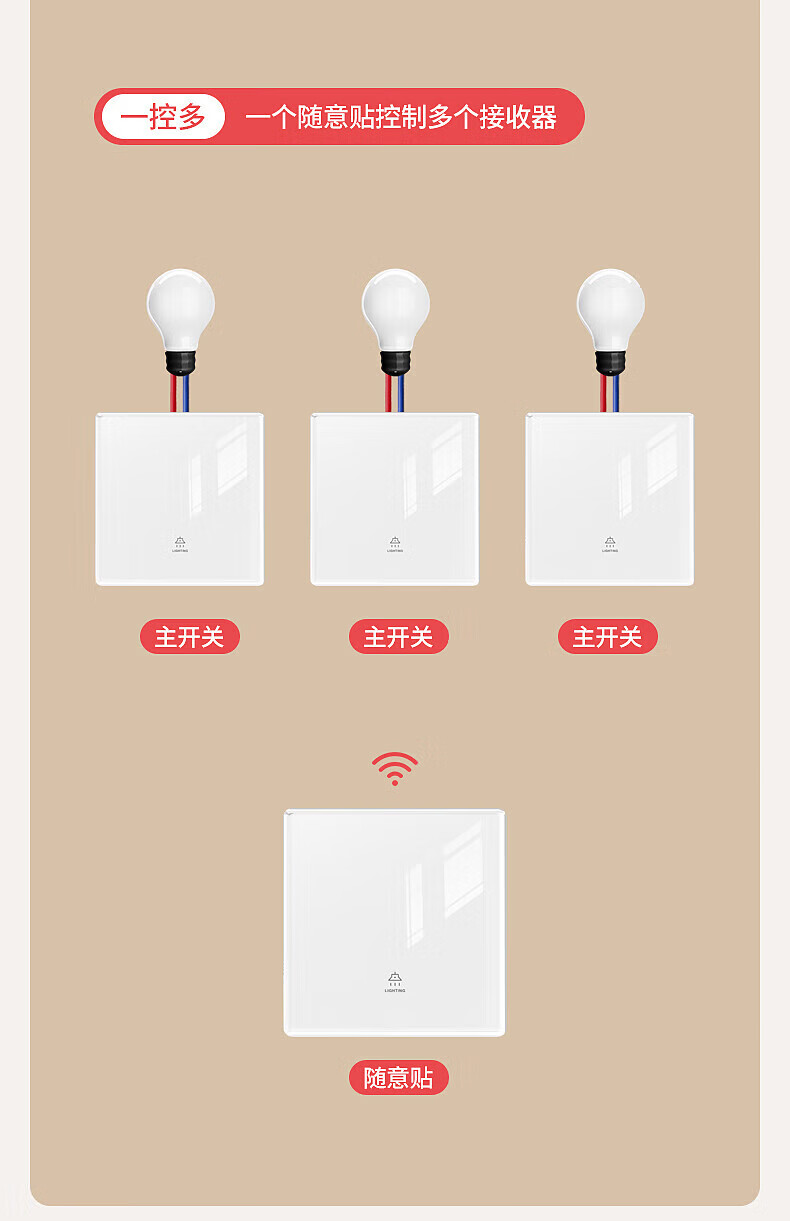 国际电工卧室床头智能面板220v无线遥控开关随意贴免布线钢化玻璃全屋控制 一开主机+一开随意贴【白色】