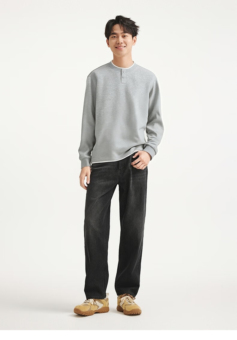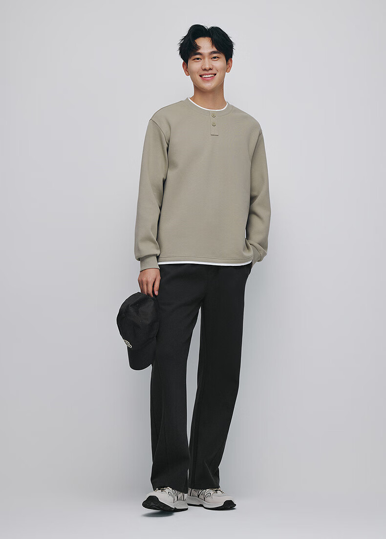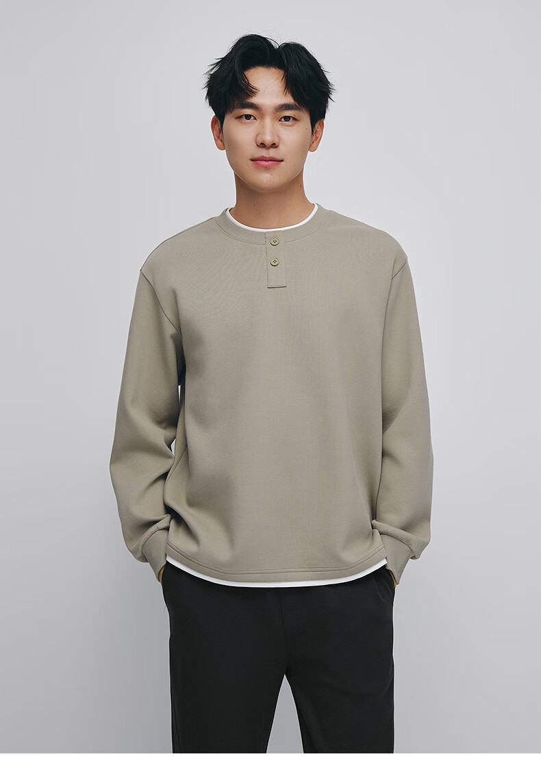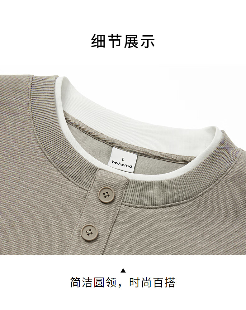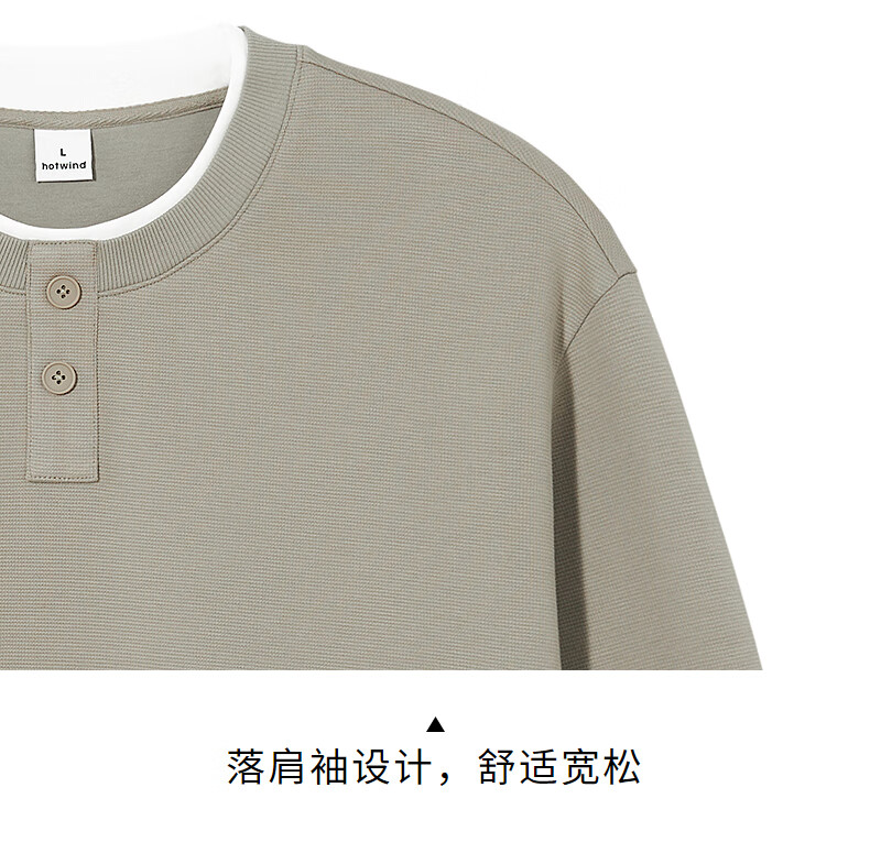 热风男士套头卫衣2025年秋季新款假两件韩系基础款卫衣宽松打底衫 08杏色 S