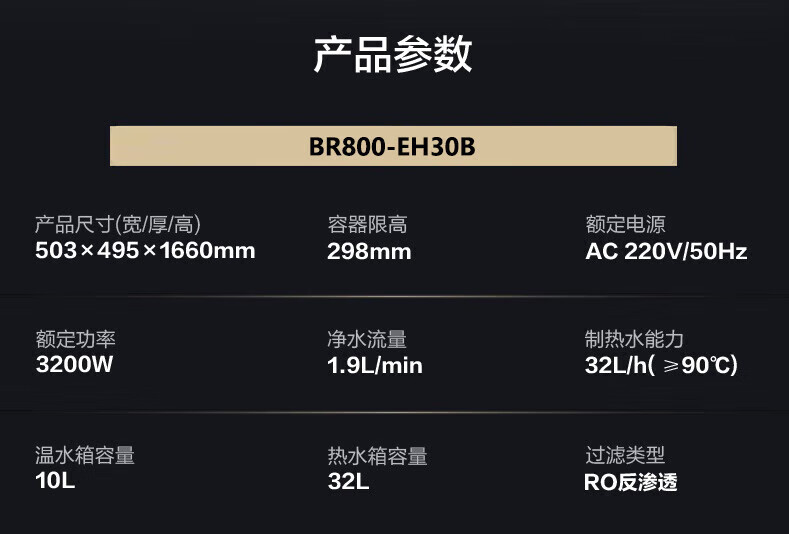 AOSmith商用直饮机黑金刚800G大流量32L净水器饮水机商用净水设备 BR800-EH30B