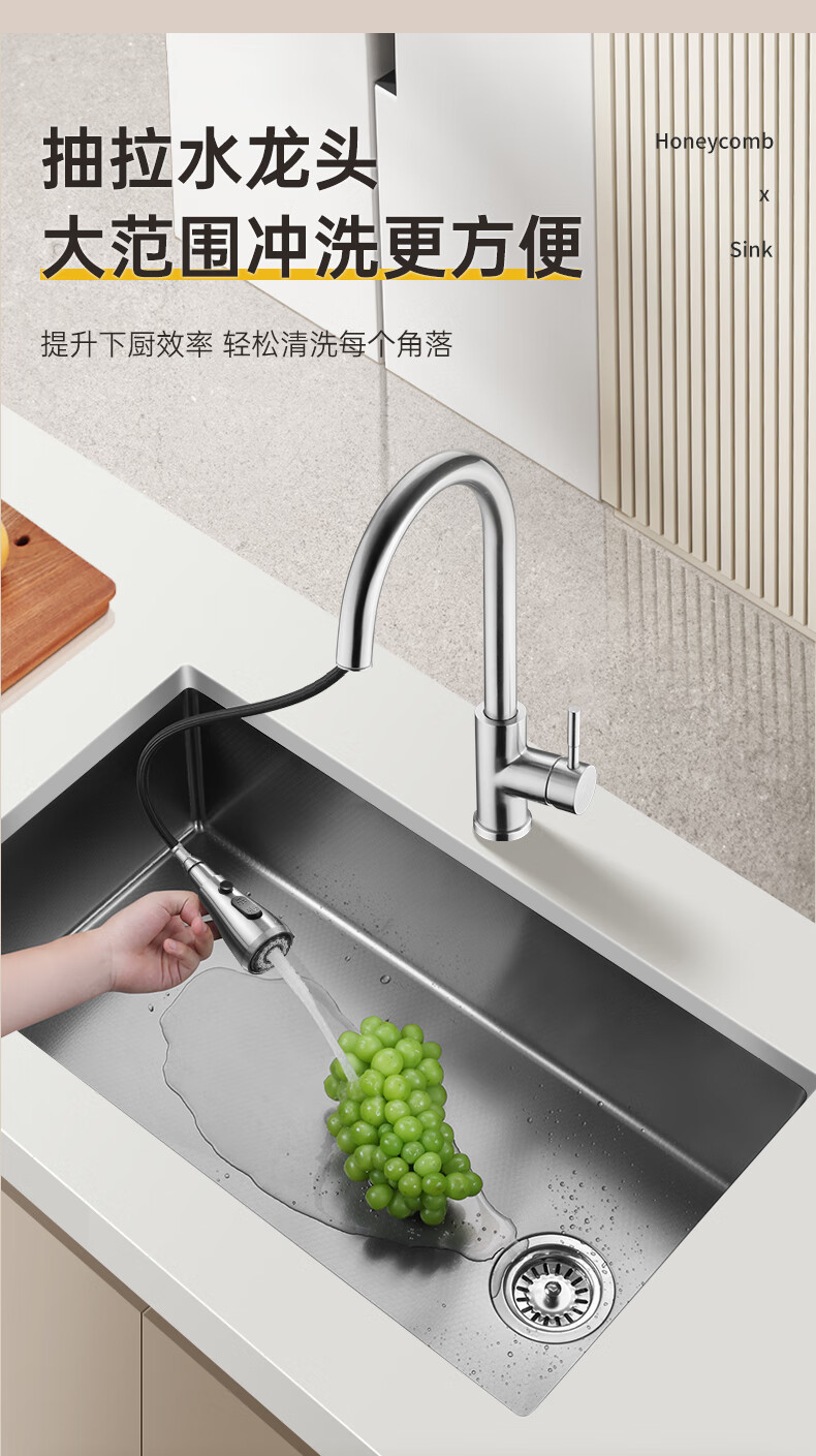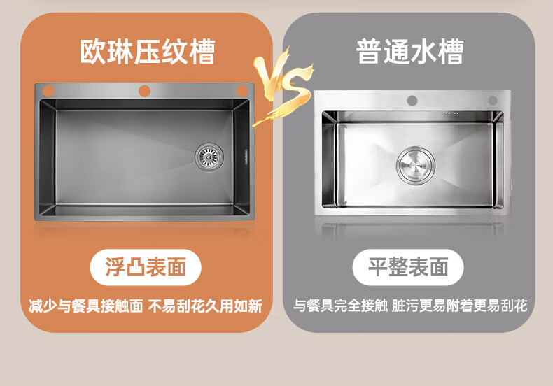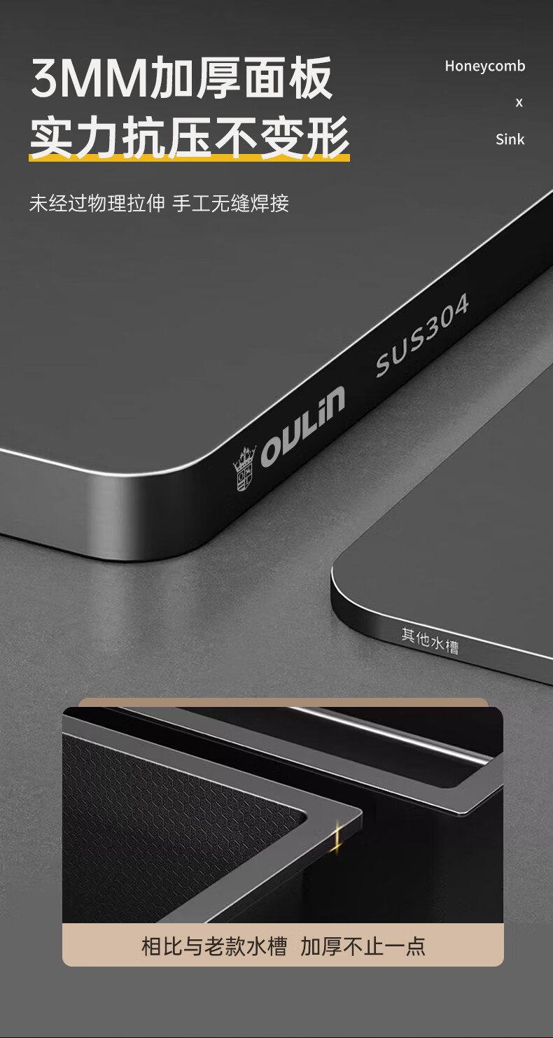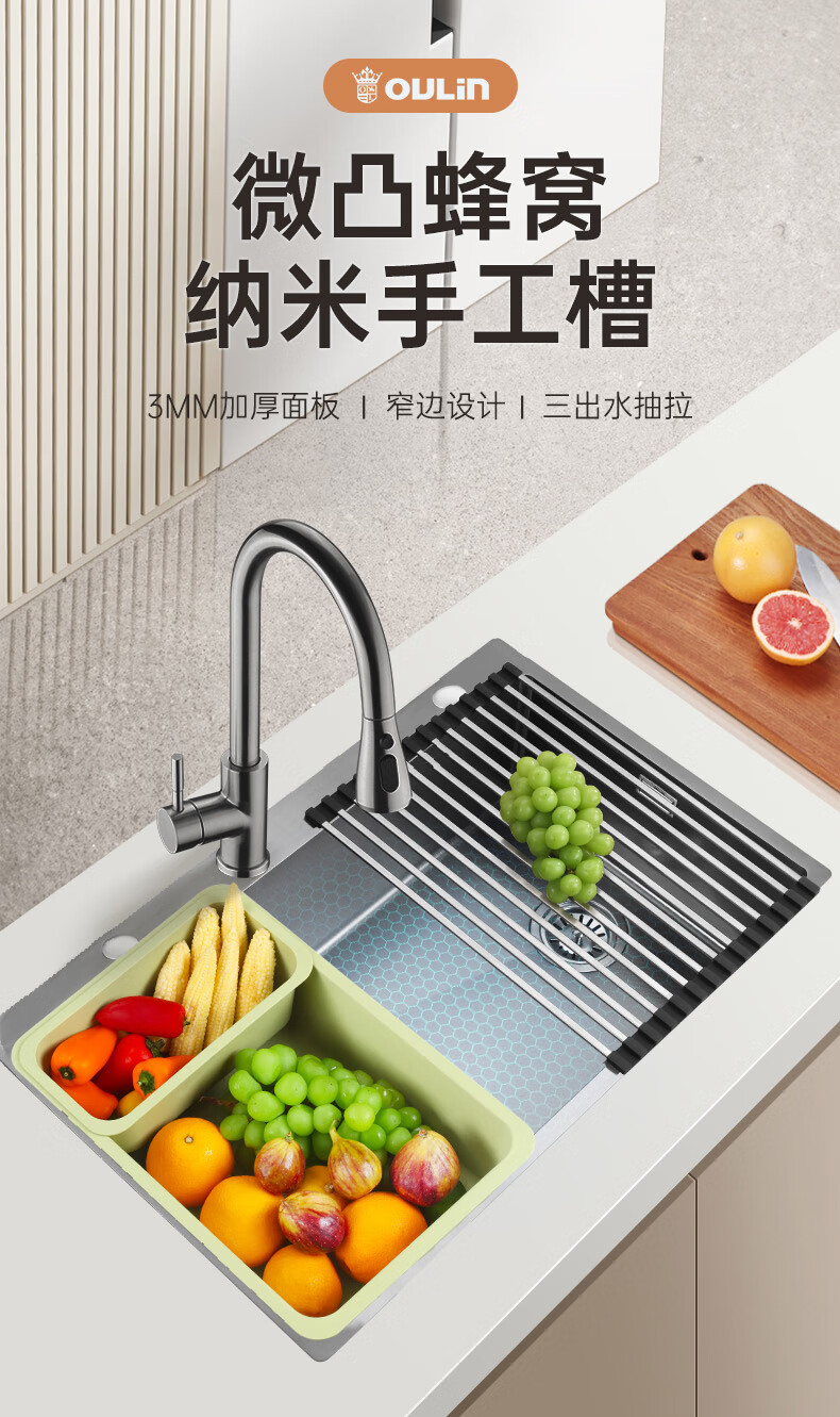 欧琳(OULIN)厨房水槽大单槽耐刮压纹304不锈钢水槽抽拉龙头加厚3.0
