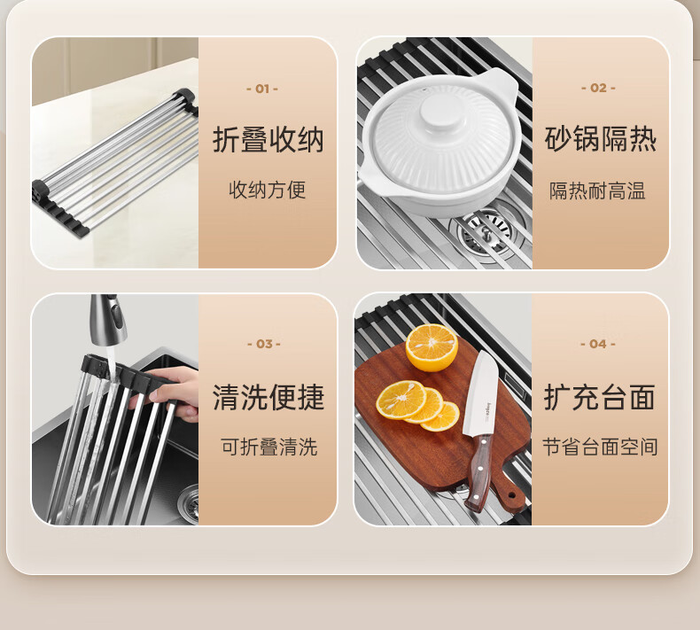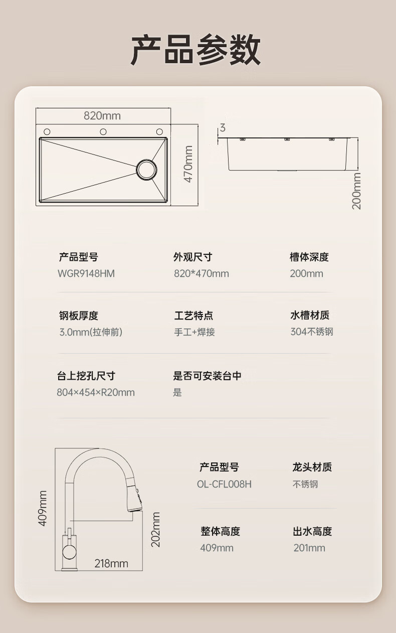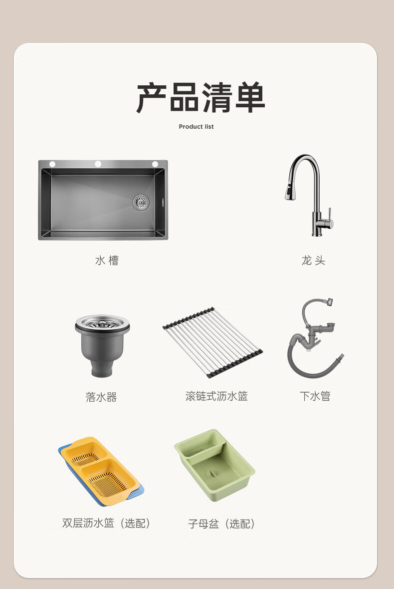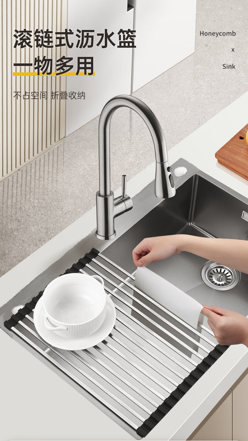 欧琳(OULIN)厨房水槽大单槽耐刮压纹304不锈钢水槽抽拉龙头加厚3.0