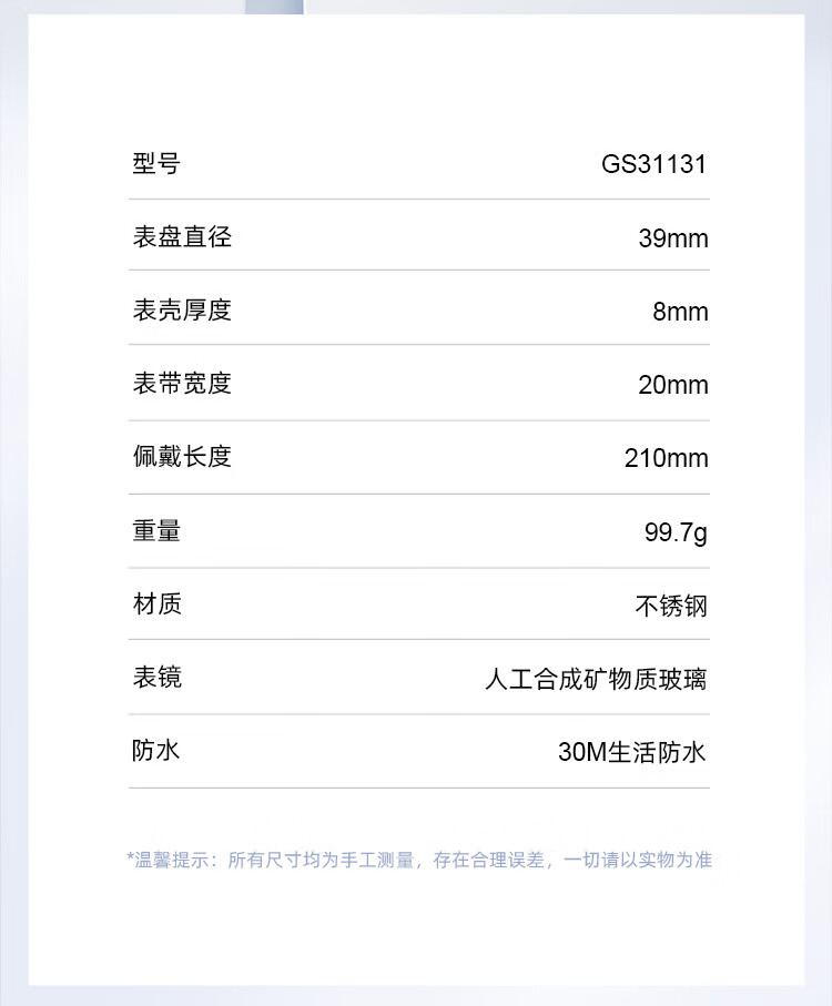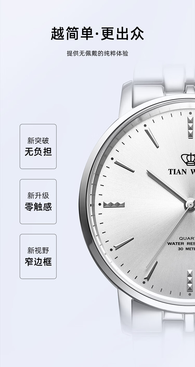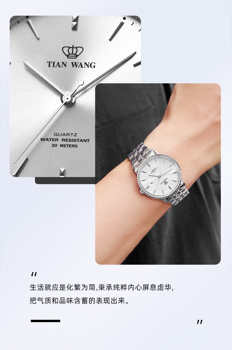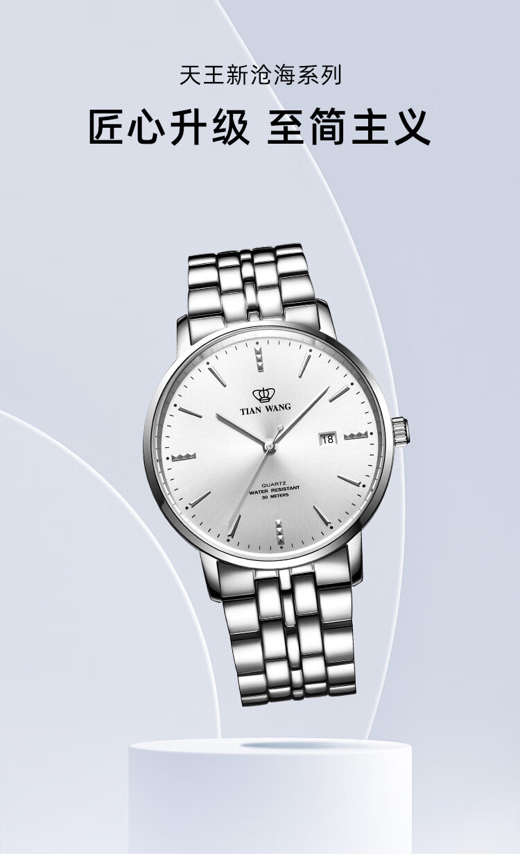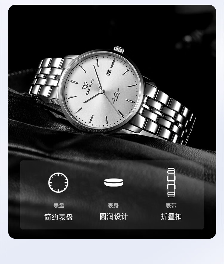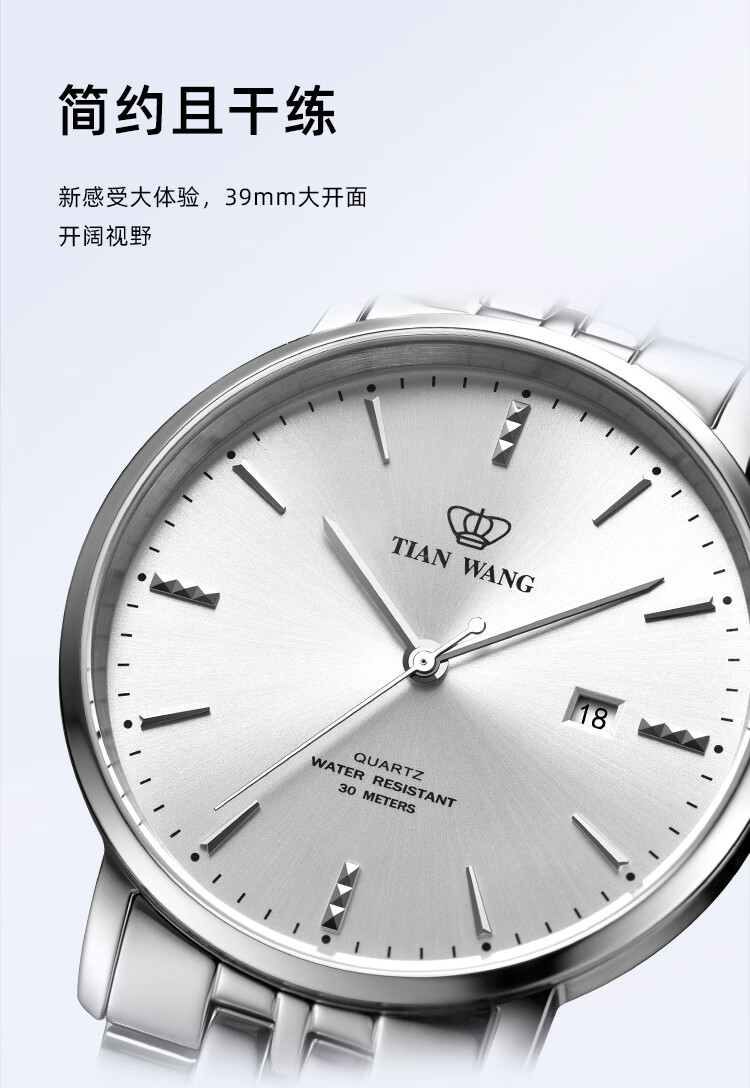 天王(TIAN WANG)手表男士 生日礼物学生手表钢带石英男表白色GS31131S.D.S.S