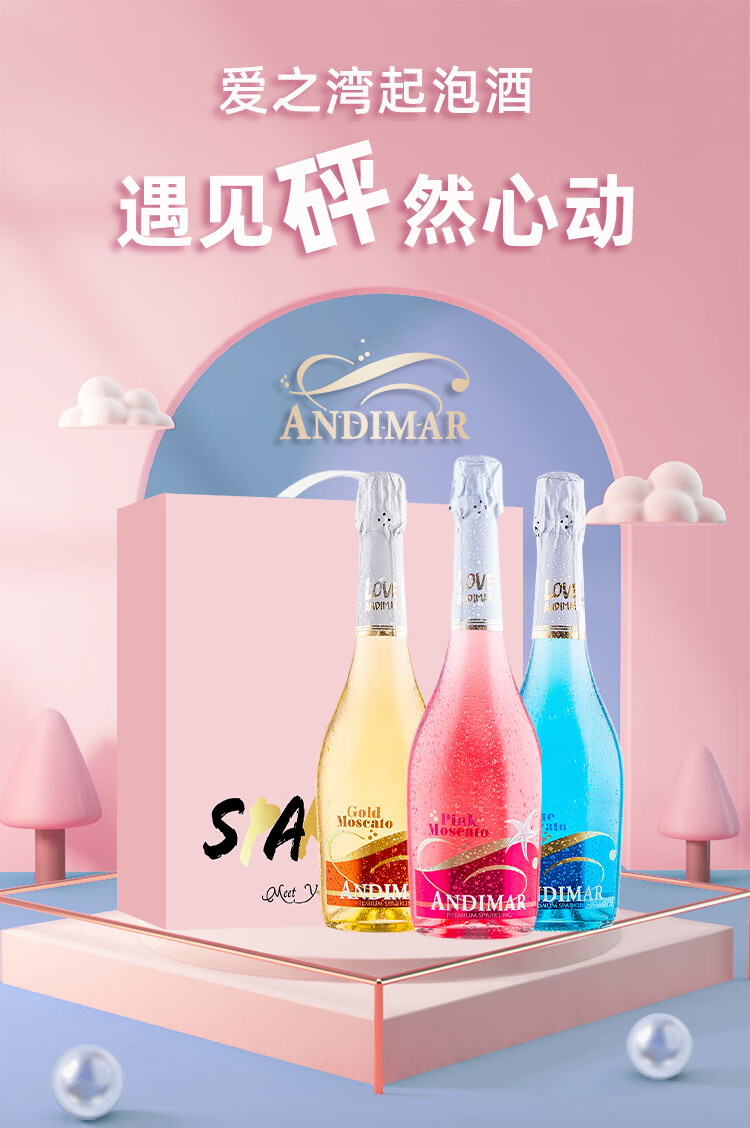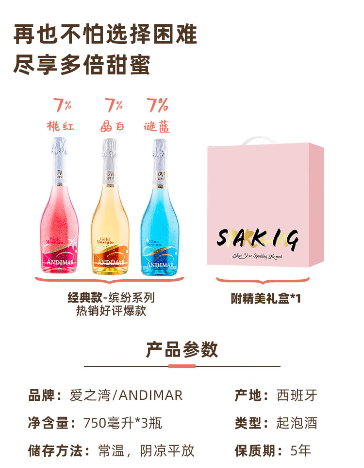 爱之湾三支甜起泡葡萄酒低度气泡果酒礼盒750ml*3瓶西班牙进口热门商品