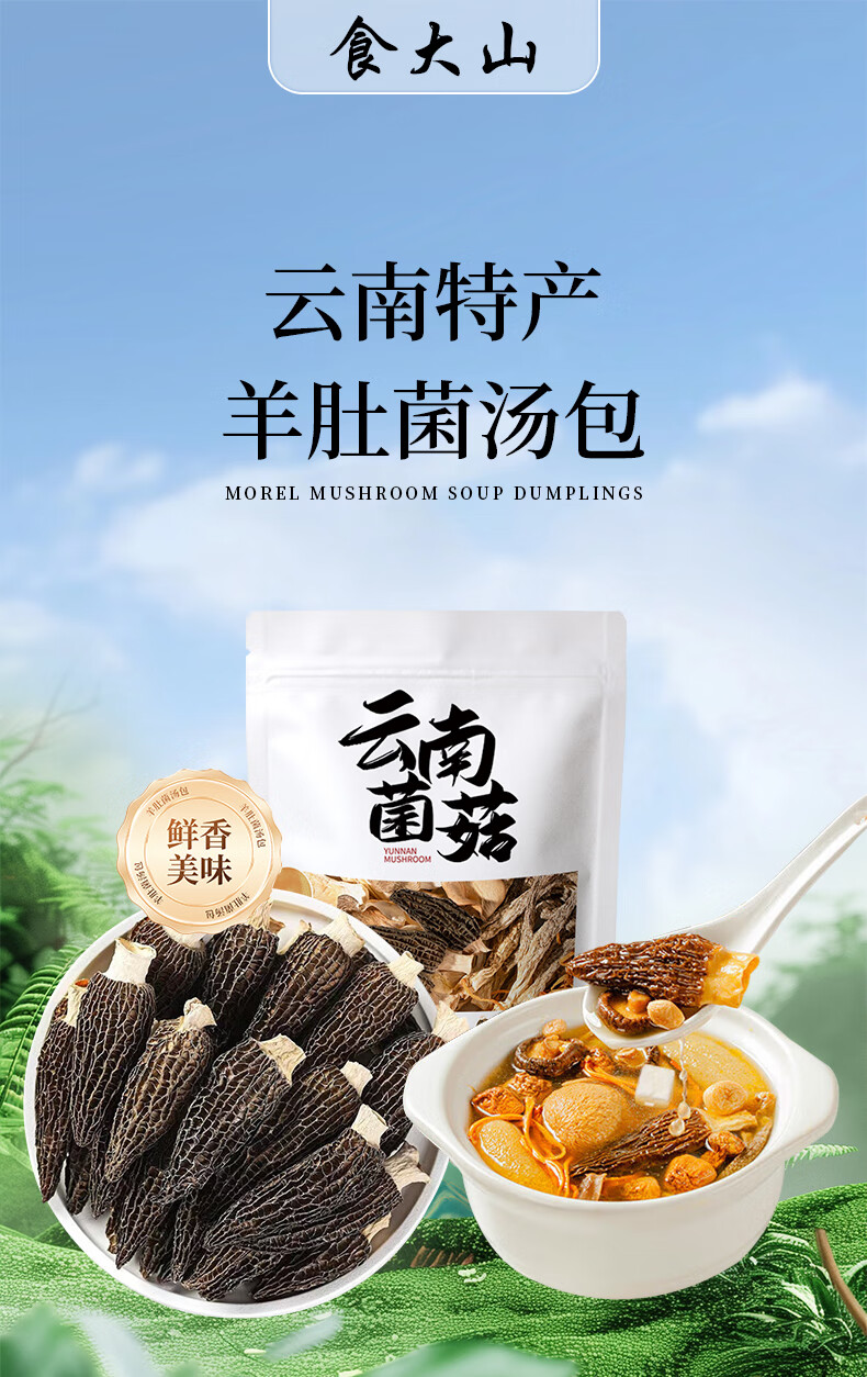 山珍录羊肚菌汤包50g 云南菌菇蘑菇汤包山珍干货特产 火锅煲汤炖鸡材料