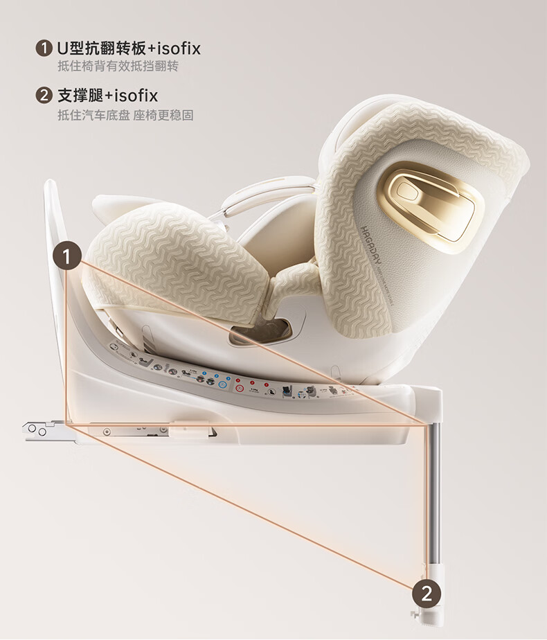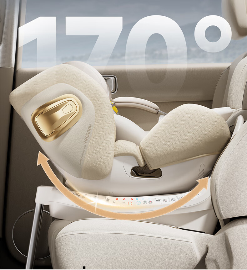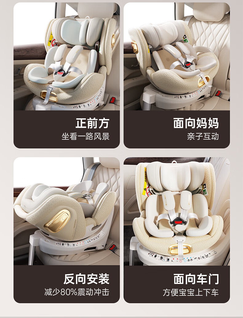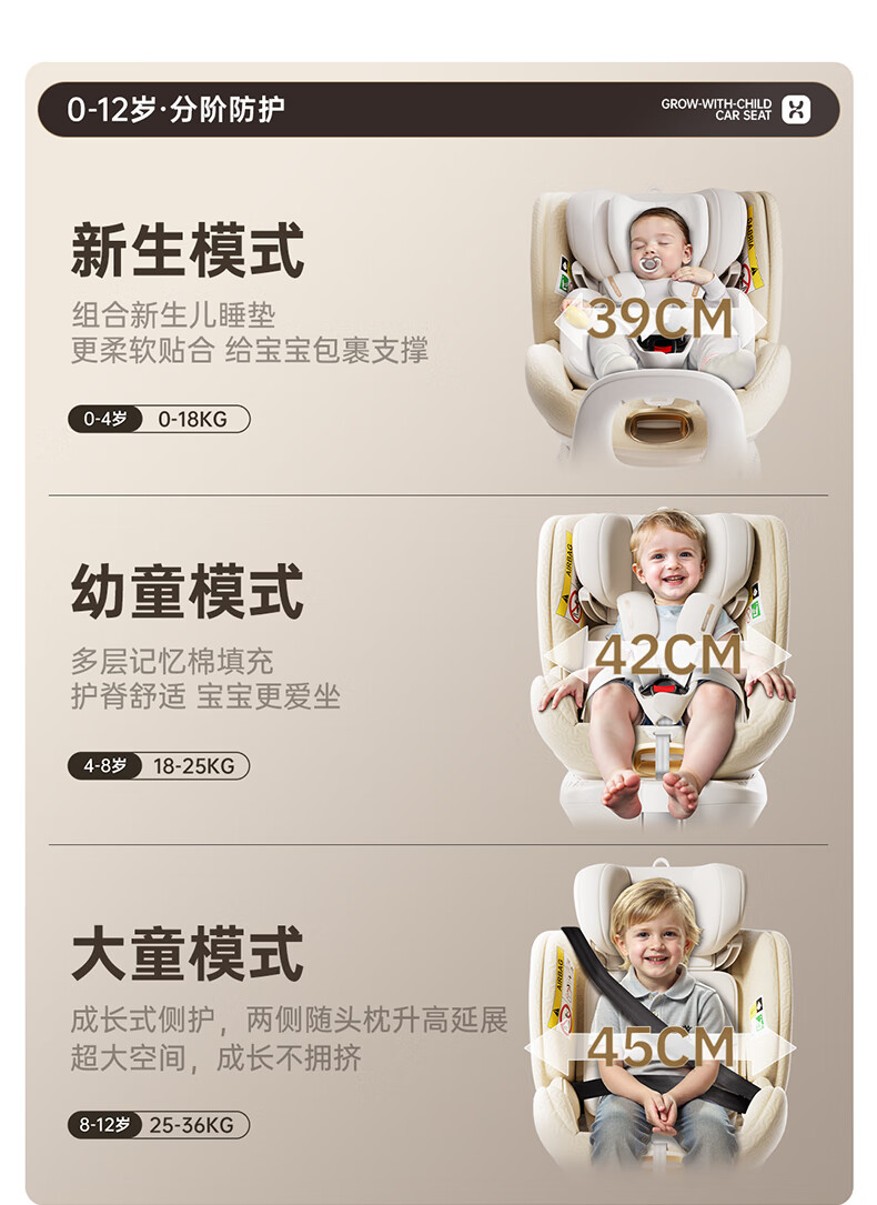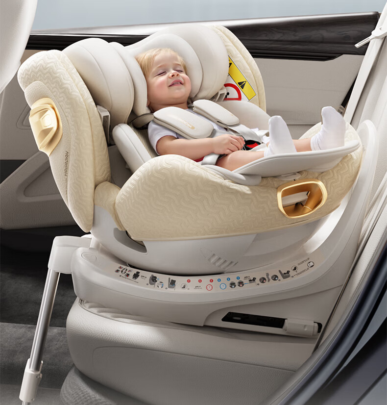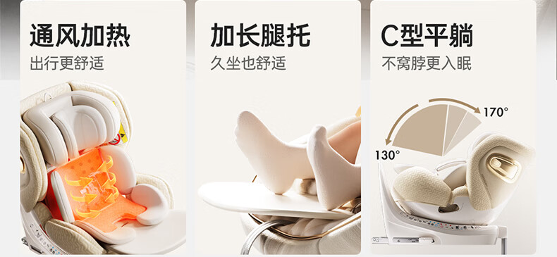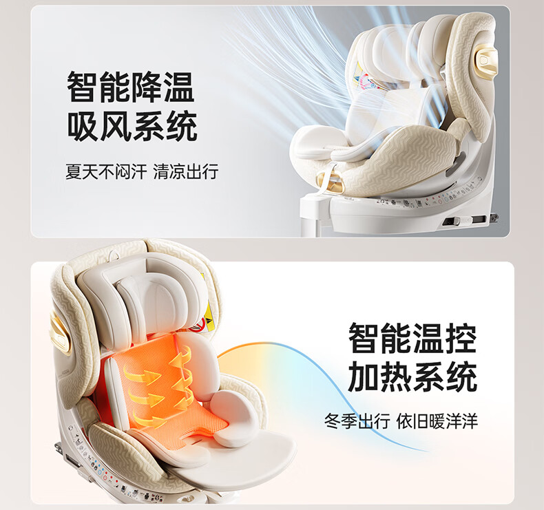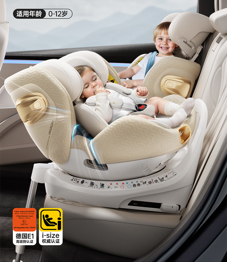 哈卡达(HAGADAY)儿童安全座椅汽车用婴儿0-12岁宝宝可坐躺车载通风加热 丝雾奶咖