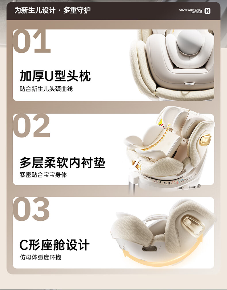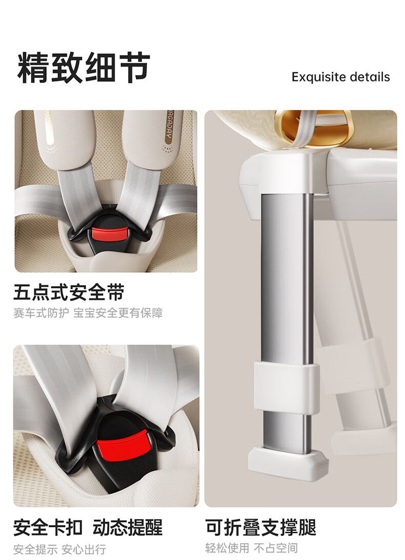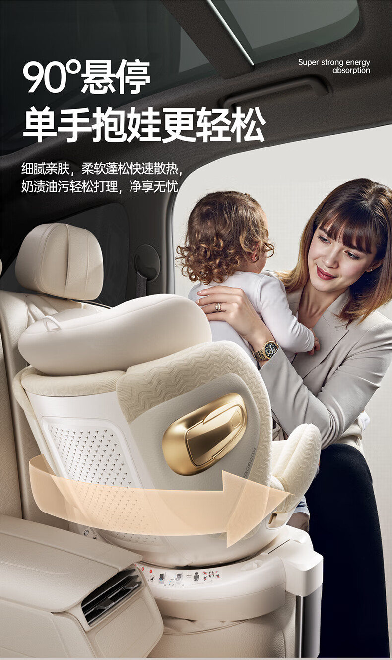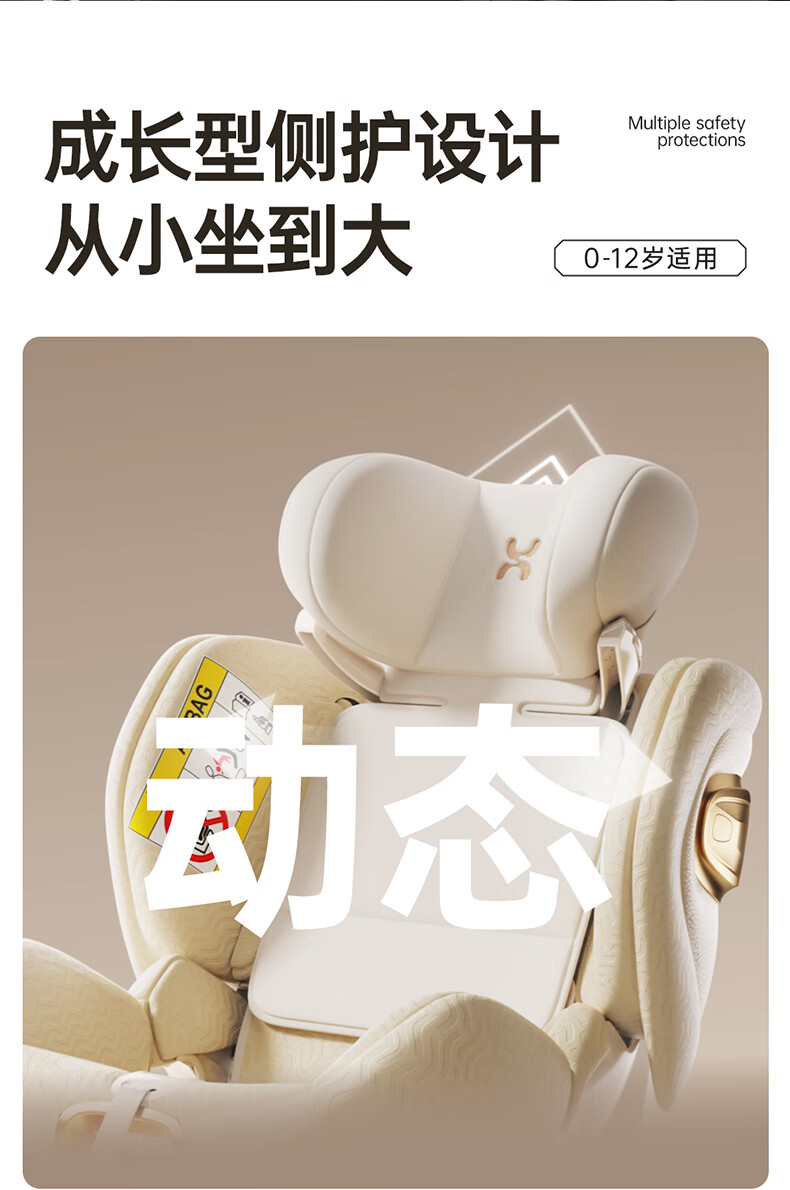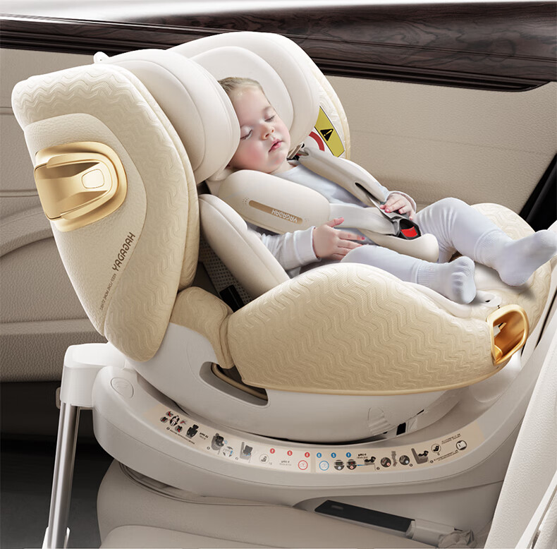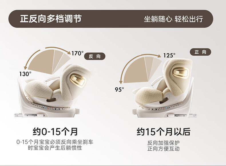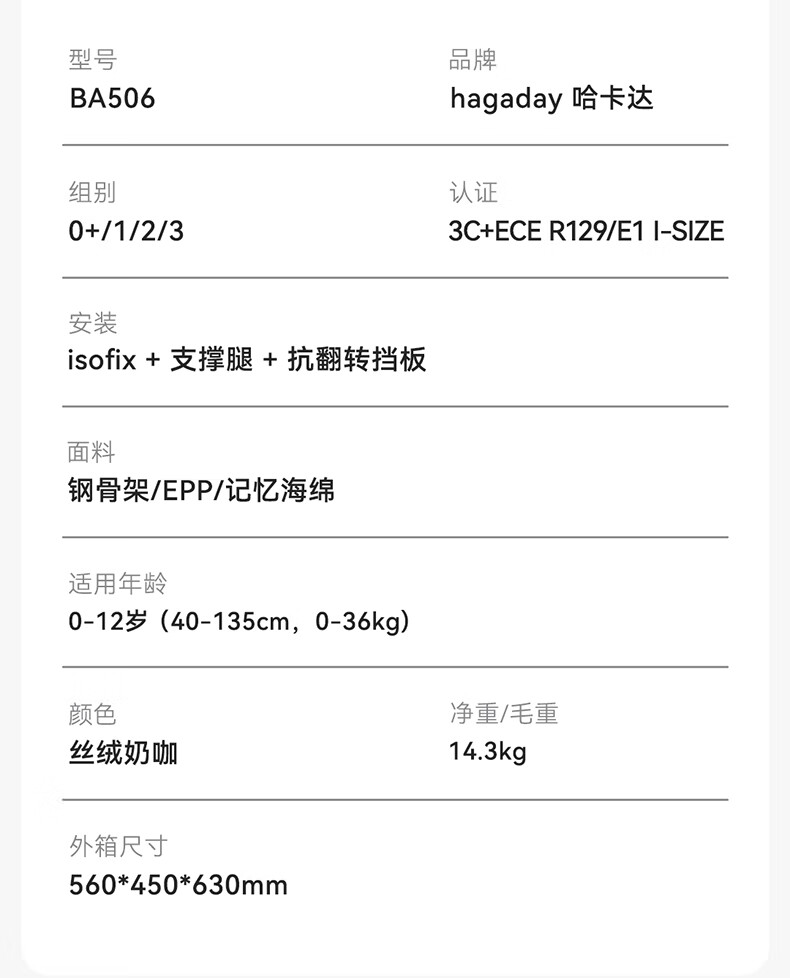 哈卡达(HAGADAY)儿童安全座椅汽车用婴儿0-12岁宝宝可坐躺车载通风加热 丝雾奶咖