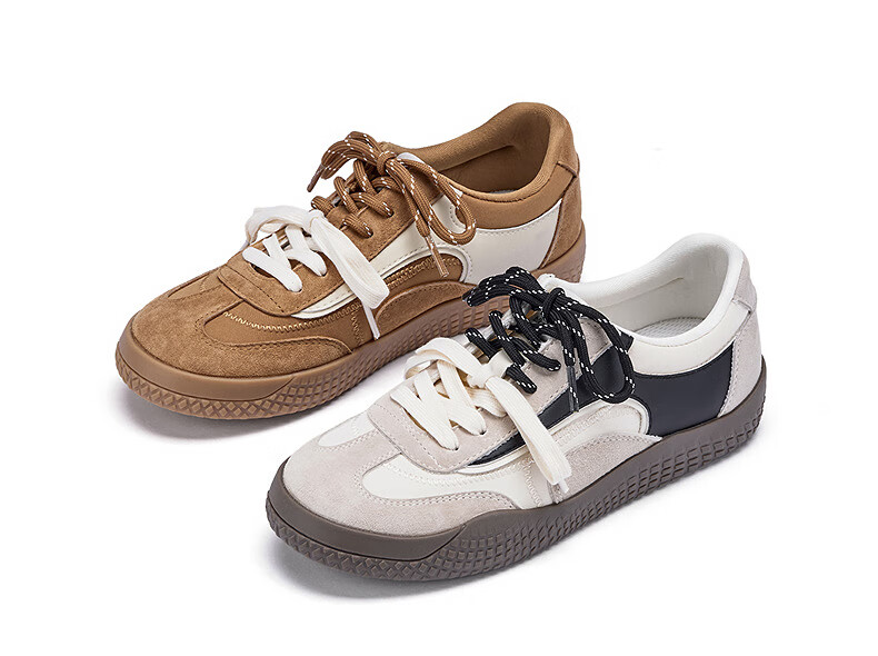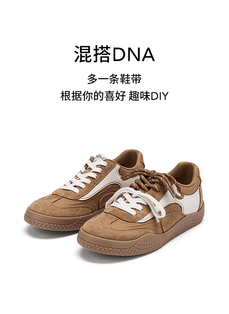 热风(Hotwind)【商场同款】薄底德训鞋2025年冬季新款复古阿甘慢跑鞋运动鞋女鞋 23棕白 38