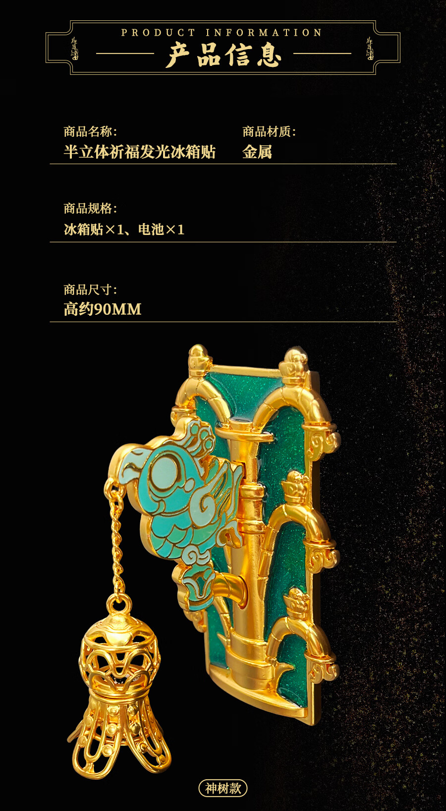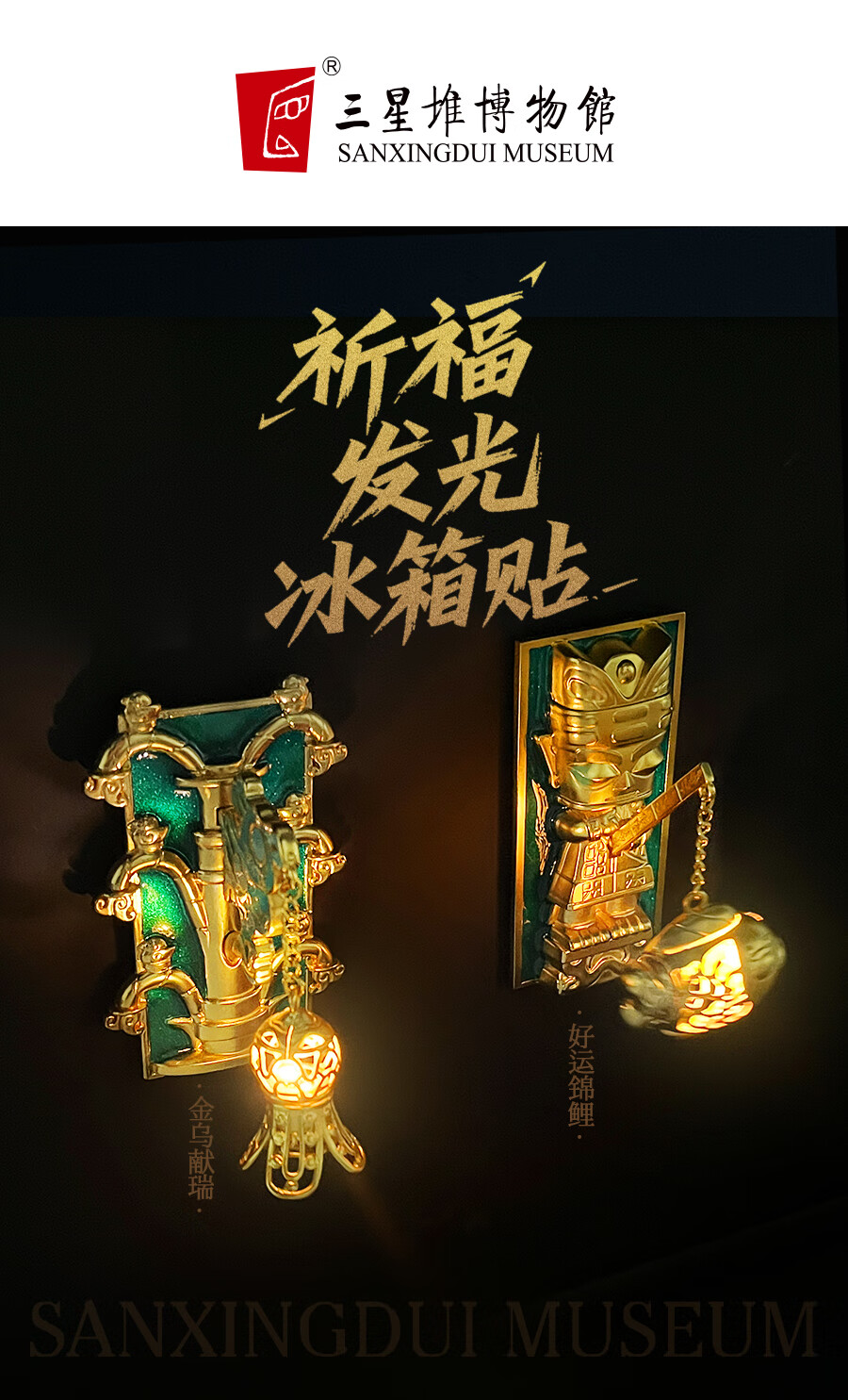 三星堆博物馆文创祈福发光冰箱贴青铜神树磁贴冰箱装饰旅游纪念品送人伴手礼物文创周边金属冰箱贴创意精致礼品 青铜神树半立体祈福发光冰箱贴