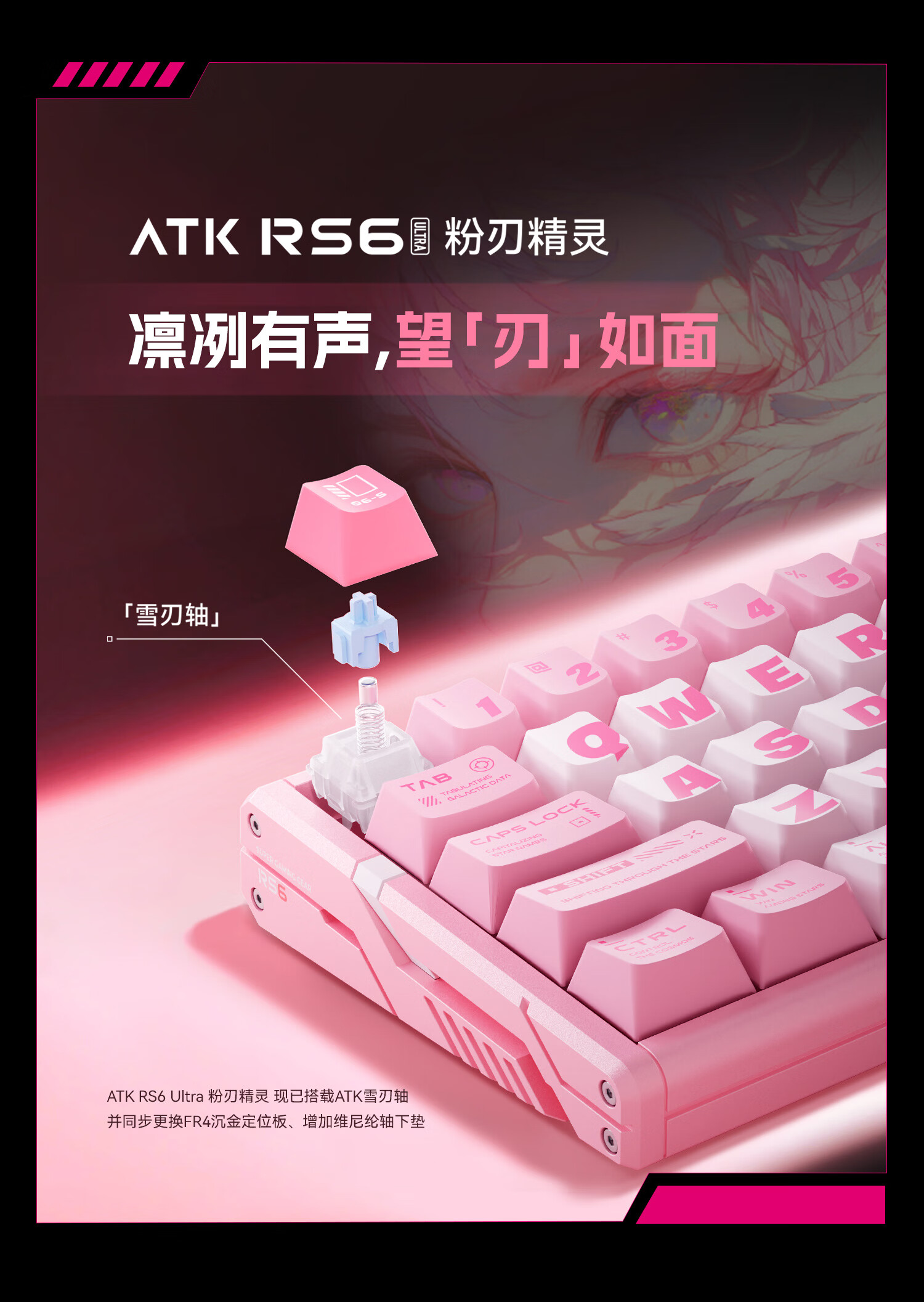ATK RS6磁轴键盘 客制化电竞游戏机械键盘有线热插拔铝坨坨无畏契约 RS6Ultra粉刃精灵 雪刃轴