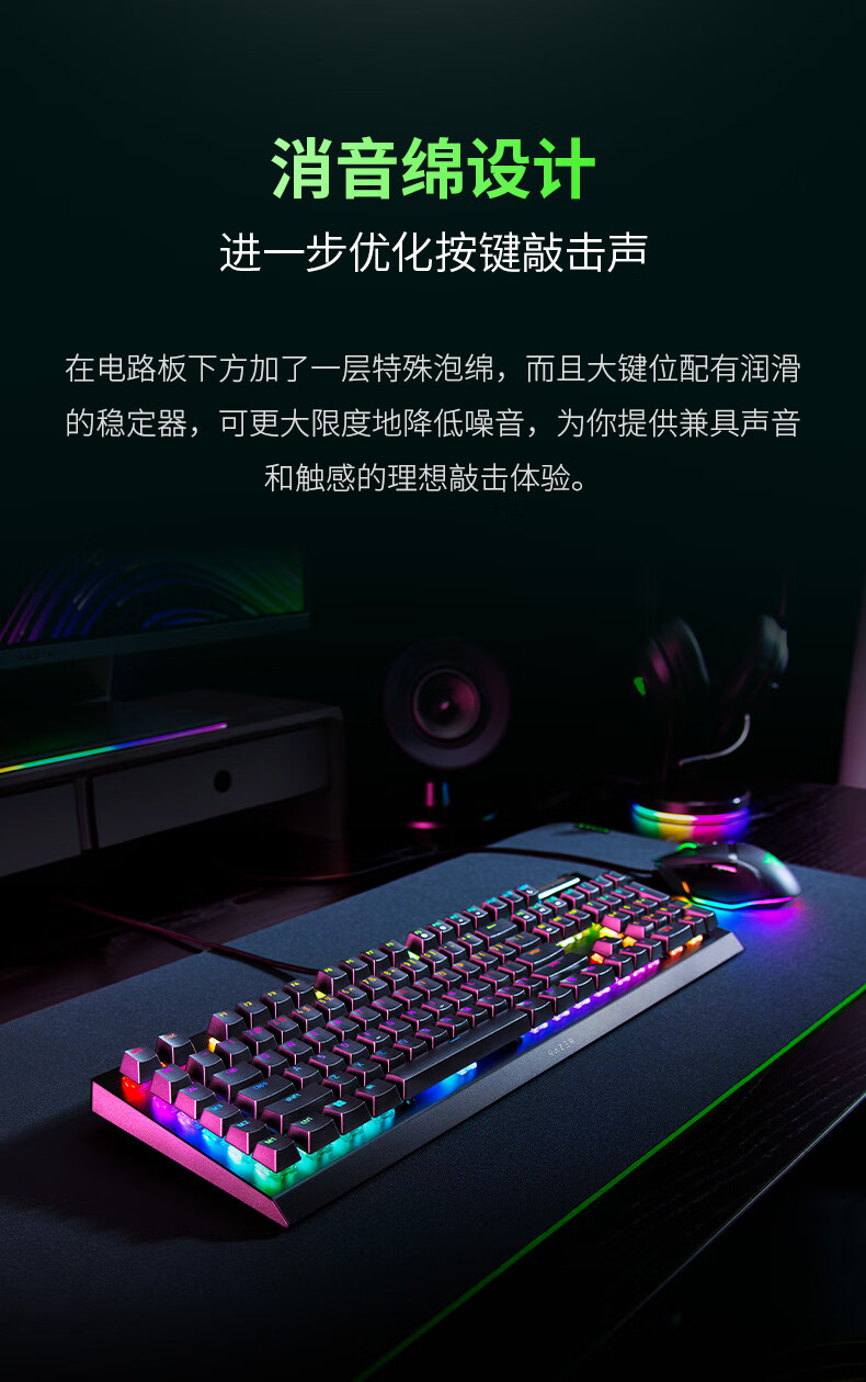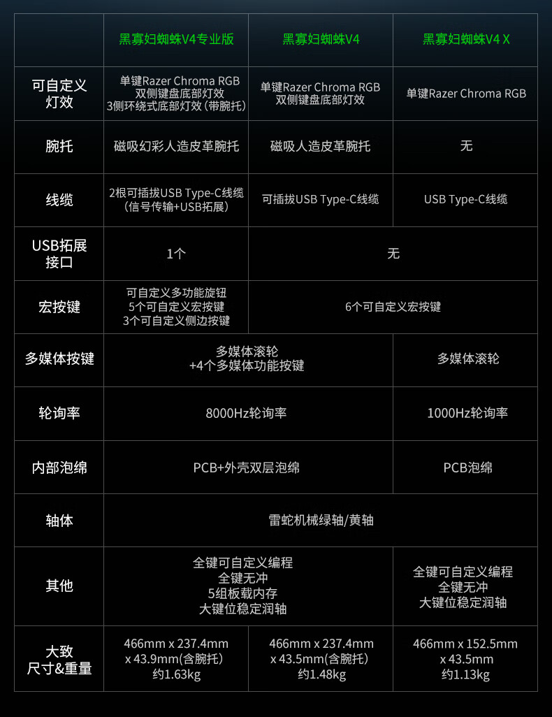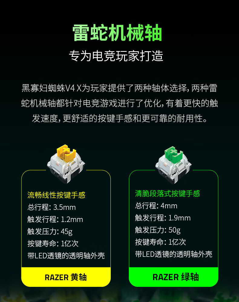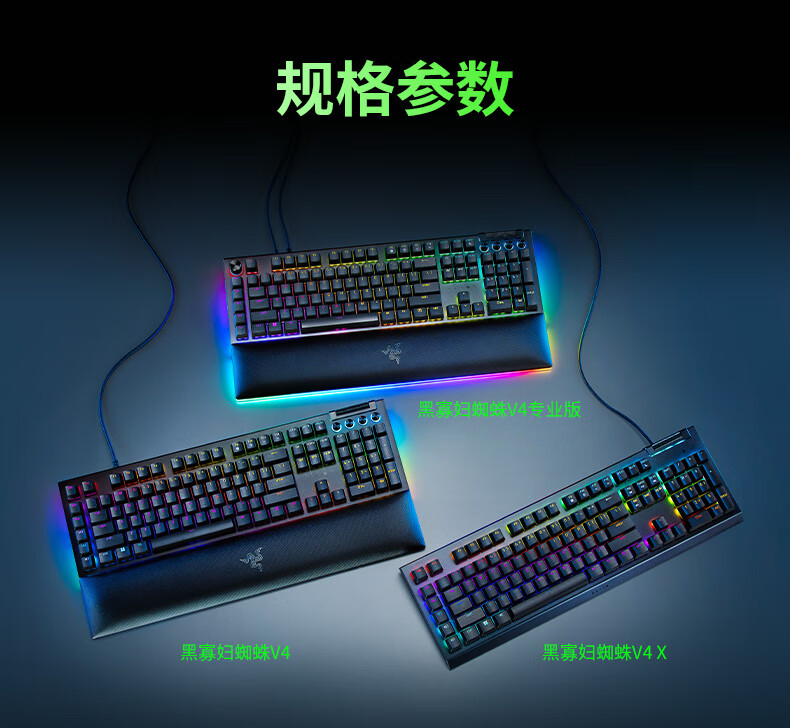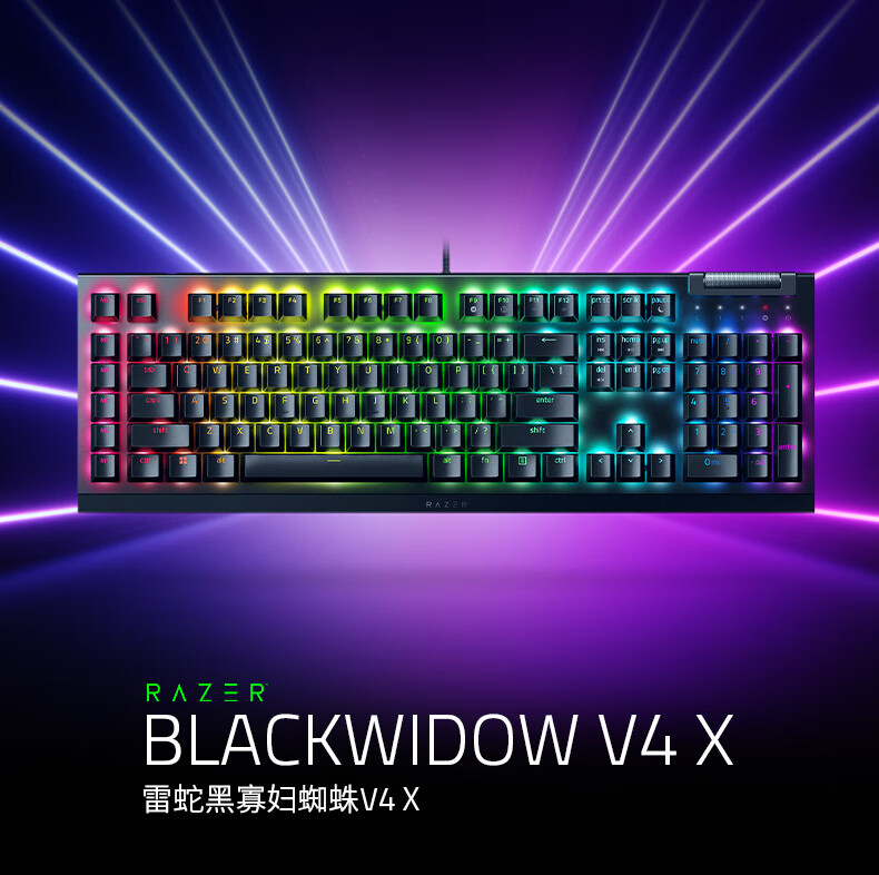 雷蛇(Razer)黑寡妇蜘蛛V4 X 游戏机械键盘 RGB背光 电竞游戏 绿轴