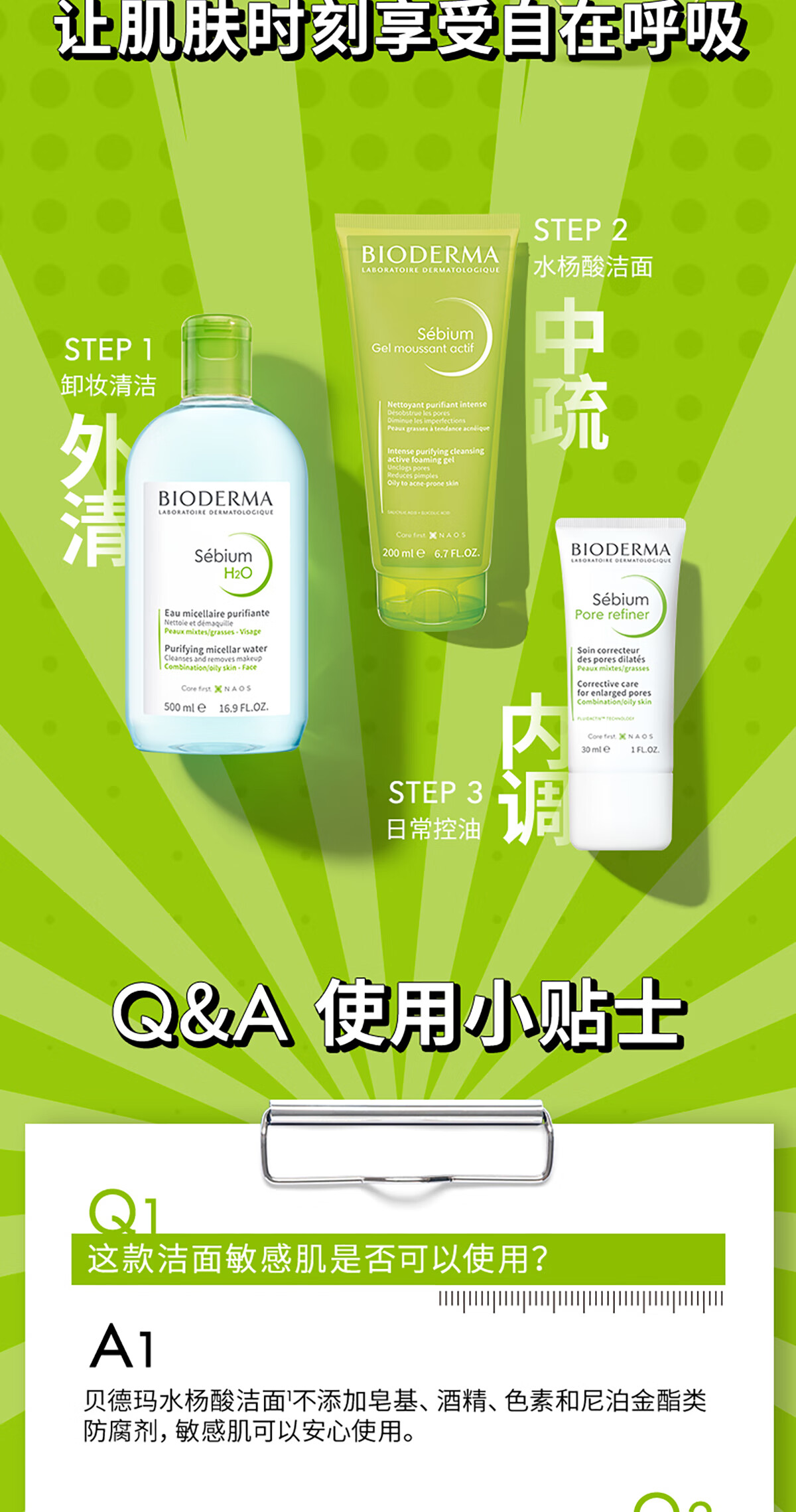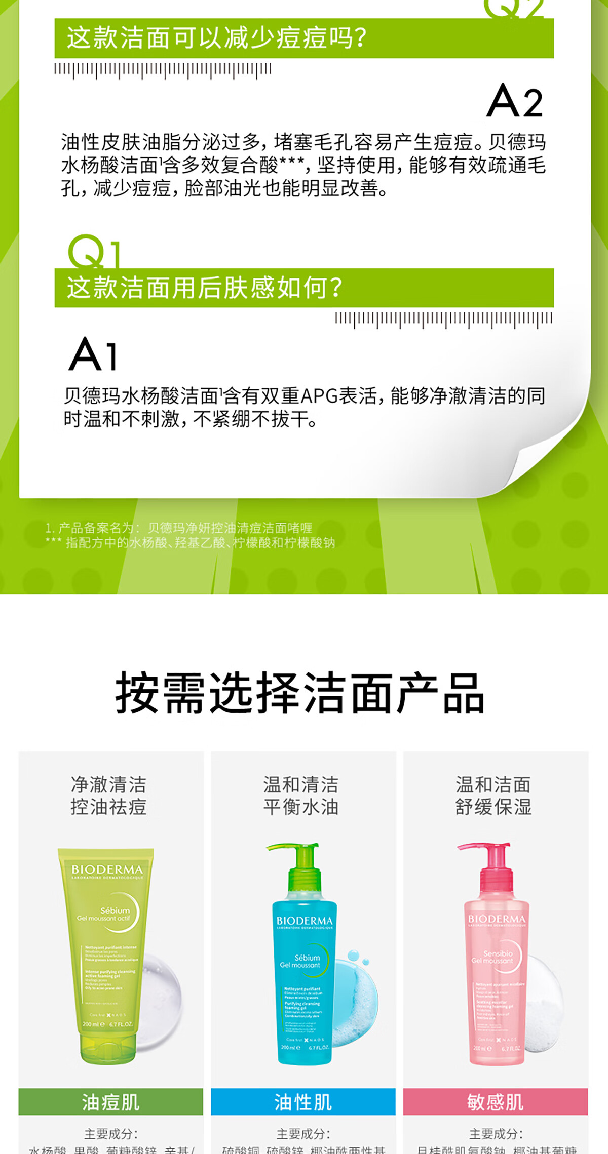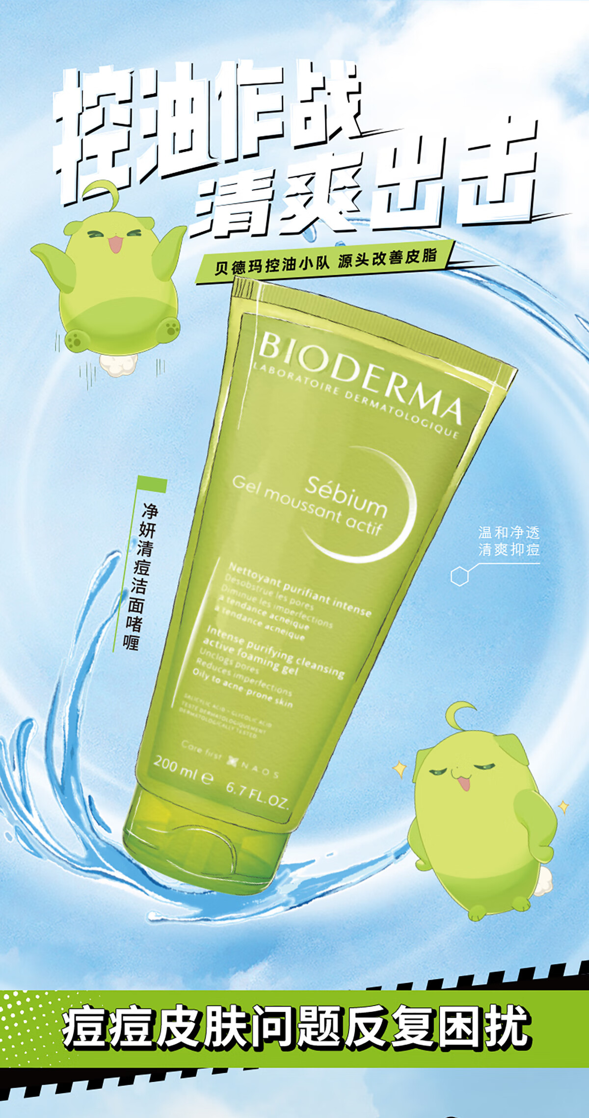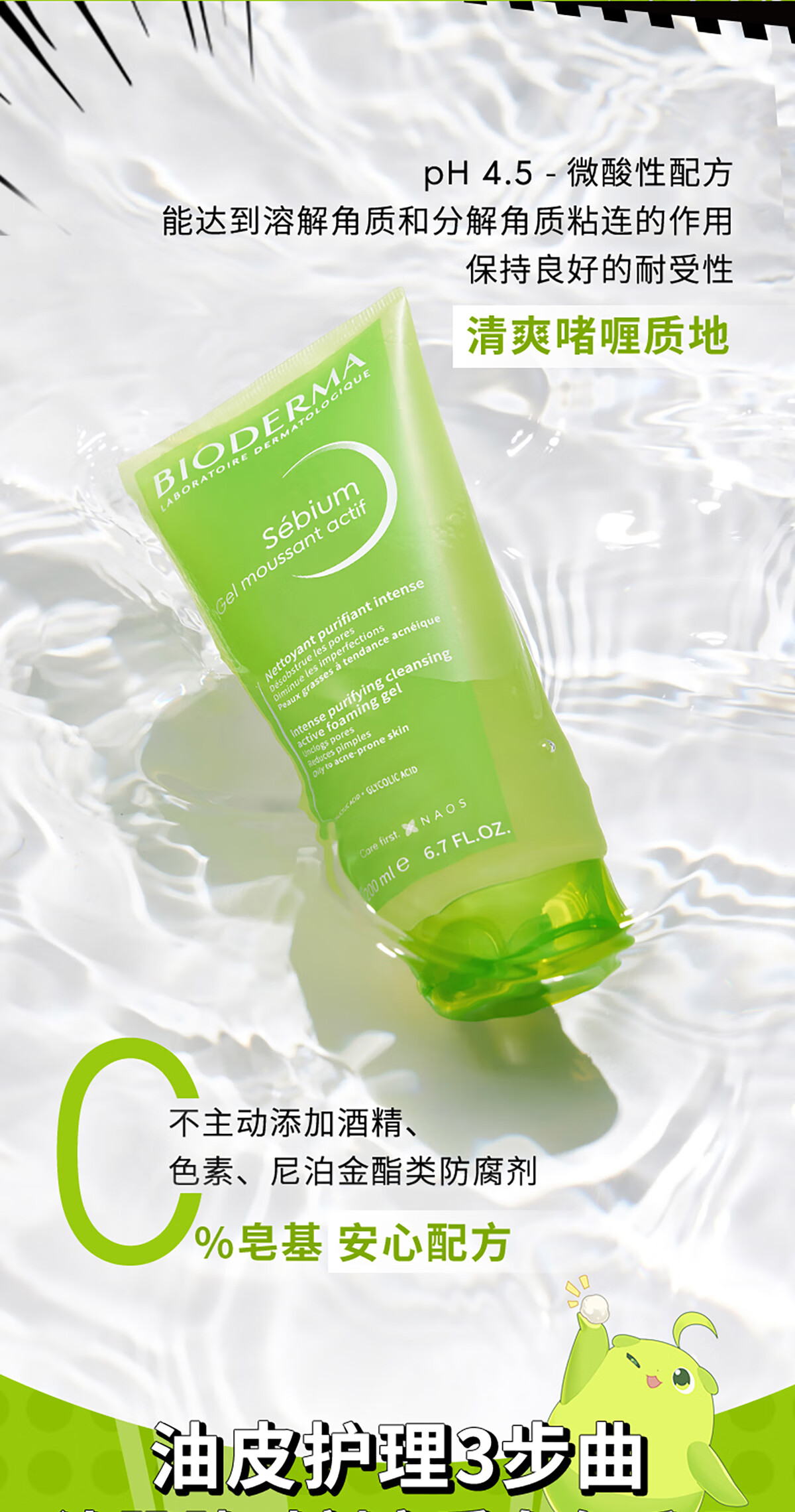 BIODERMA 【11.11】贝德玛水杨酸洁面啫喱控油清痘油皮洗面奶温和祛痘 200ml