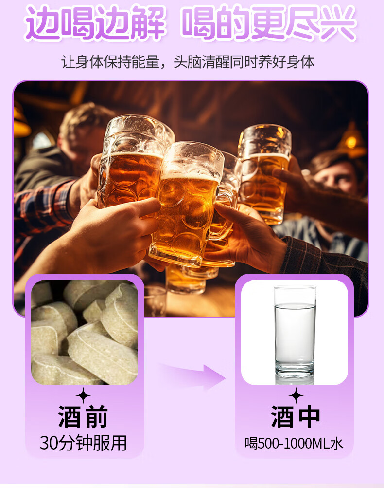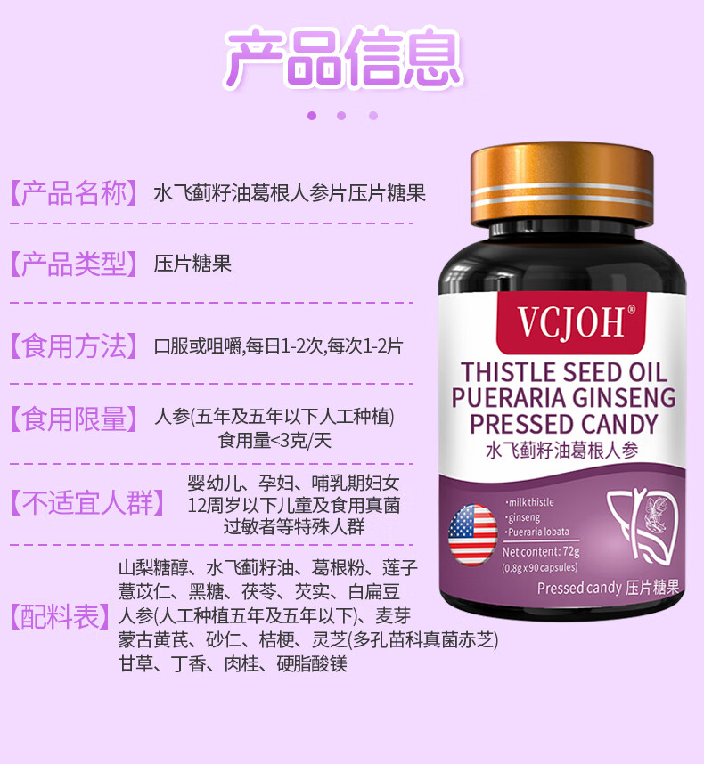 VCJOH美国品牌水飞蓟人参葛根养咀嚼片脂肪肝熬夜加班 3瓶【应酬熬夜常备】