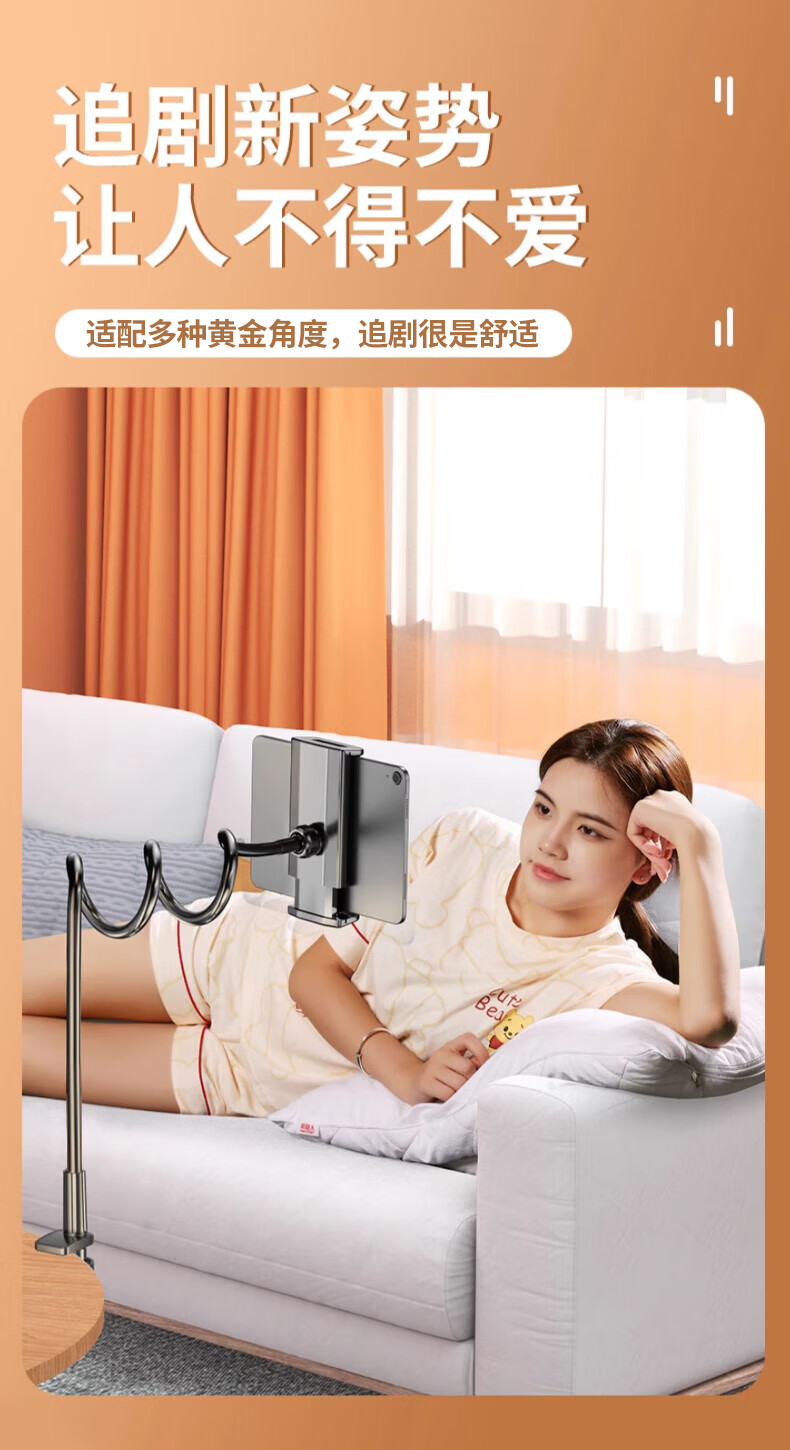 斯泰克【升级加长加粗】手机支架床头 ipad平板懒人支架桌面床上夹子网课直播电视神器调节适用苹果华为