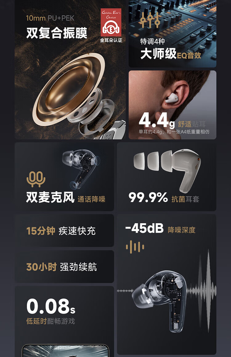 誉沐【顶配双喇叭|音质0差评】挂耳式开放不入耳无线骨传导运动蓝牙耳机长续航高音质半入耳降噪跑步 高雅黑|4麦高清通话-60h续航