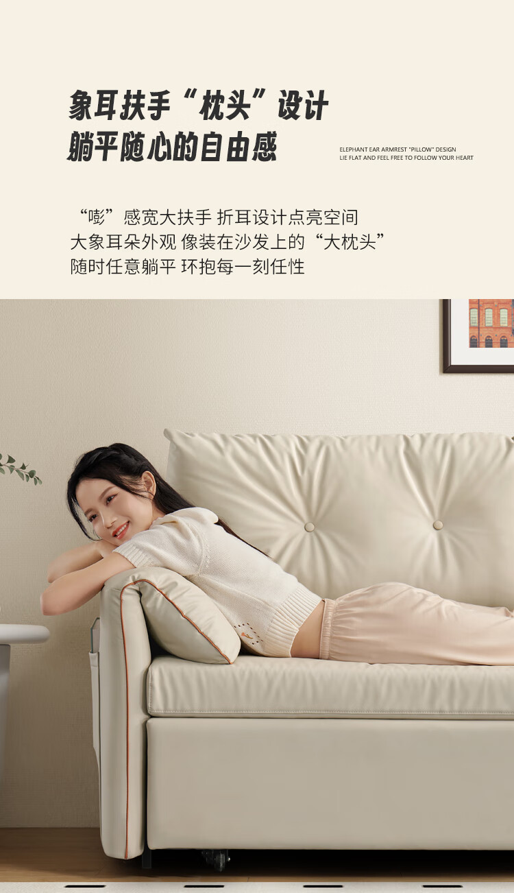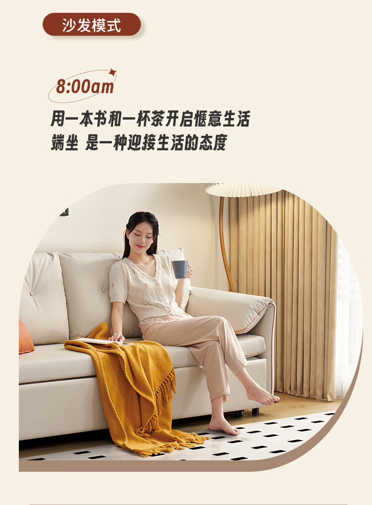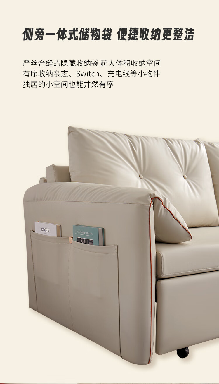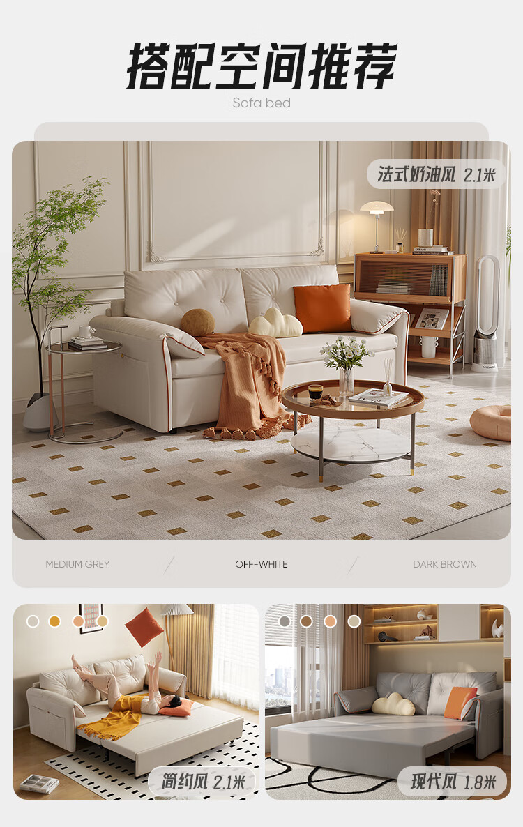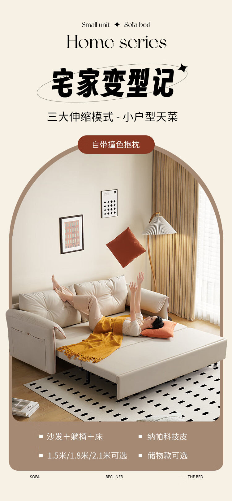 芝华仕(CHEERS)布艺沙发床一体两用客厅2025新小户型直排芝华士6305白双