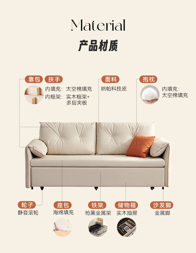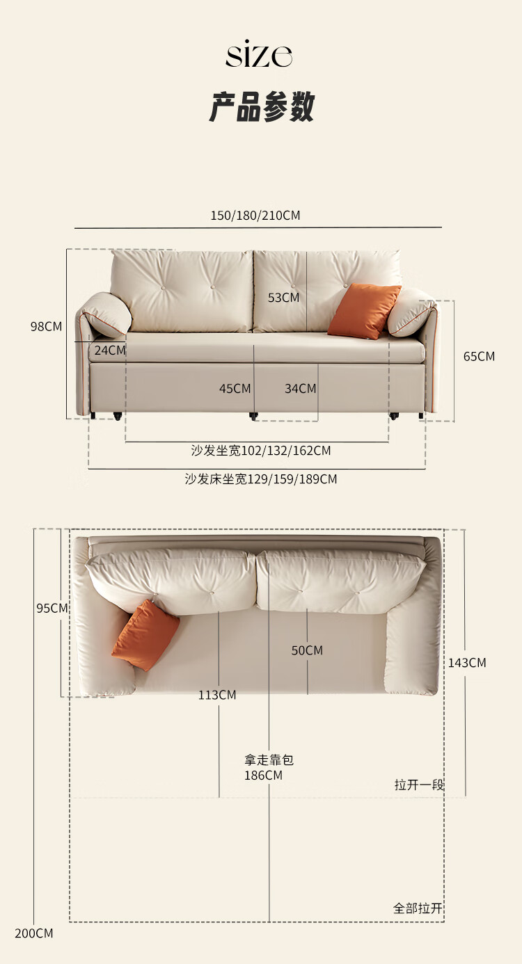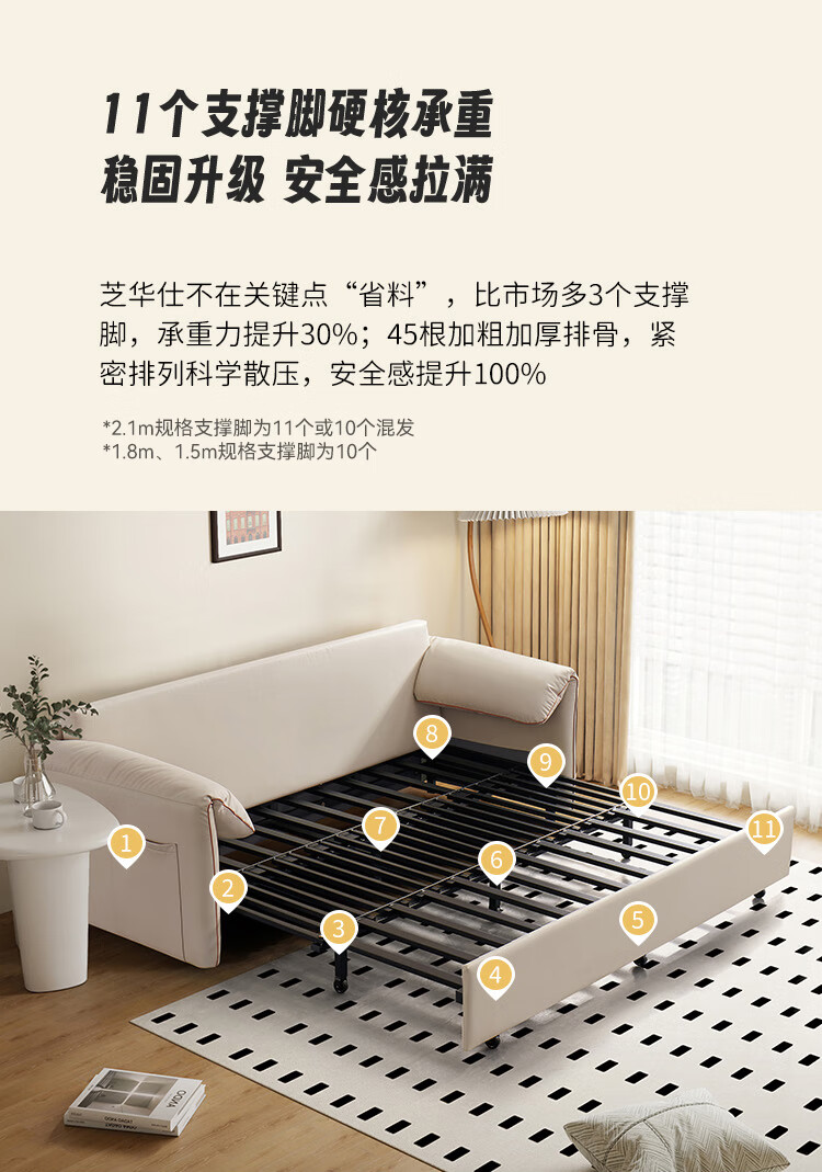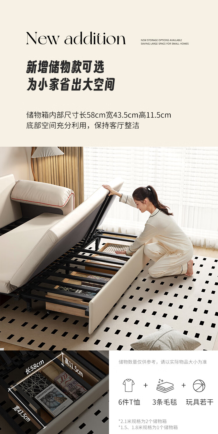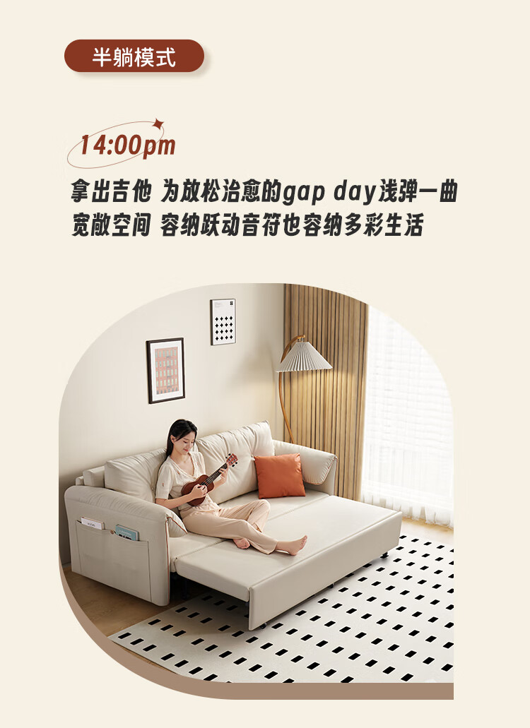 芝华仕(CHEERS)布艺沙发床一体两用客厅2025新小户型直排芝华士6305白双