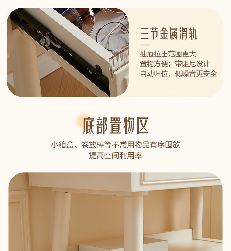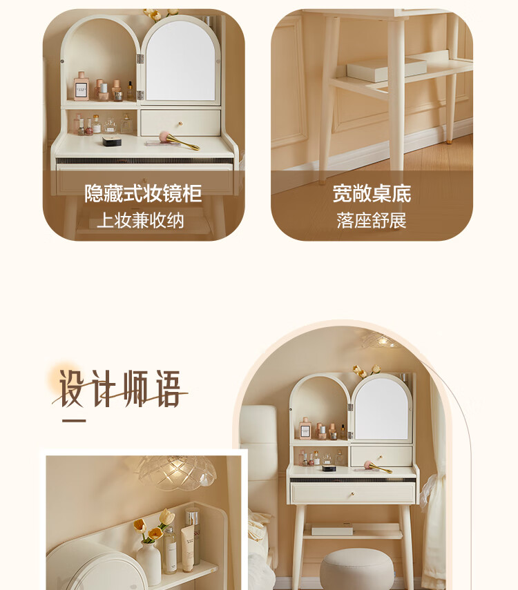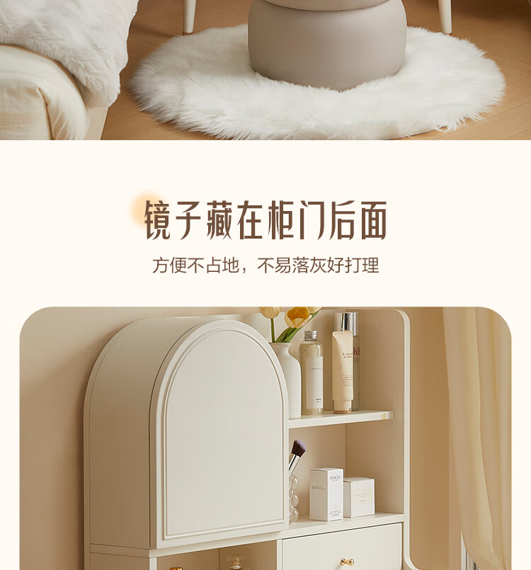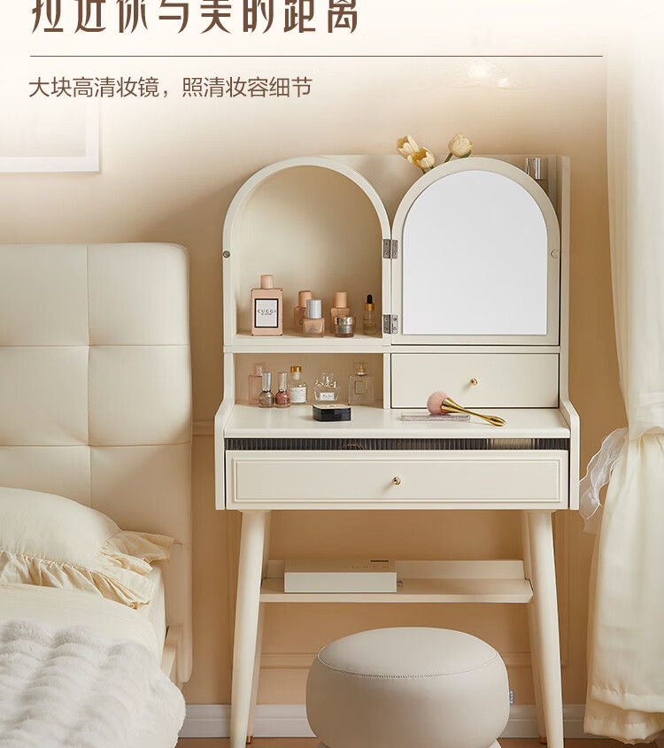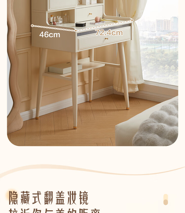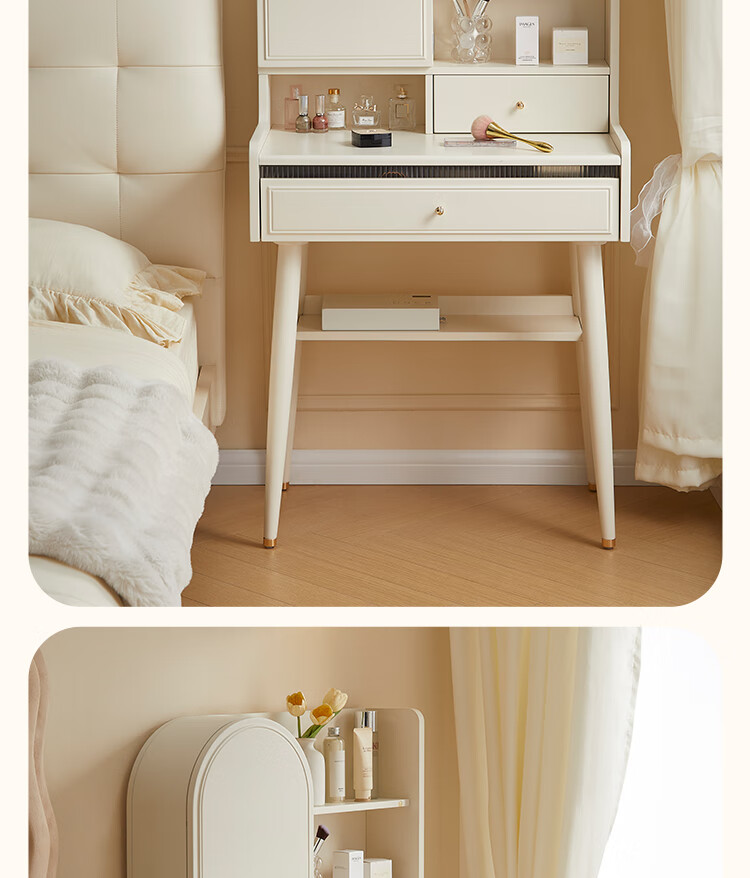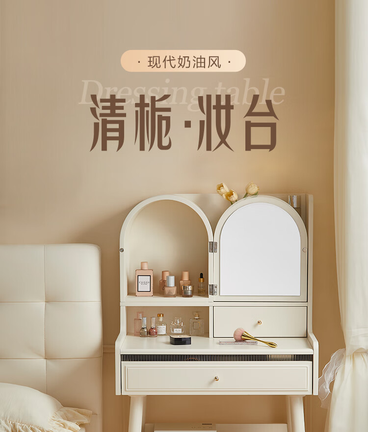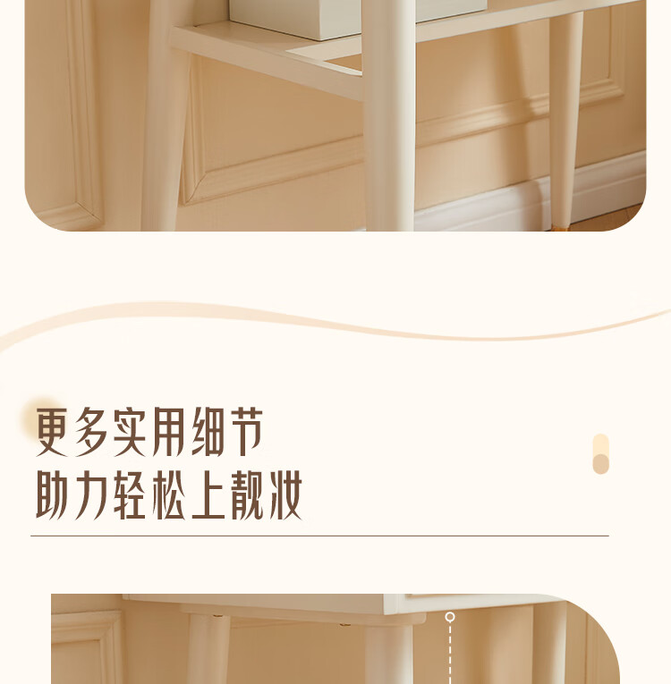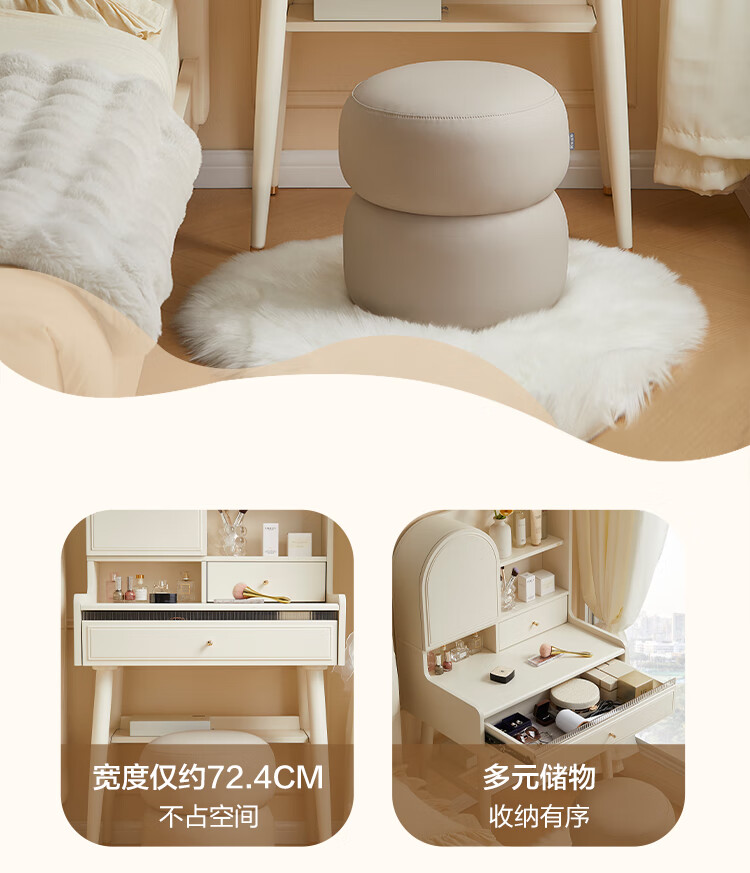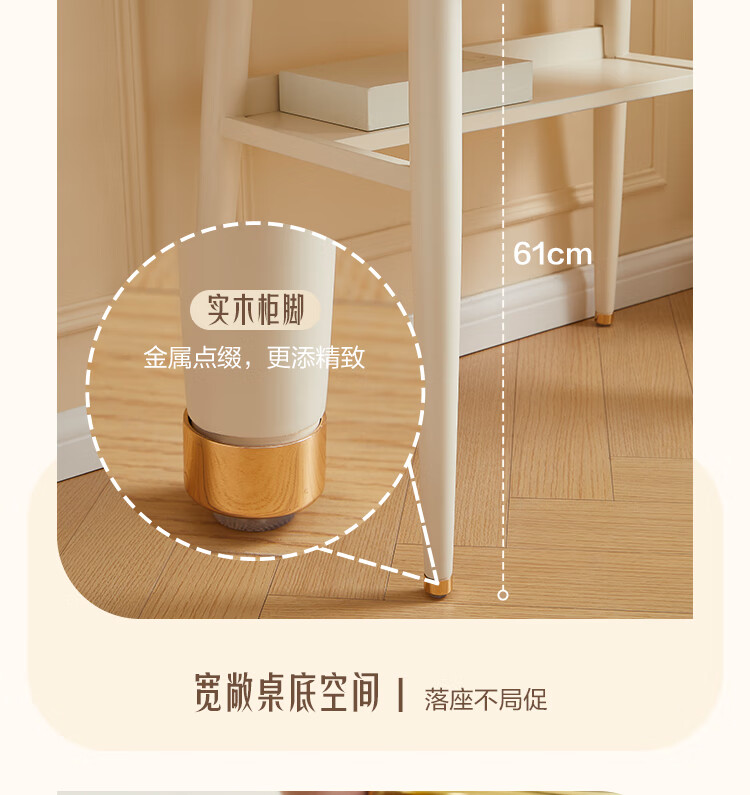 全友家居 奶油风梳妆台置物架实木脚小户型卧室床边收纳置物桌化妆台