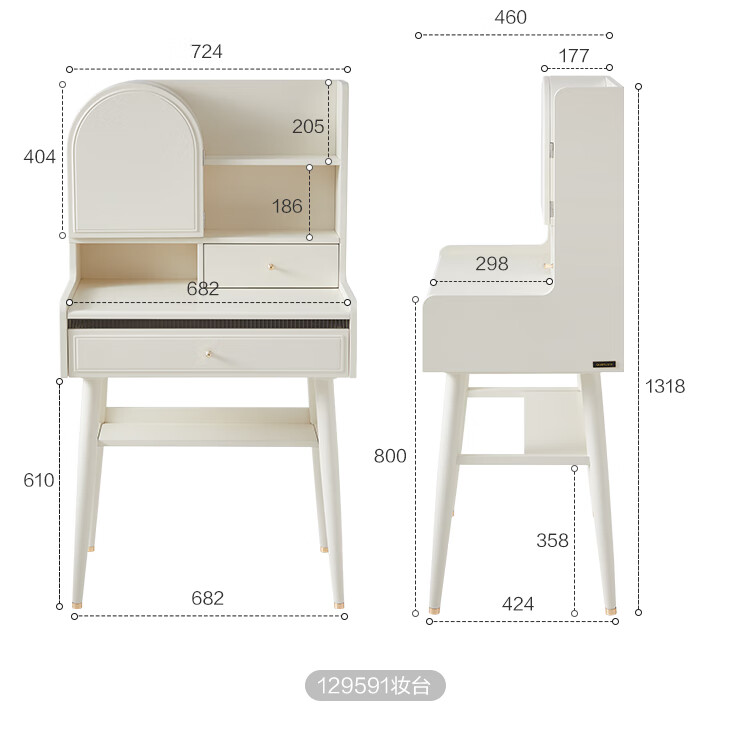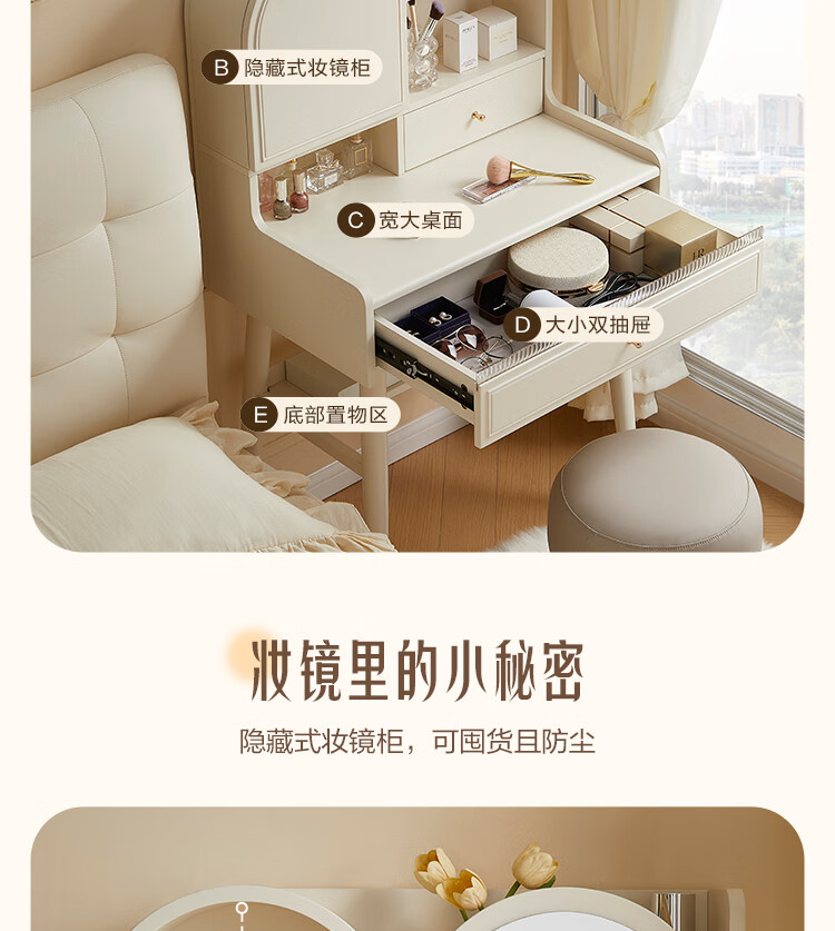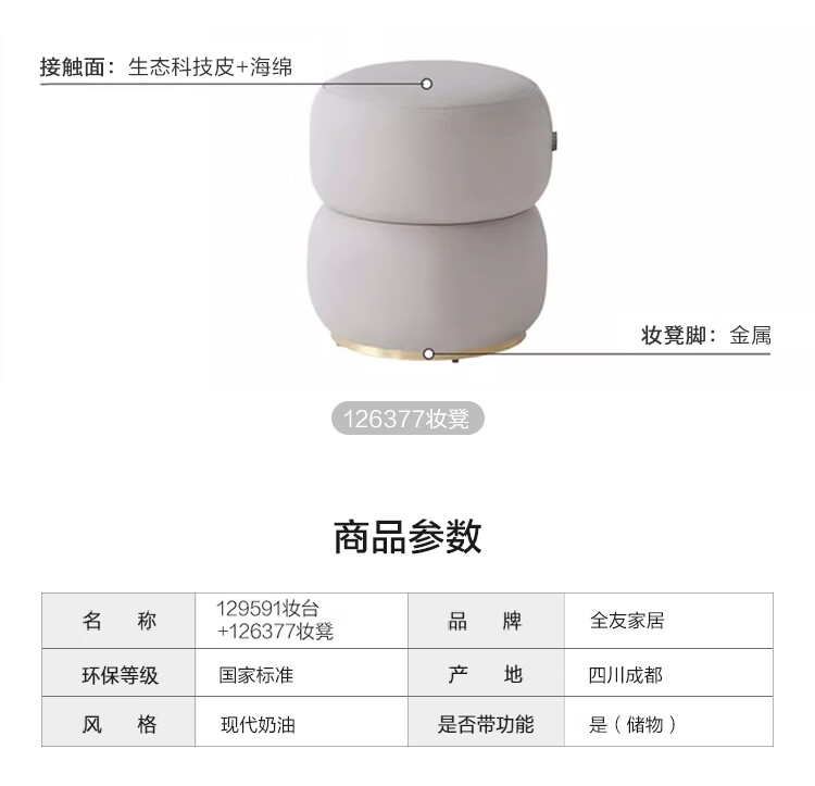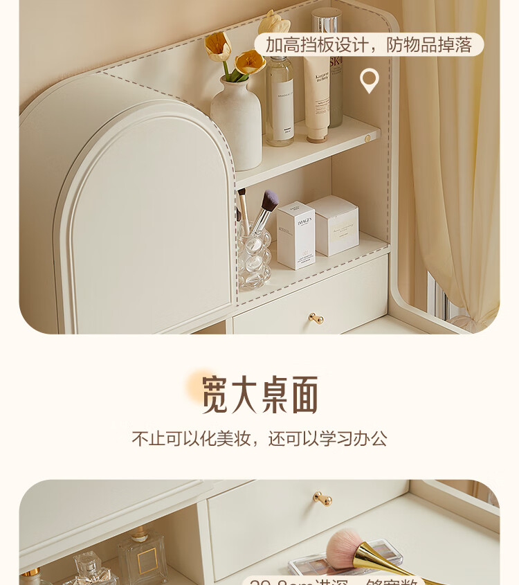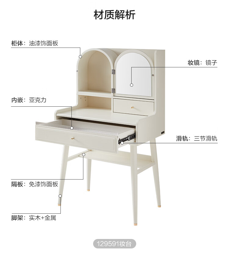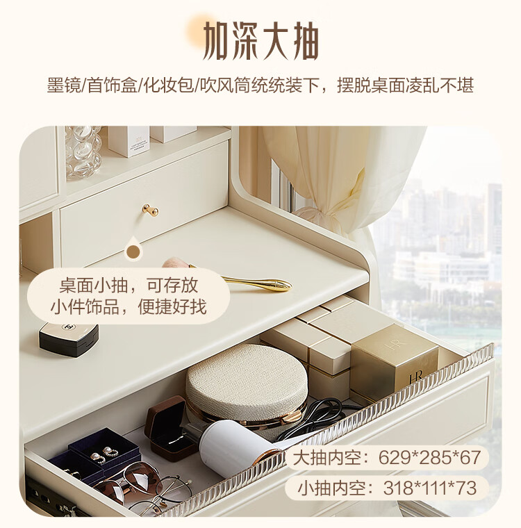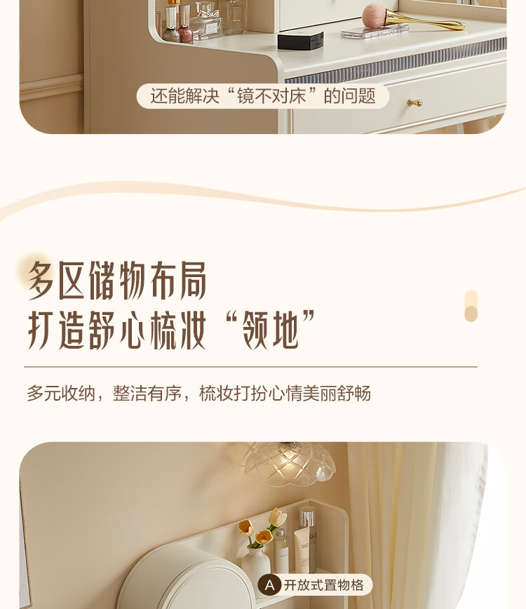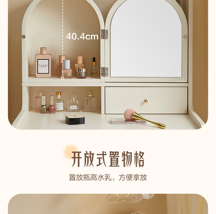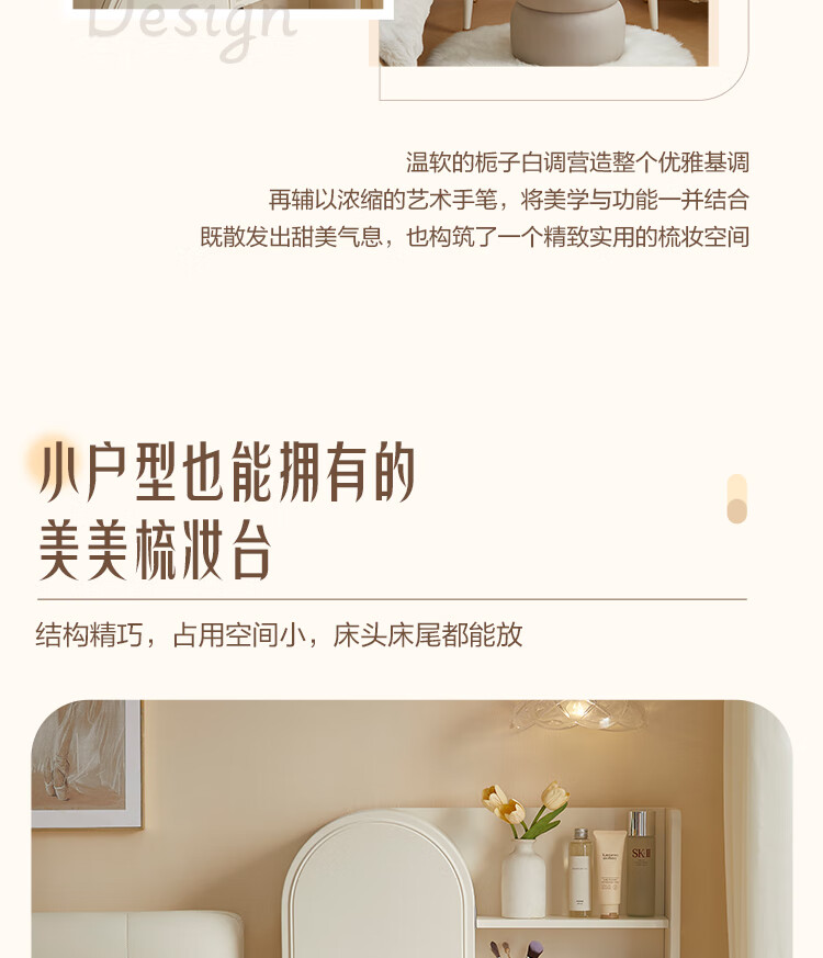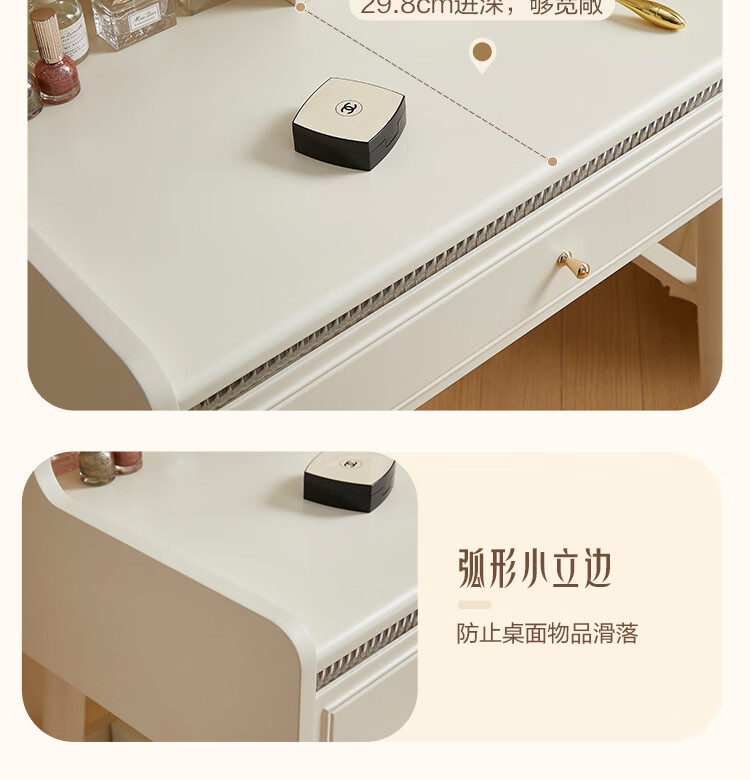 全友家居 奶油风梳妆台置物架实木脚小户型卧室床边收纳置物桌化妆台