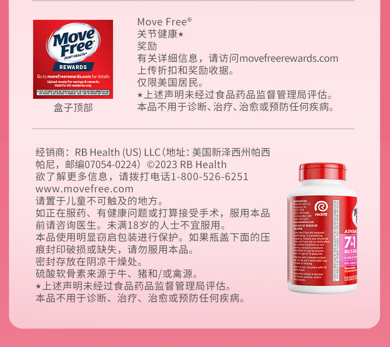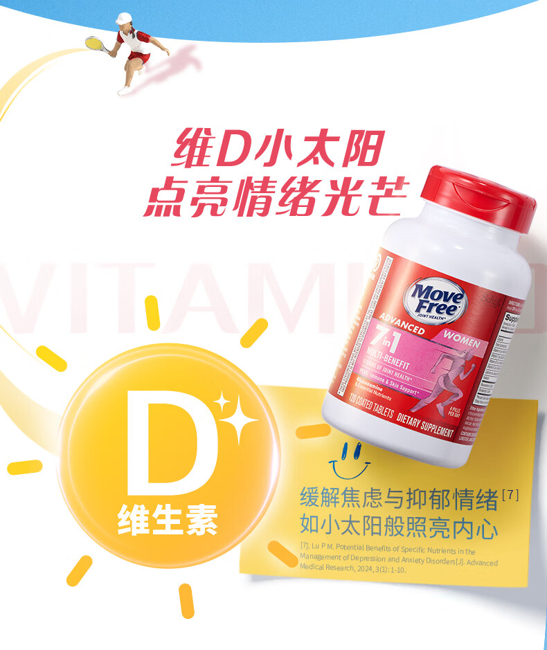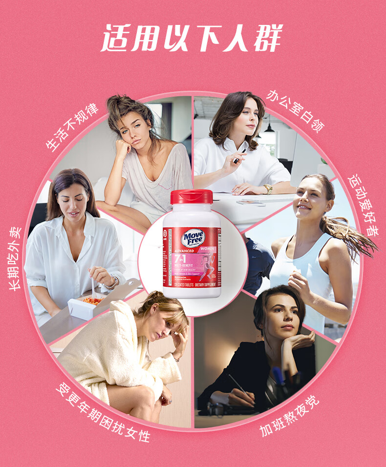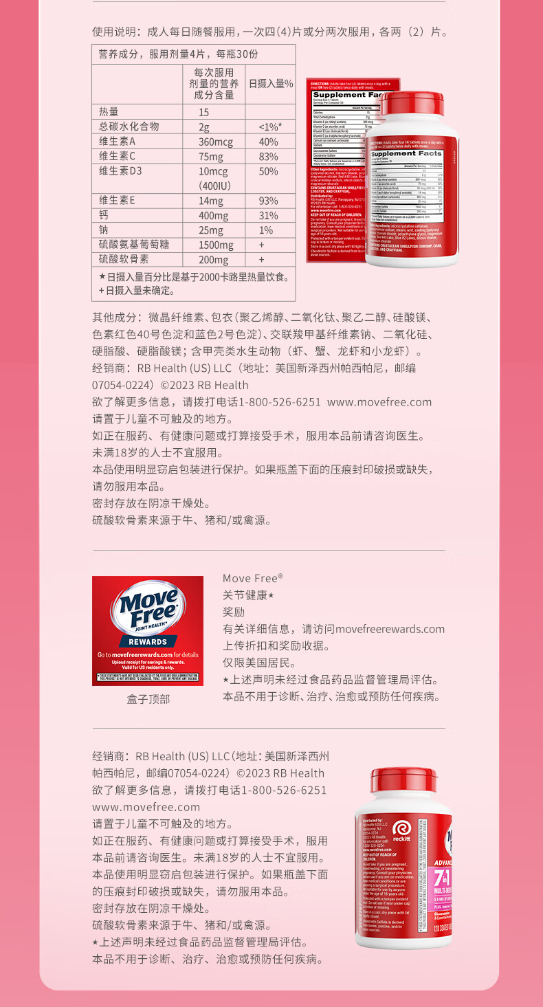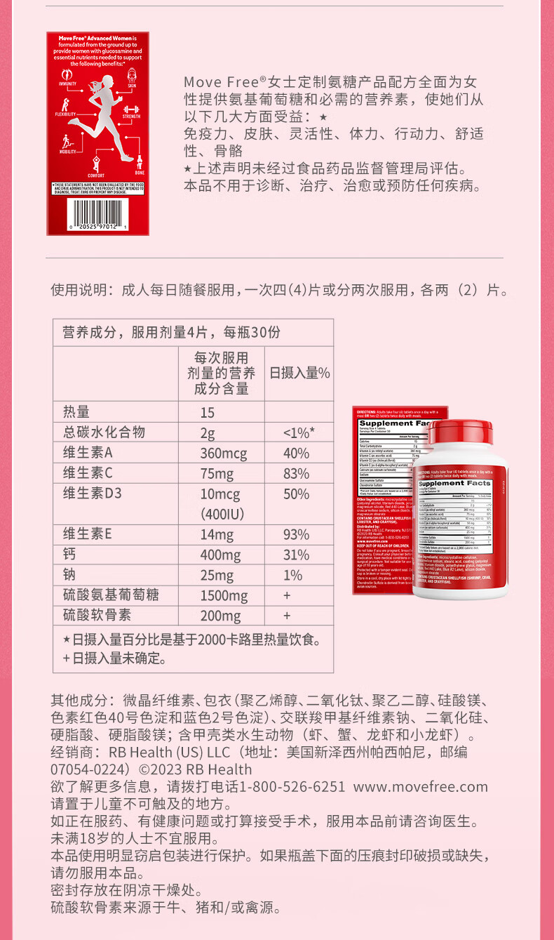 益节Move Free 7合1 女士 氨糖软骨素钙片120粒 维骨力 成人 美国进口 【女士氨糖】软硬骨同补 提气色
