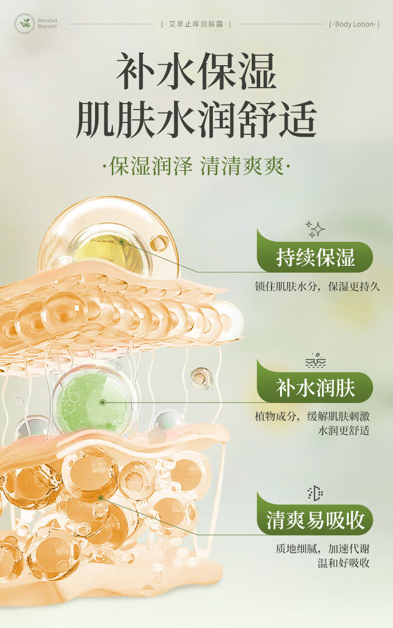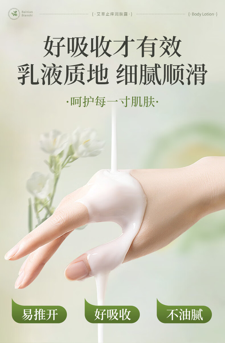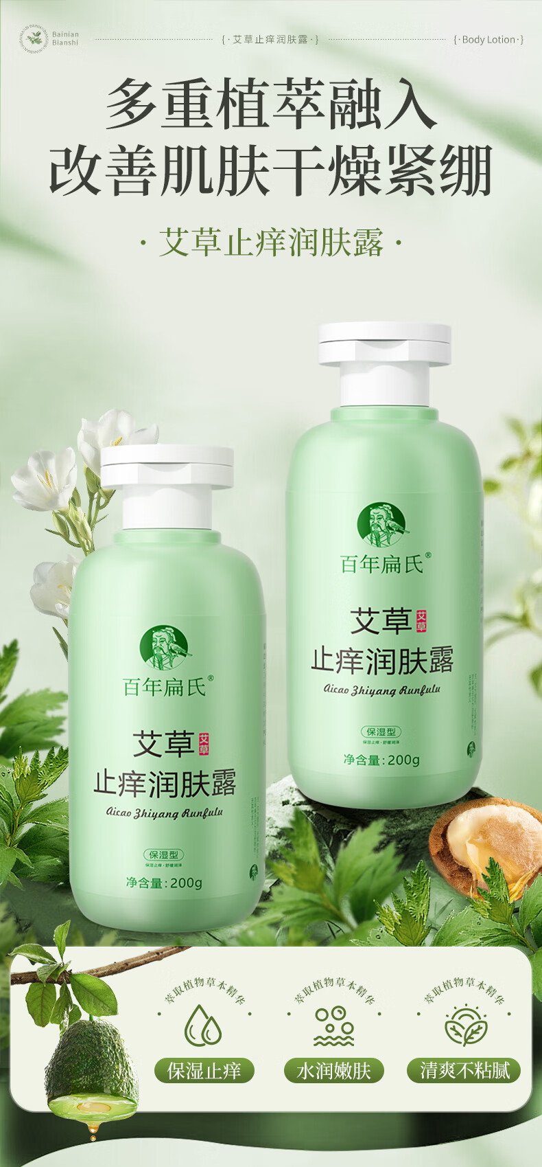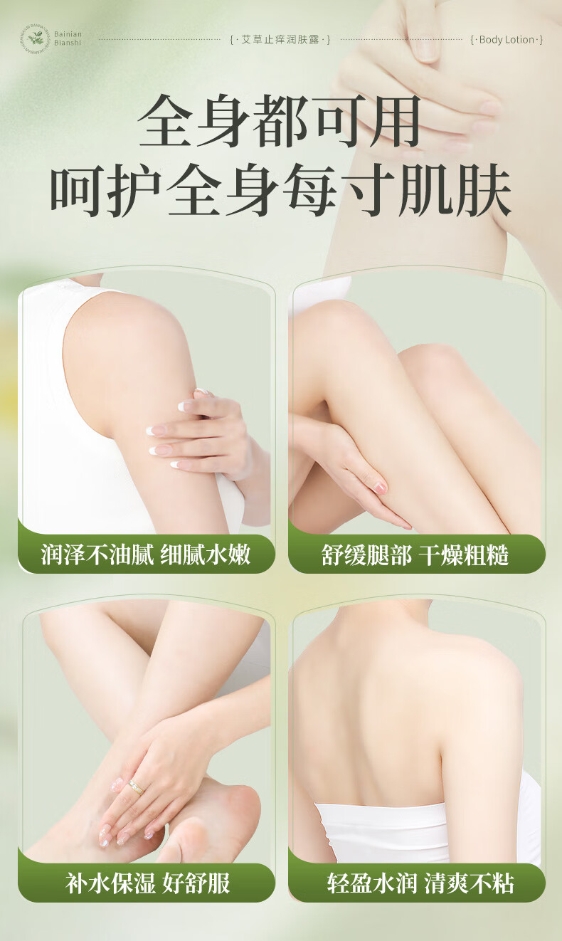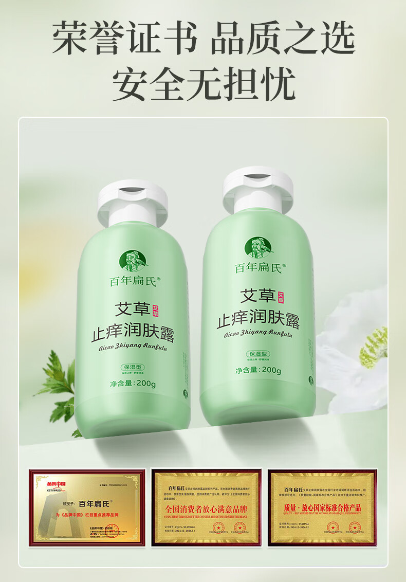 百年扁氏艾草止痒润肤露轻盈水润保湿干痒滋润全身皮肤干燥起皮补水 止痒润肤露2瓶装