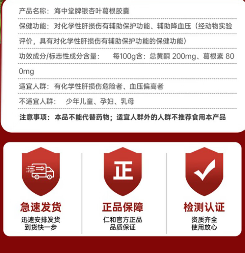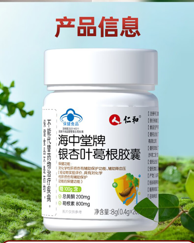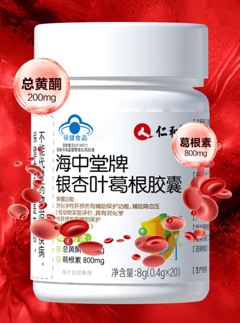 仁和海中堂银杏叶葛根胶囊 辅助保护肝损伤降血压成人中老年保健品2瓶
