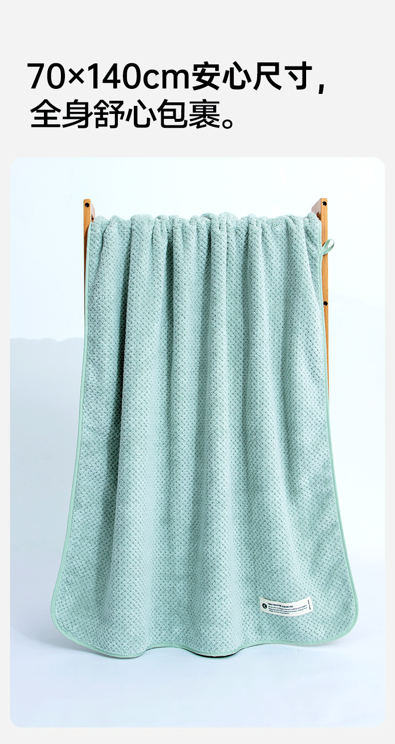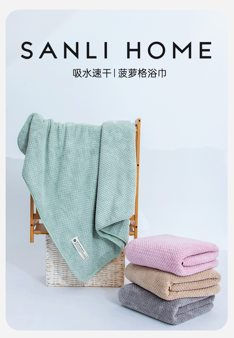 三利浴巾 A类珊瑚绒柔软吸水菠萝格浴巾干裹巾 70*140cm 咖色