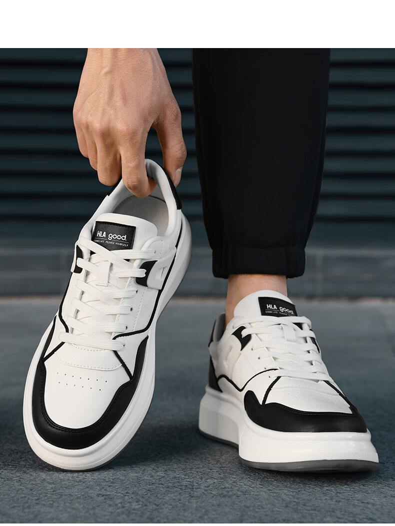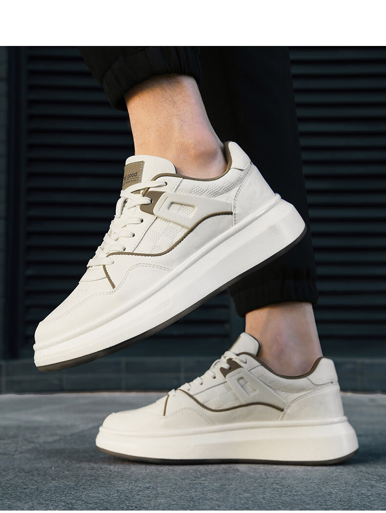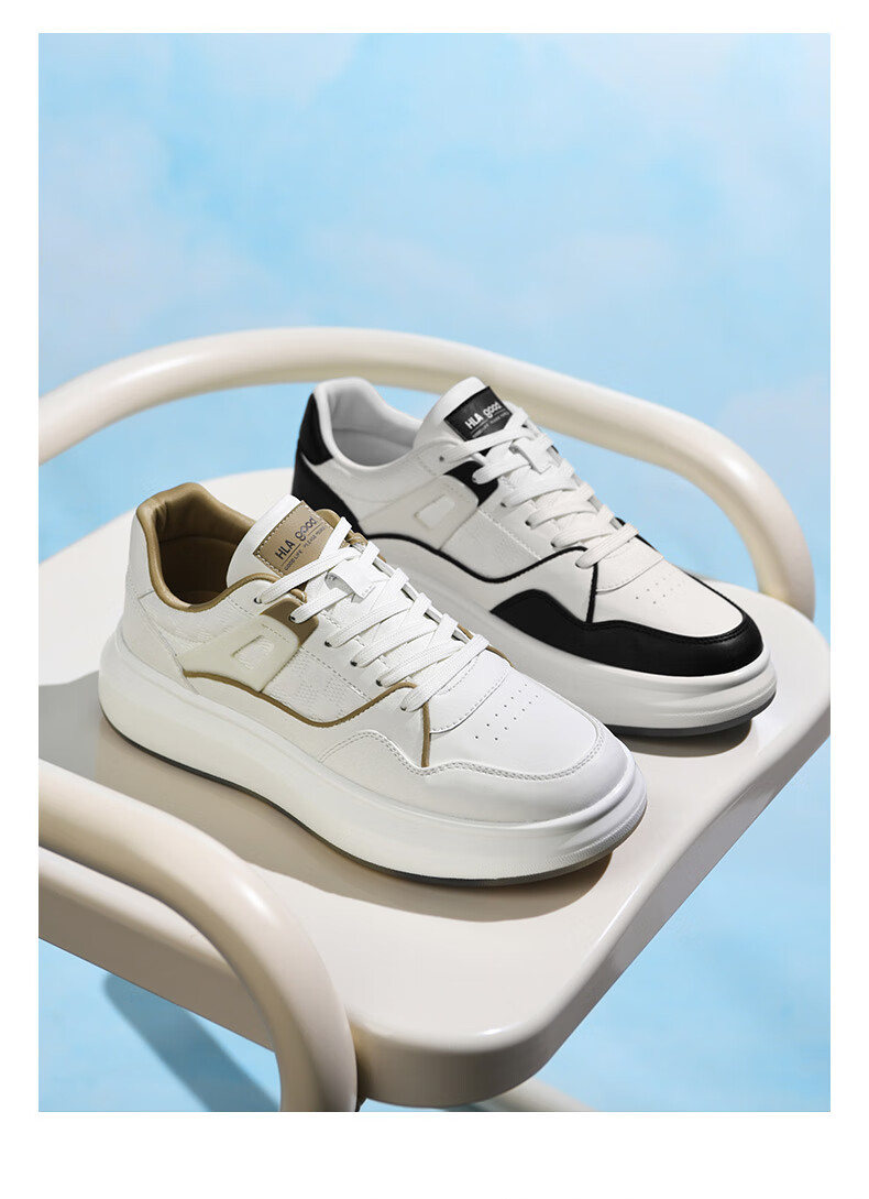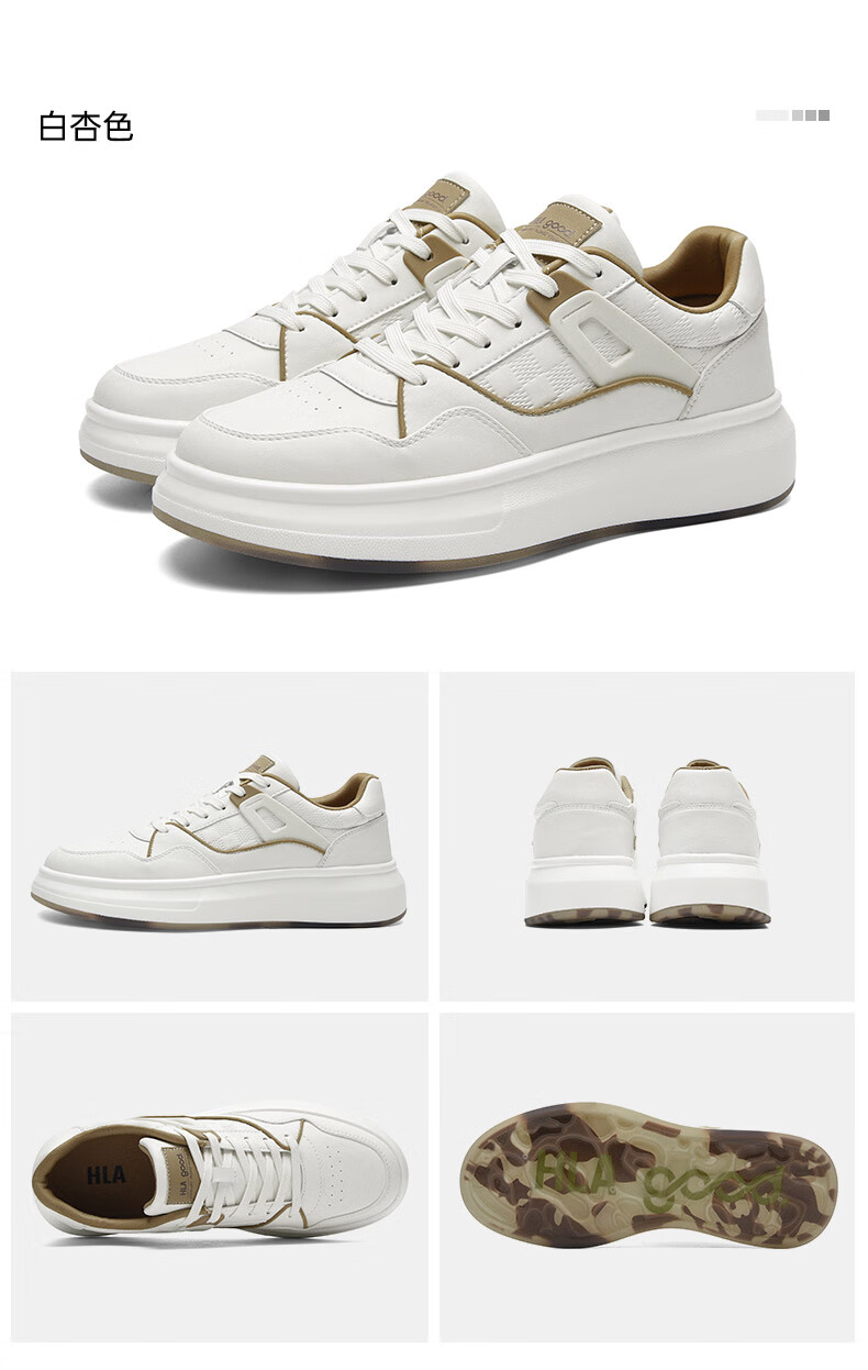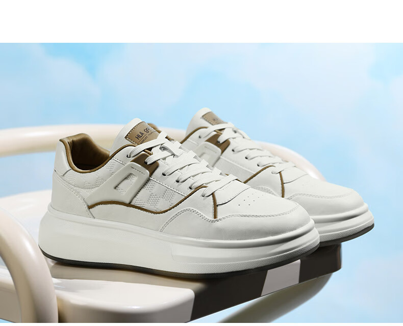 海澜之家HLA男鞋透气休闲板鞋增高小白鞋子男HAABXM2DFH181 白杏色42