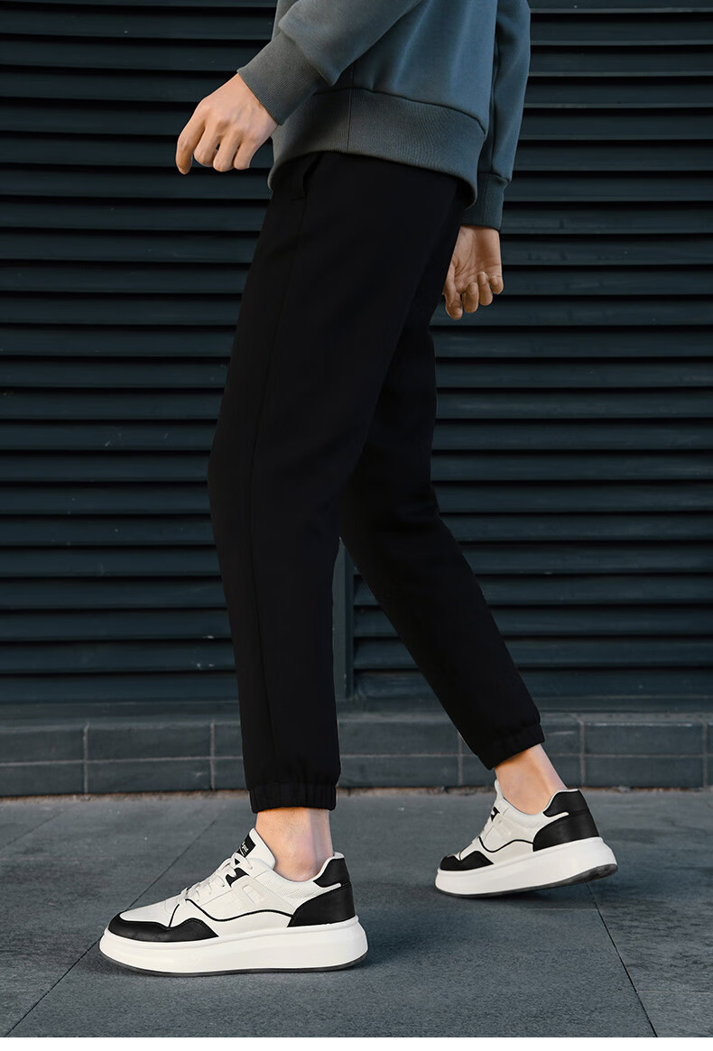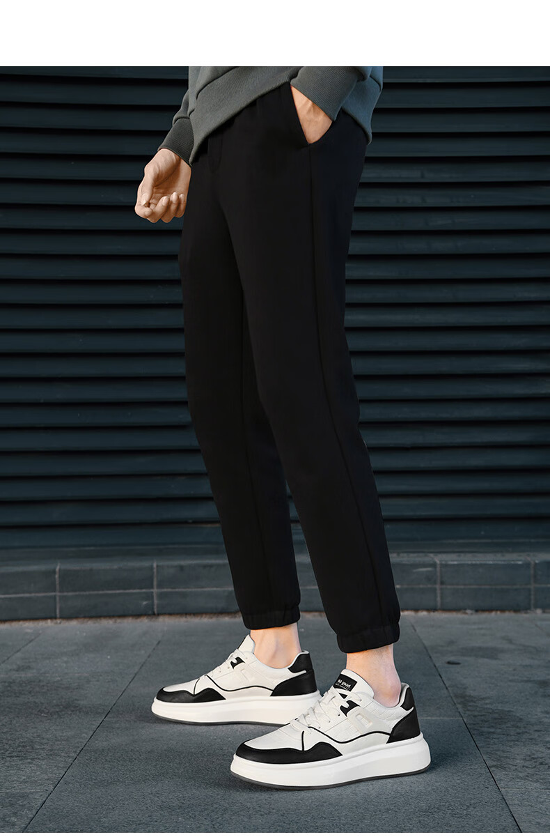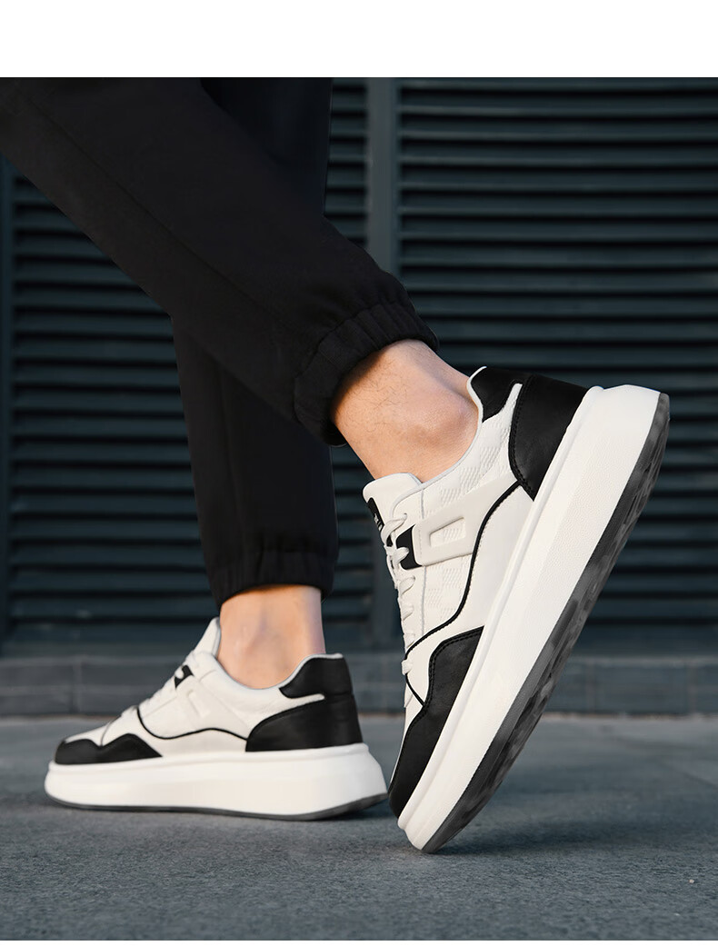 轻奢潮流男鞋2025秋季新款网面防滑潮流运动鞋男士百搭跑步鞋子男 NK666黑白【皮面款】 42