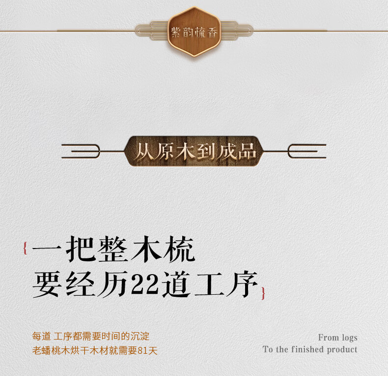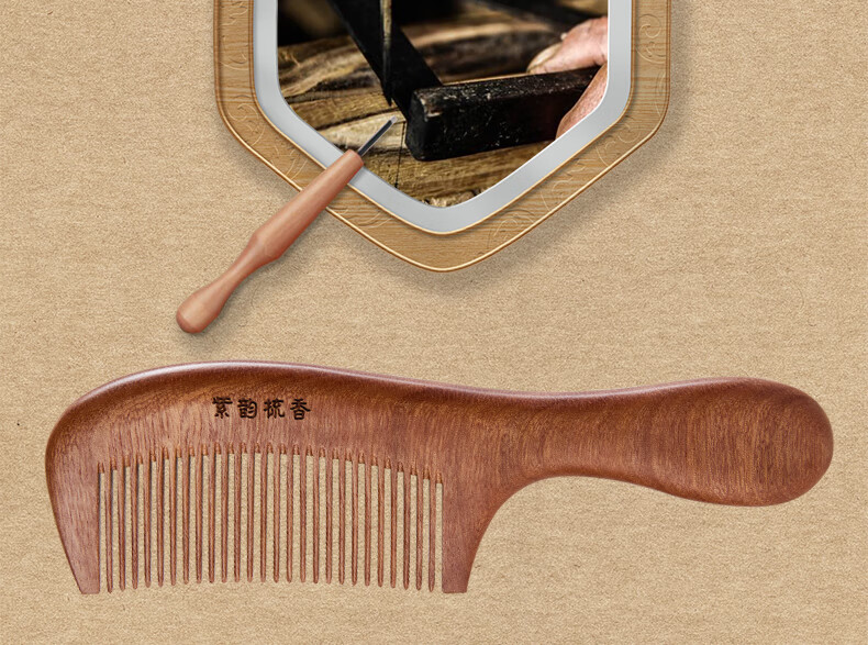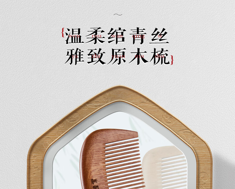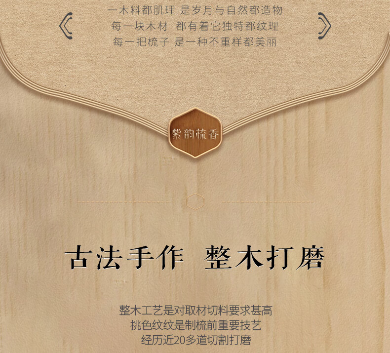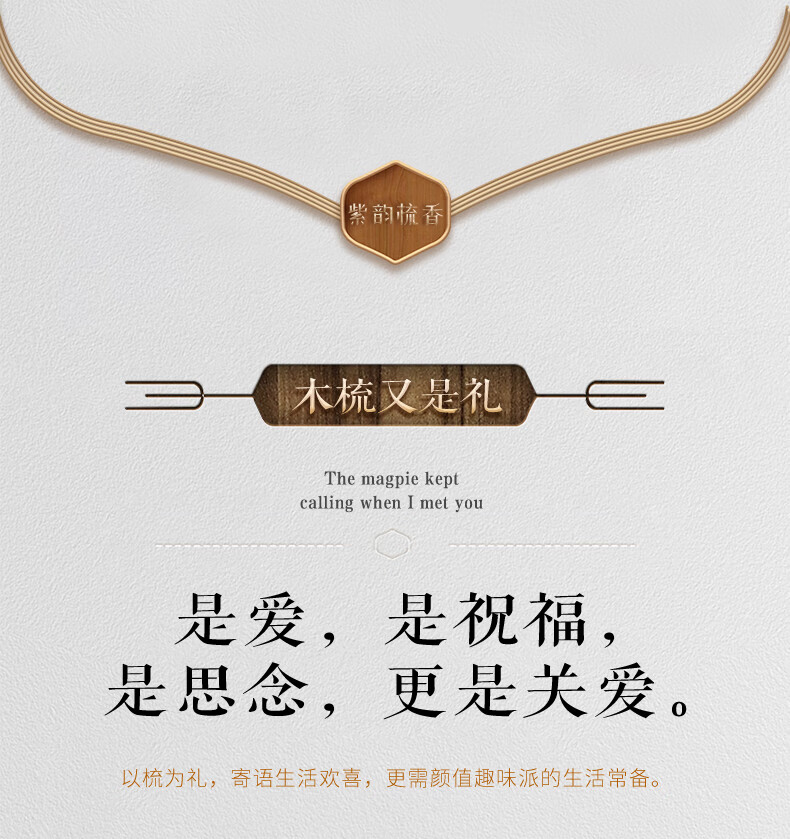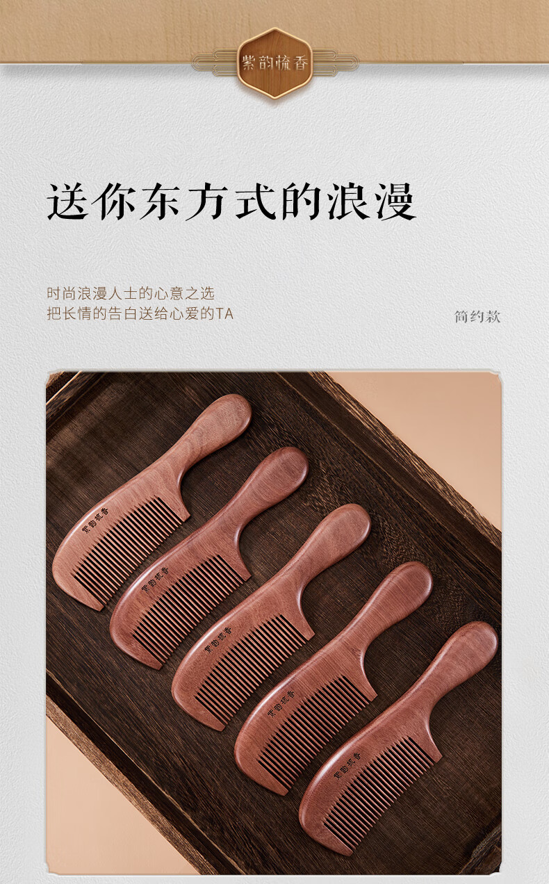 紫韵梳香密齿整料樱桃木梳子女士男士三八妇女节母亲节礼物送妈妈M-49