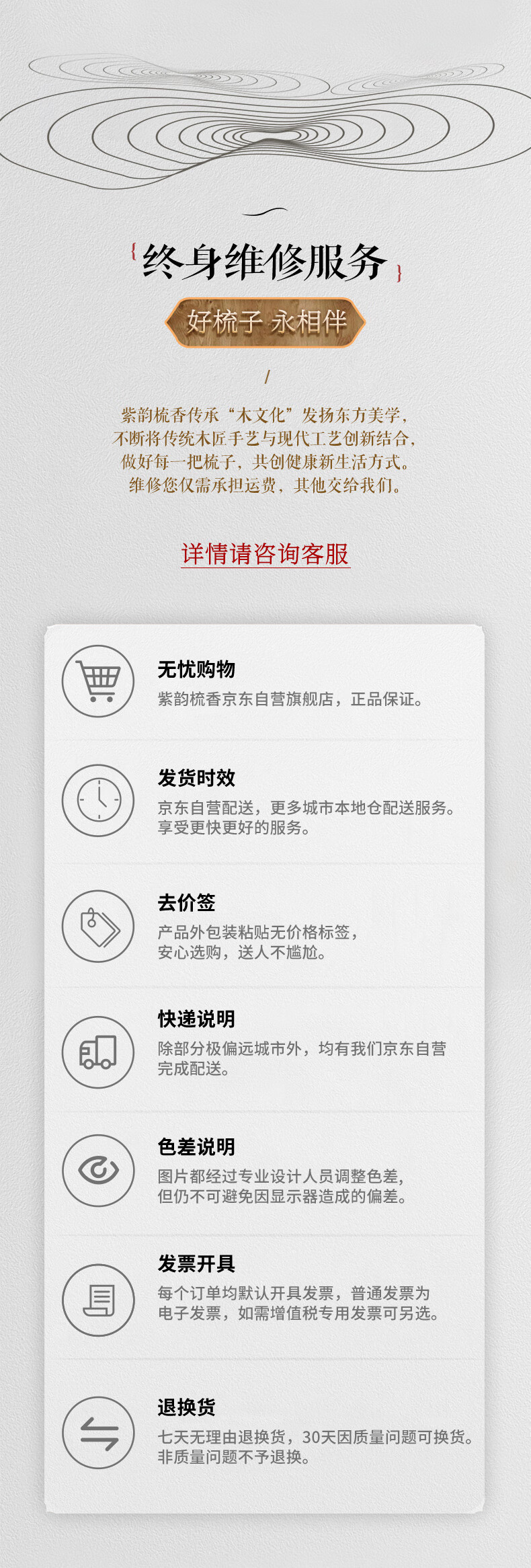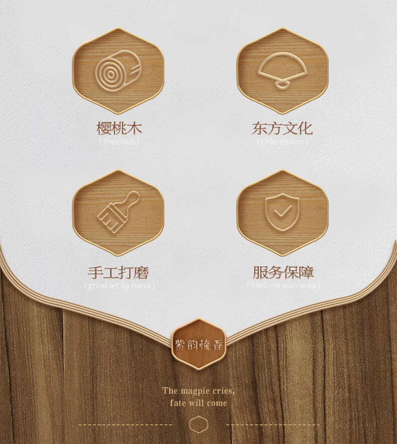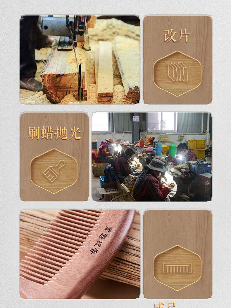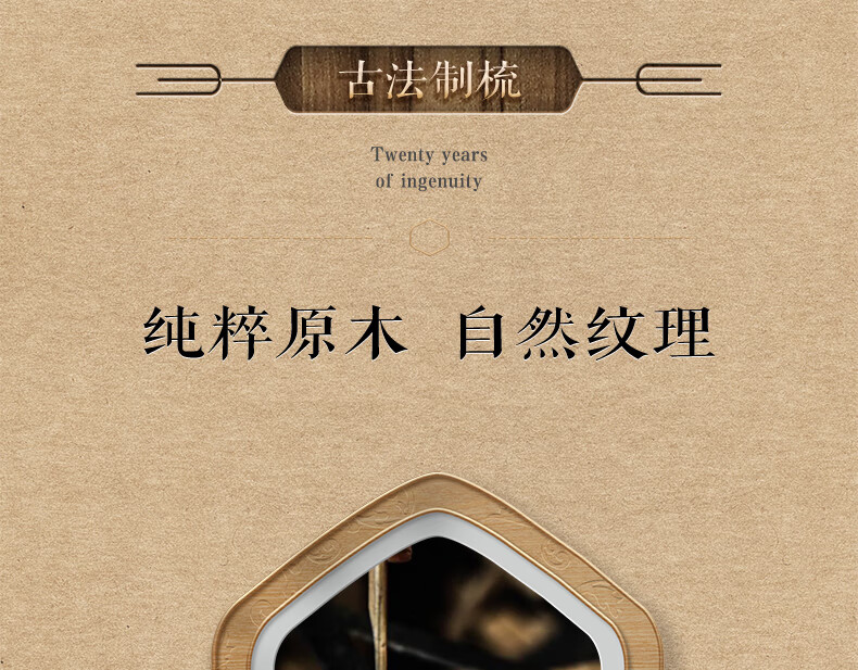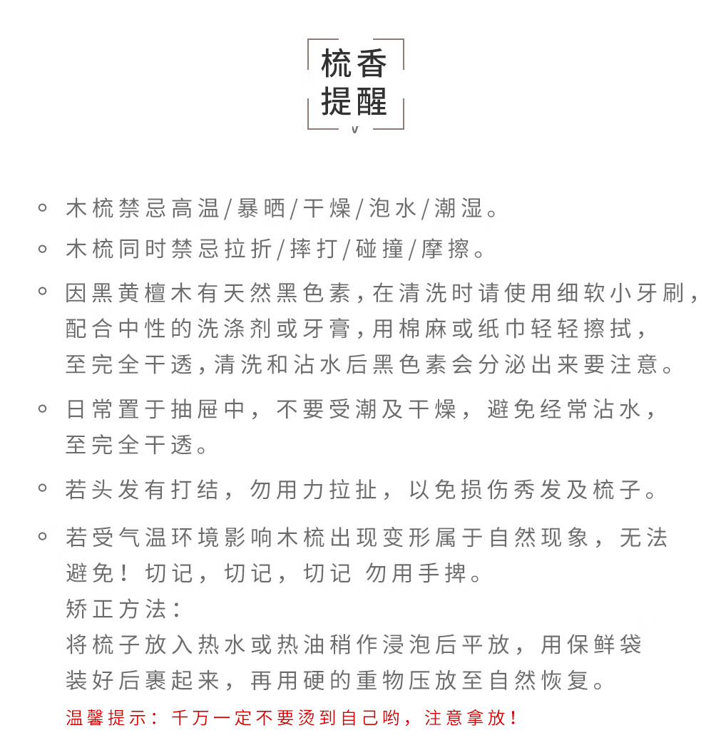 紫韵梳香密齿整料樱桃木梳子女士男士三八妇女节母亲节礼物送妈妈M-49
