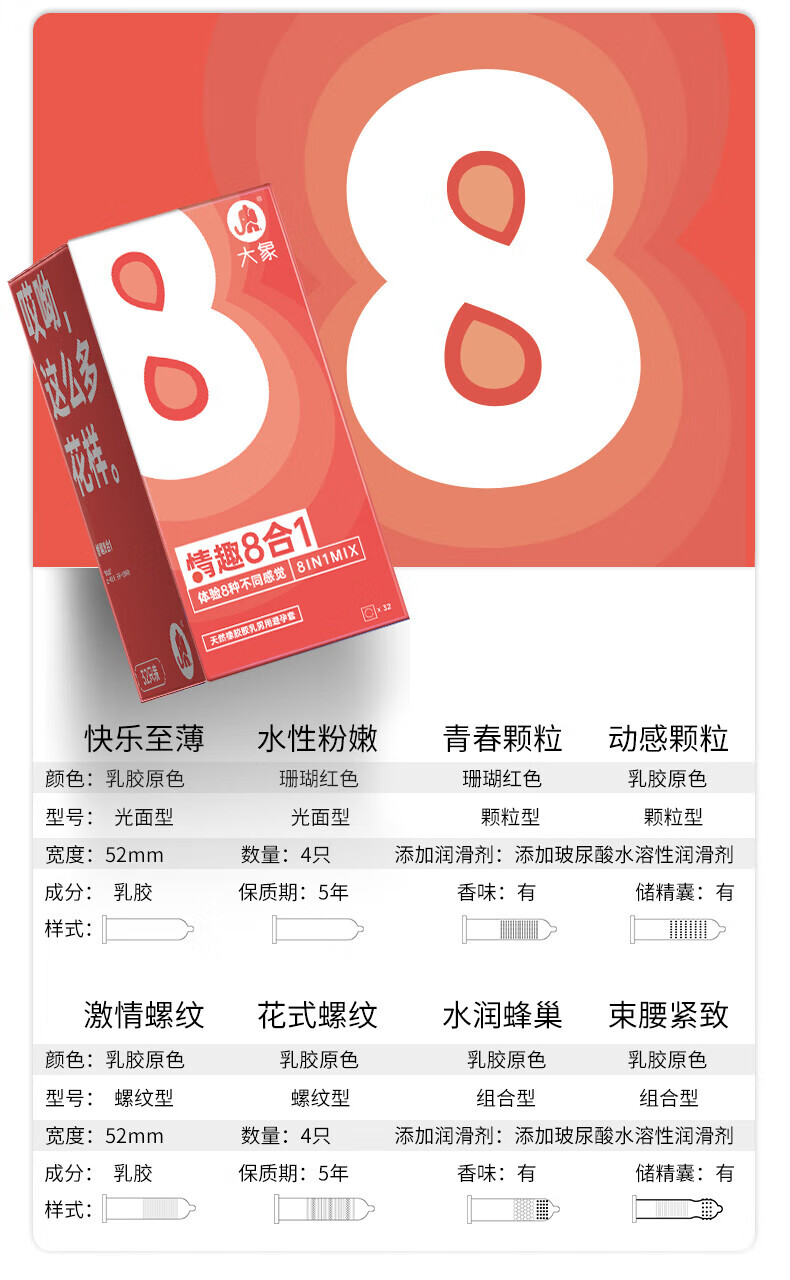 大象套001 玻尿酸套安全男用裸入持久高潮夜 其它颜色 x 其它规格 多种情趣[48只]情趣八合一32+水