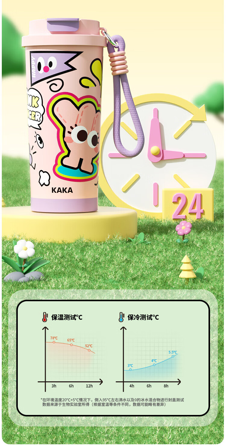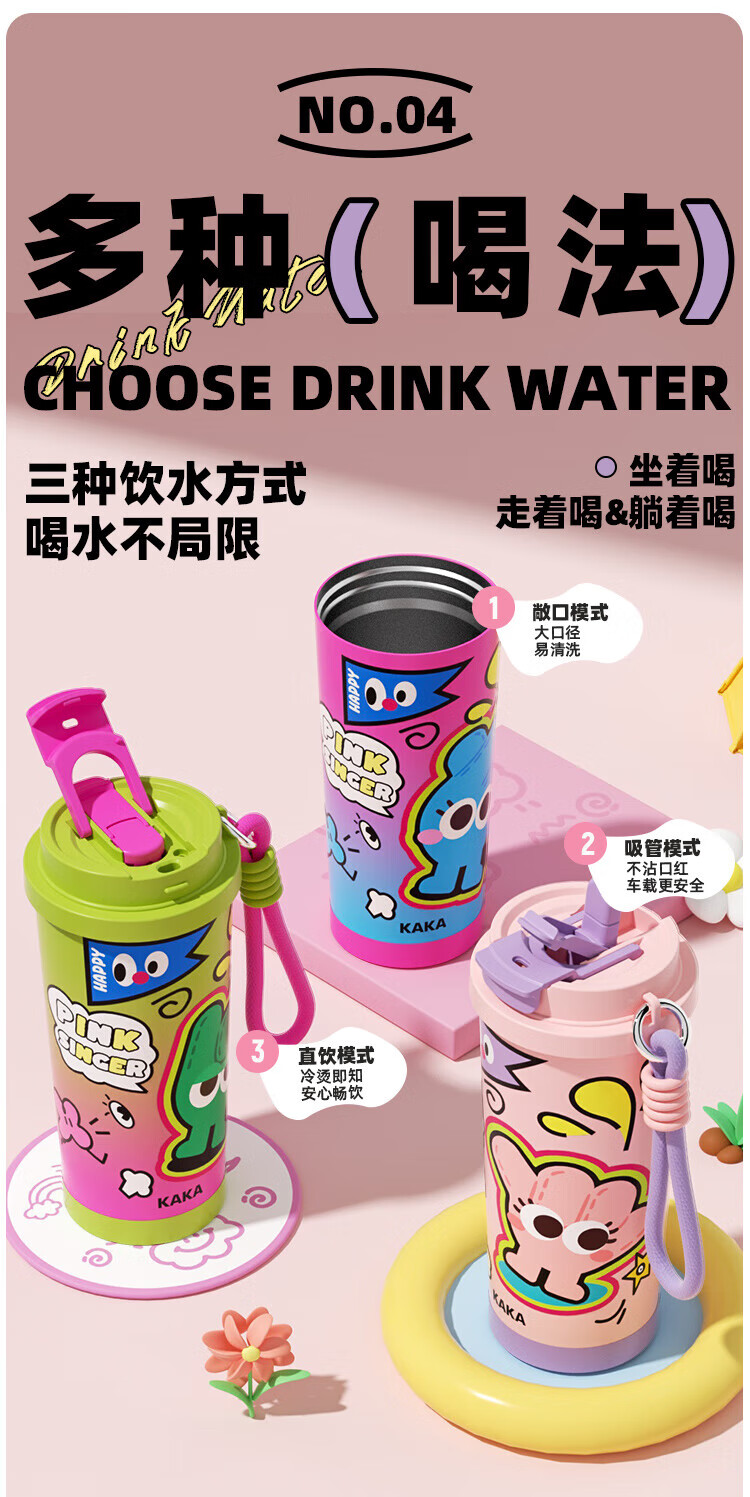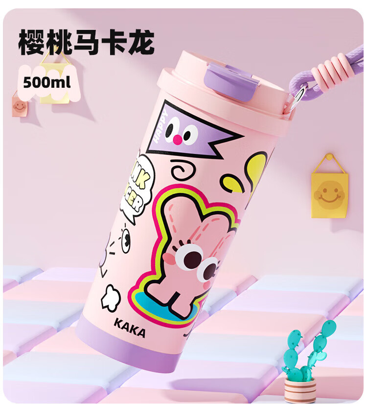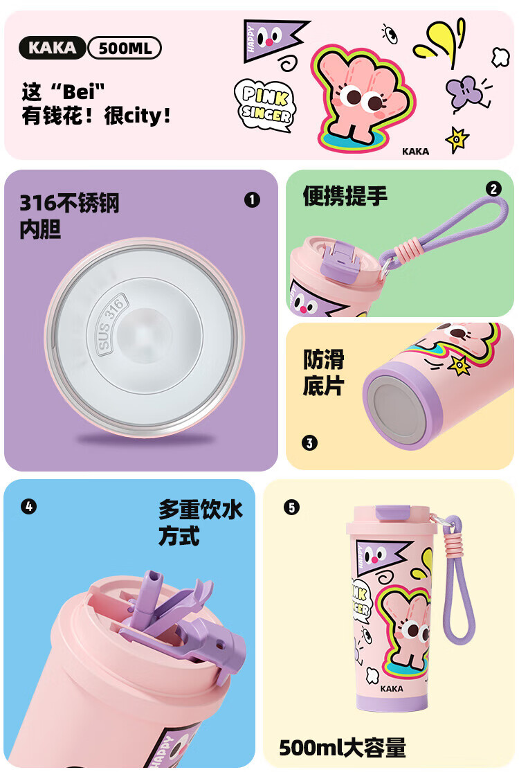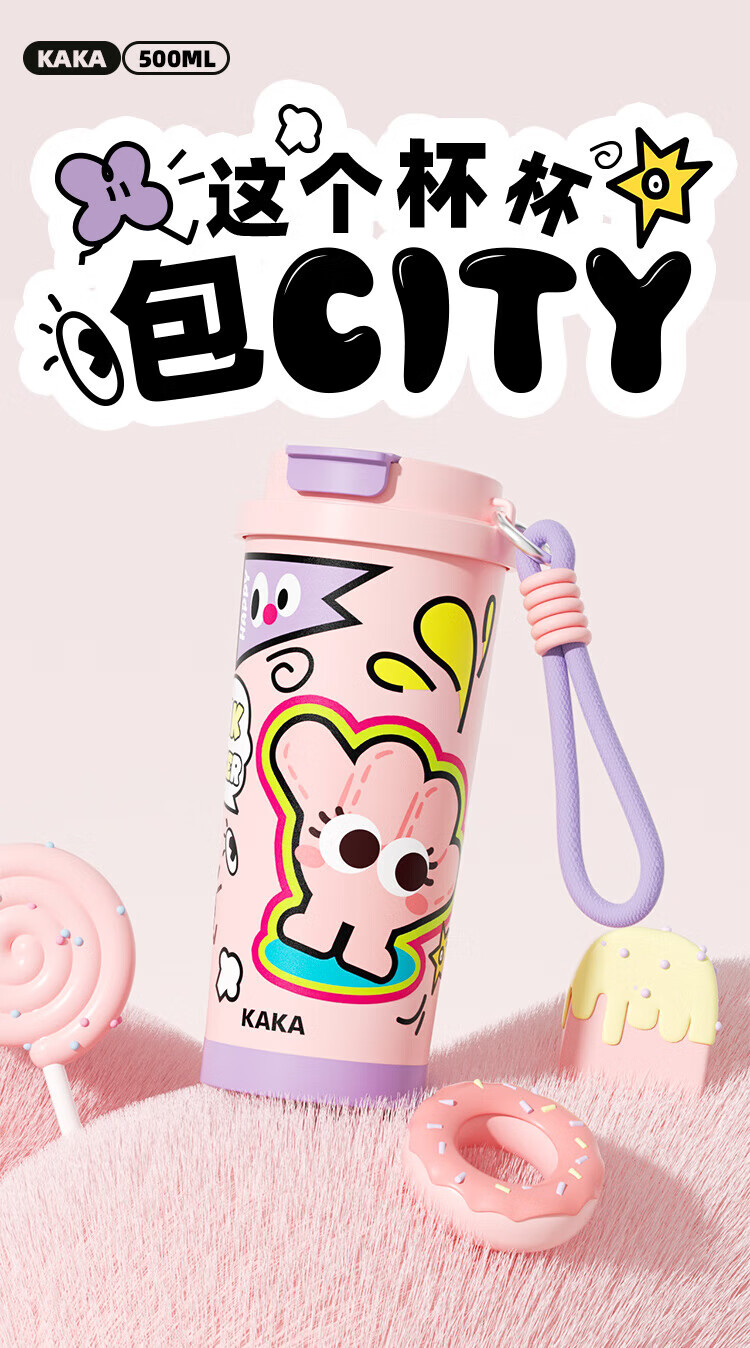 皇家洛克 ROYALLOCKE咖啡杯便携316不锈钢保温杯女士高颜值不锈钢材质杯子原创IP卡通 【316不锈钢】粉色
