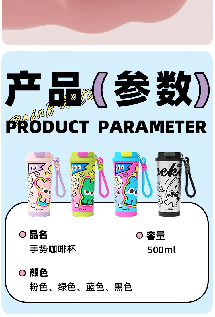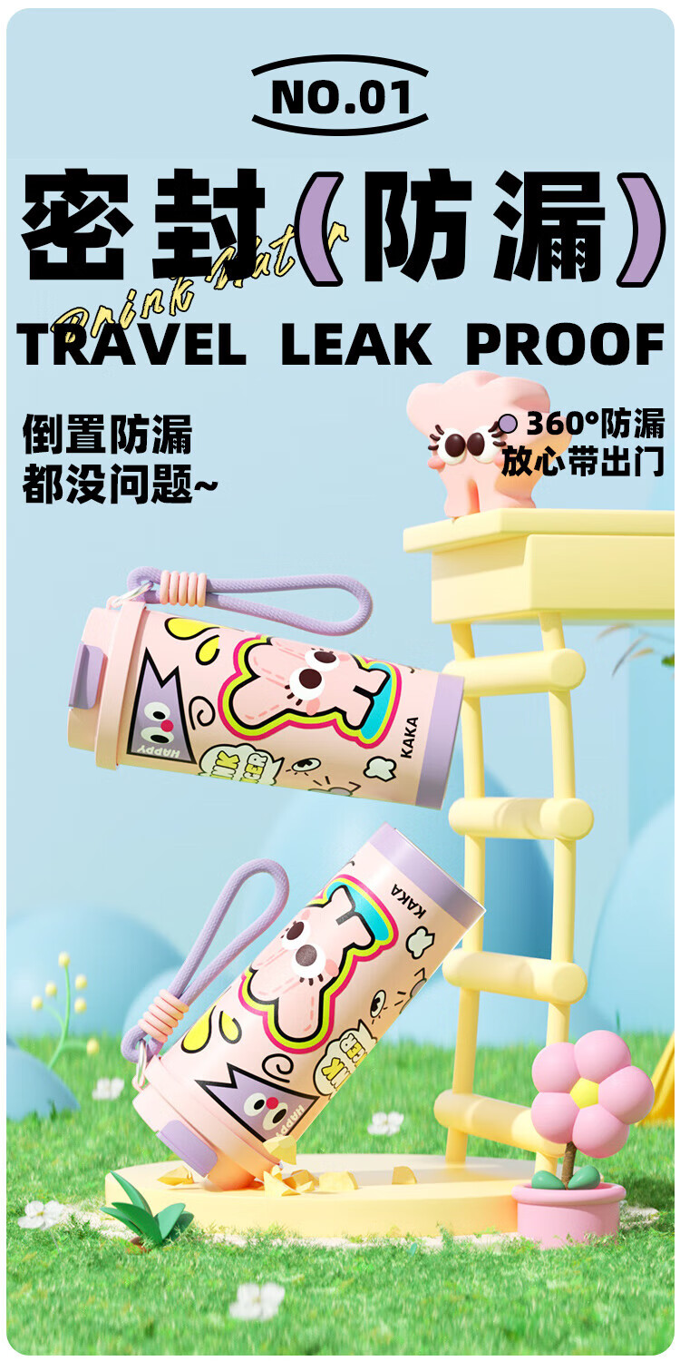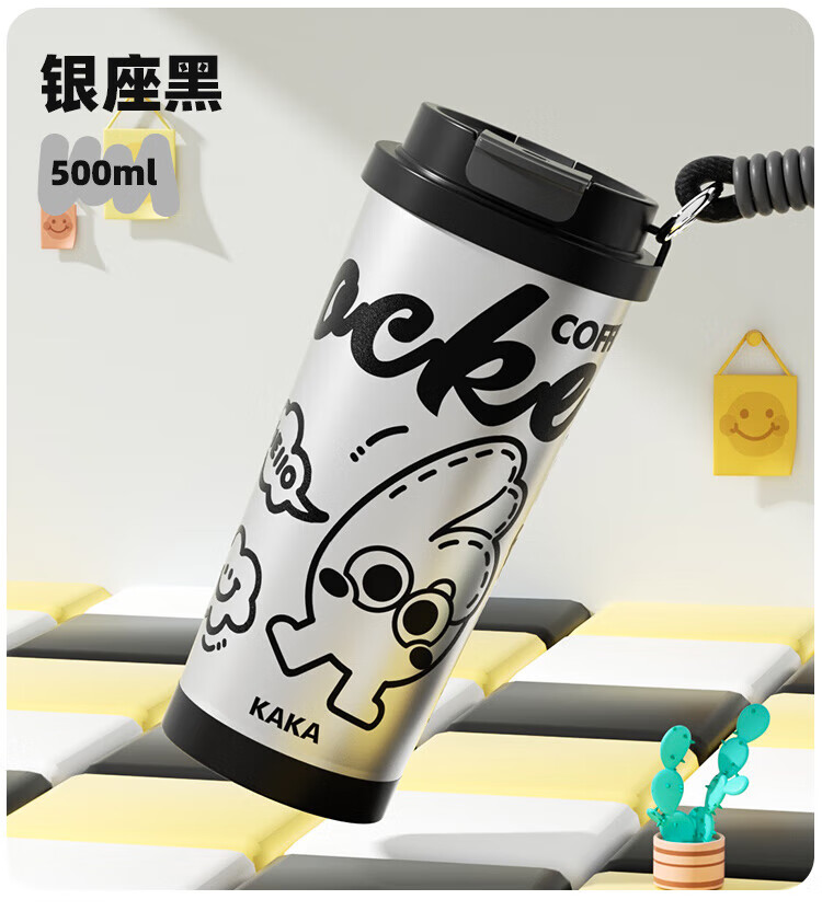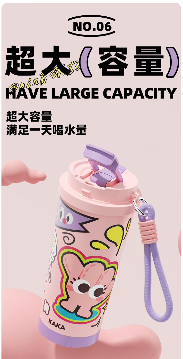 皇家洛克 ROYALLOCKE咖啡杯便携316不锈钢保温杯女士高颜值不锈钢材质杯子原创IP卡通 【316不锈钢】粉色