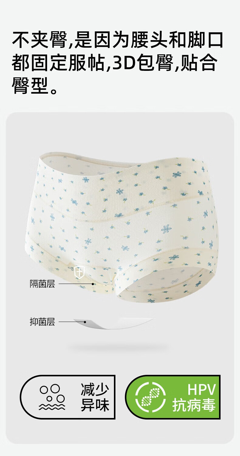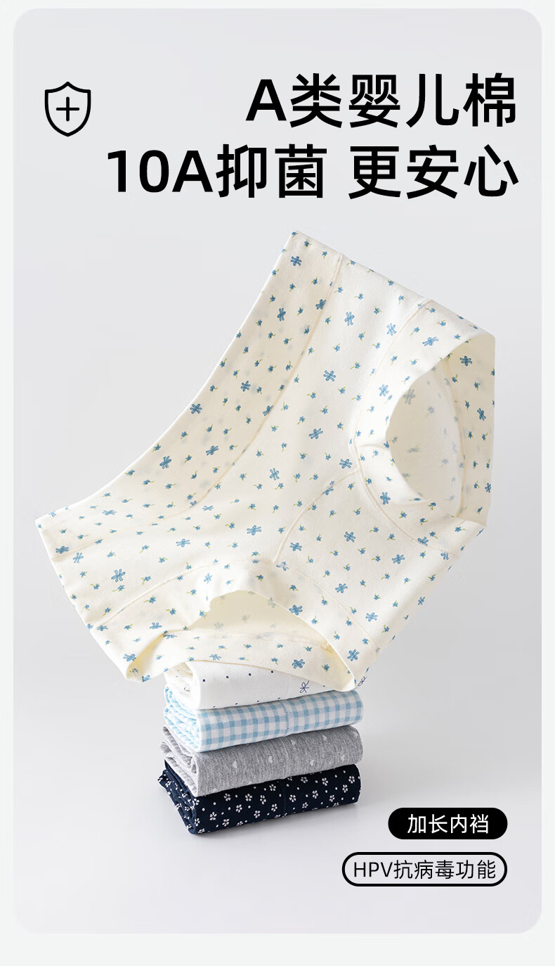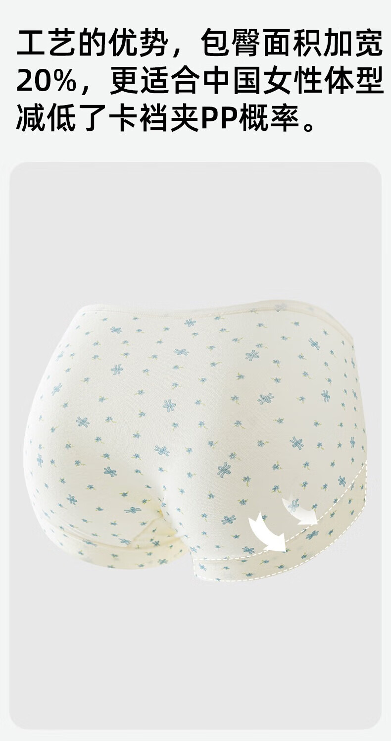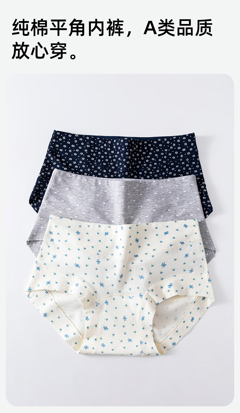 北极绒 纯棉10A抗菌女士内裤加长裆清新碎花A类婴儿棉少女士大码平角裤 【3条花色装】灰爱心+蓝格纹+深蓝花 XL (110-130斤左右)
