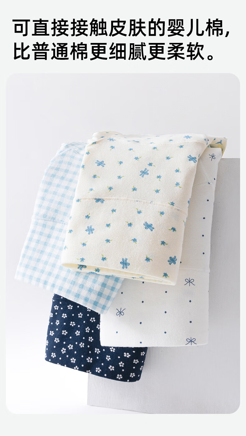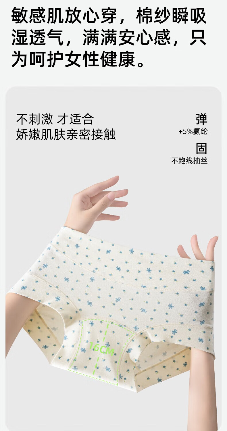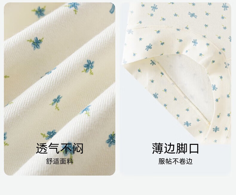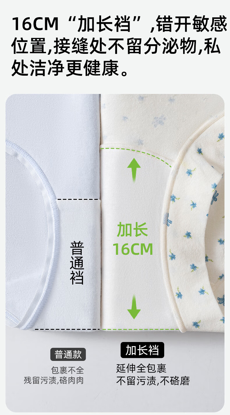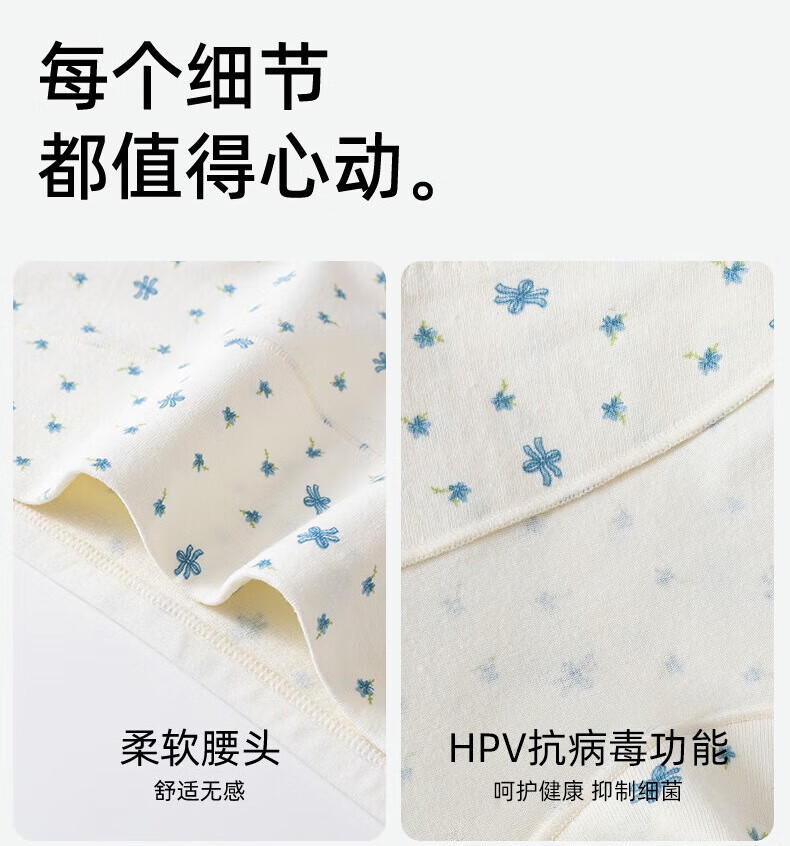 北极绒 纯棉10A抗菌女士内裤加长裆清新碎花A类婴儿棉少女士大码平角裤 【3条花色装】灰爱心+蓝格纹+深蓝花 XL (110-130斤左右)